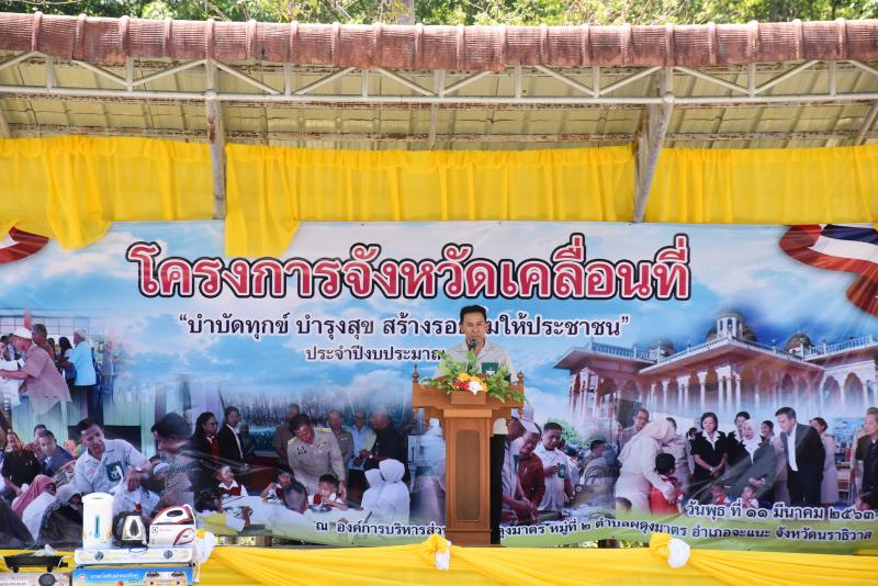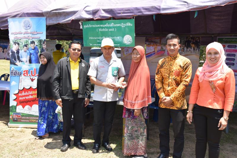 วันที่ 11 มีนาคม 2563 นายธนชัย เงินมาก ปฏิรูปที่ดินจังหวัดนราธิวาส เข้าร่วมโครงการจังหวัดเคลื่อนที่ "บำบัดทุกข์ บำรุงสุข สร้างรอยยิ้มให้ประชาชน” ประจำปีงบประมาณ 2563 ณ ที่ทำการองค์การบริหารส่วนตำบล ผดุงมาตร หมู่ที่ 2 บ้านบือจะ ตำบลผดุงมาตร อำเภอจะแนะ จังหวัดนราธิวาส พร้อมนี้ได้มอบหมายกลุ่มยุทธศาสตร์และการปฏิรูปที่ดิน โดยนางก้อติม๊ะ จันทร์หอม เจ้าหน้าที่ปฏิรูปที่ดิน และคณะเจ้าหน้าที่ ส.ป.ก.นราธิวาส เข้าร่วมโครงการจังหวัดเคลื่อนที่ฯ โดยมีนายเอกรัฐ หลีเส็น ผู้ว่าราชการจังหวัดนราธิวาส เป็นประธานเปิดโครงการจังหวัดเคลื่อนที่ฯ ทั้งนี้ คณะเจ้าหน้าที่ ส.ป.ก.นราธิวาส ให้บริการด้านคลินิกกฎหมาย ส.ป.ก. และกฎหมายทั่วไป ให้ความรู้เรื่องการปลูกผักสวนครัว มอบเอกสารเผยแพร่ เมล็ดพันธุ์ข้าวโพดหวาน จำนวน 119 ถุงให้แก่เกษตรกรไปปลูกตามหลักปรัชญาเศรษฐกิจพอเพียง