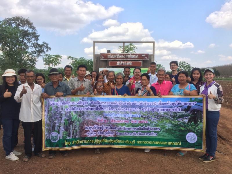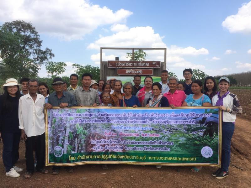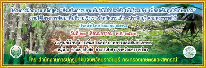 โครงการฝึกอบรม หลักสูตร "ส่งเสริมการขยายพันธุ์มันสำปะหลัง (พันธุ์ระยอง)เพื่อลดต้นทุนให้เกษตรกร" ภายใต้โครงการพัฒนาพื้นที่ราบเชิงจังหวัดสระแก้ว-ปราจีนบุรี ตามพระราชดำริ ประจำปีงบประมาณ 2561 วันที่ 23 มกราคม 2561 ณ ศูนย์การเพิ่มประสิทธิภาพการผลิตสินค้าเกษตร หมู่ที่ 6 ตำบลกุดโบสถ์ อำเภอเสิงสาง จังหวัดนครราชสีมา