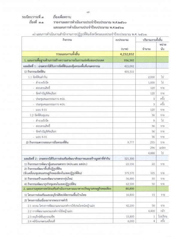 แผนการดำเนินงานสำนักงานการปฏิรูปที่ดินจังหวัดระยองประจำปีงบประมาณ