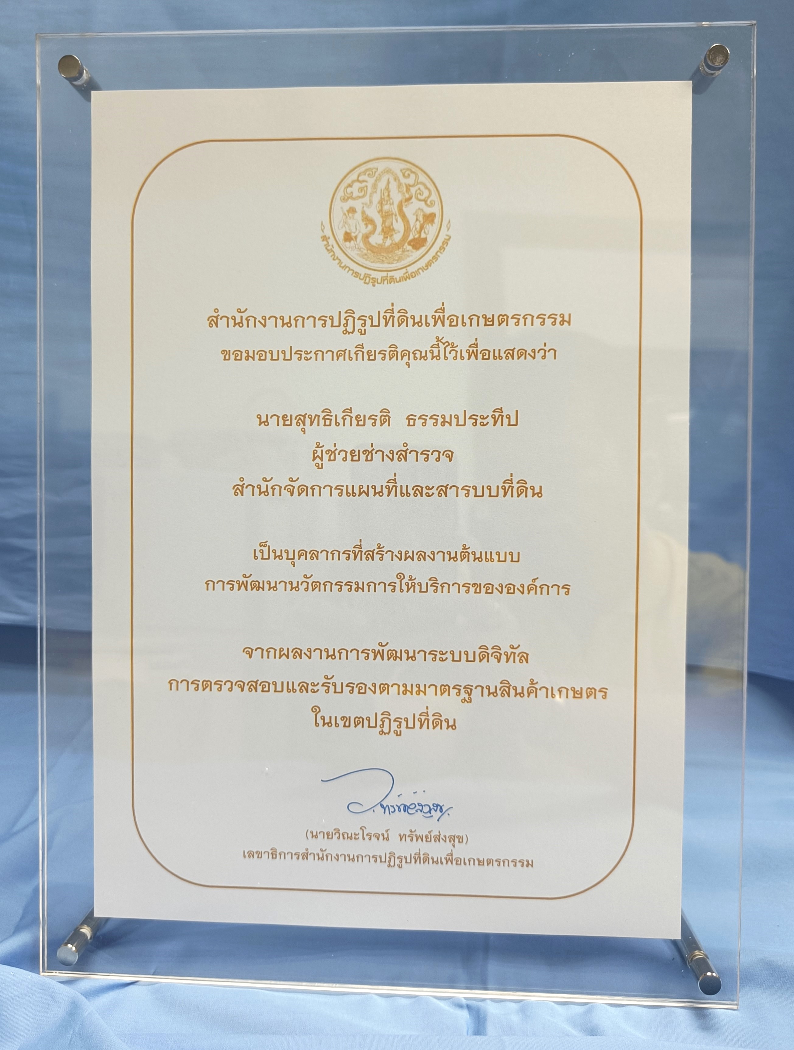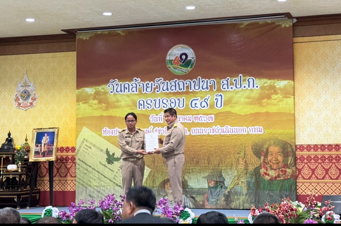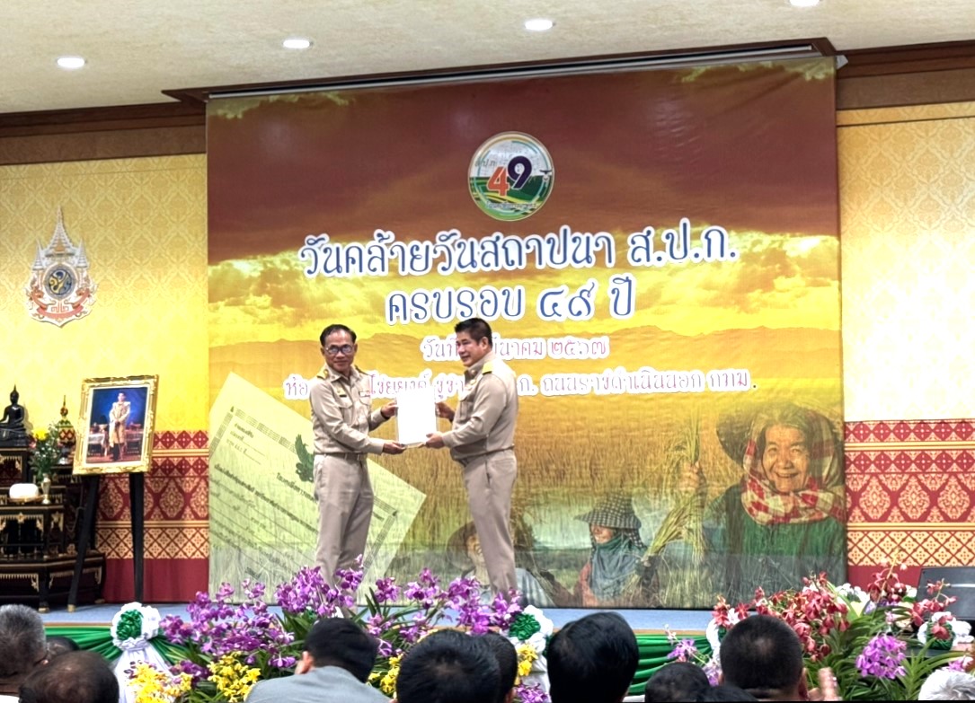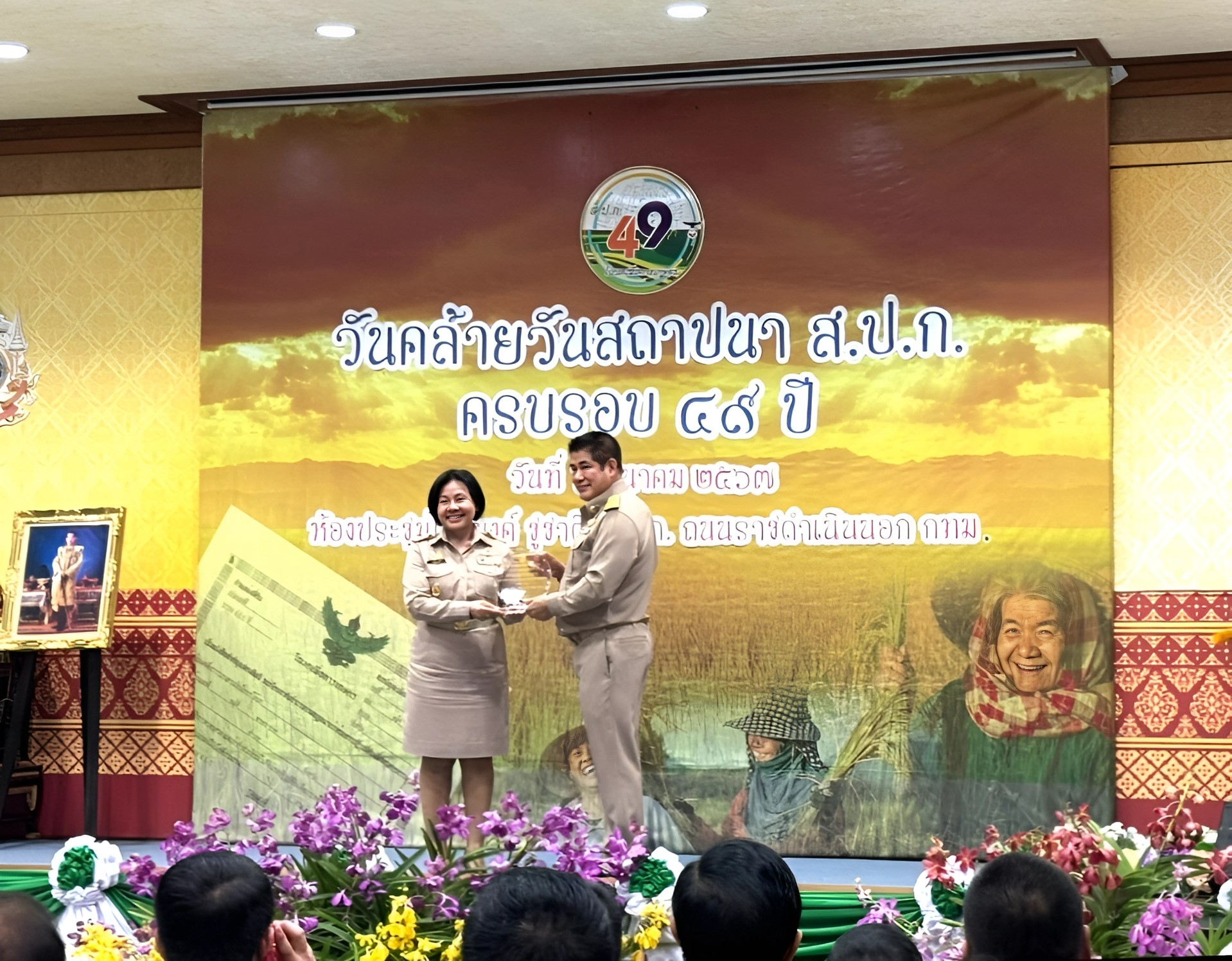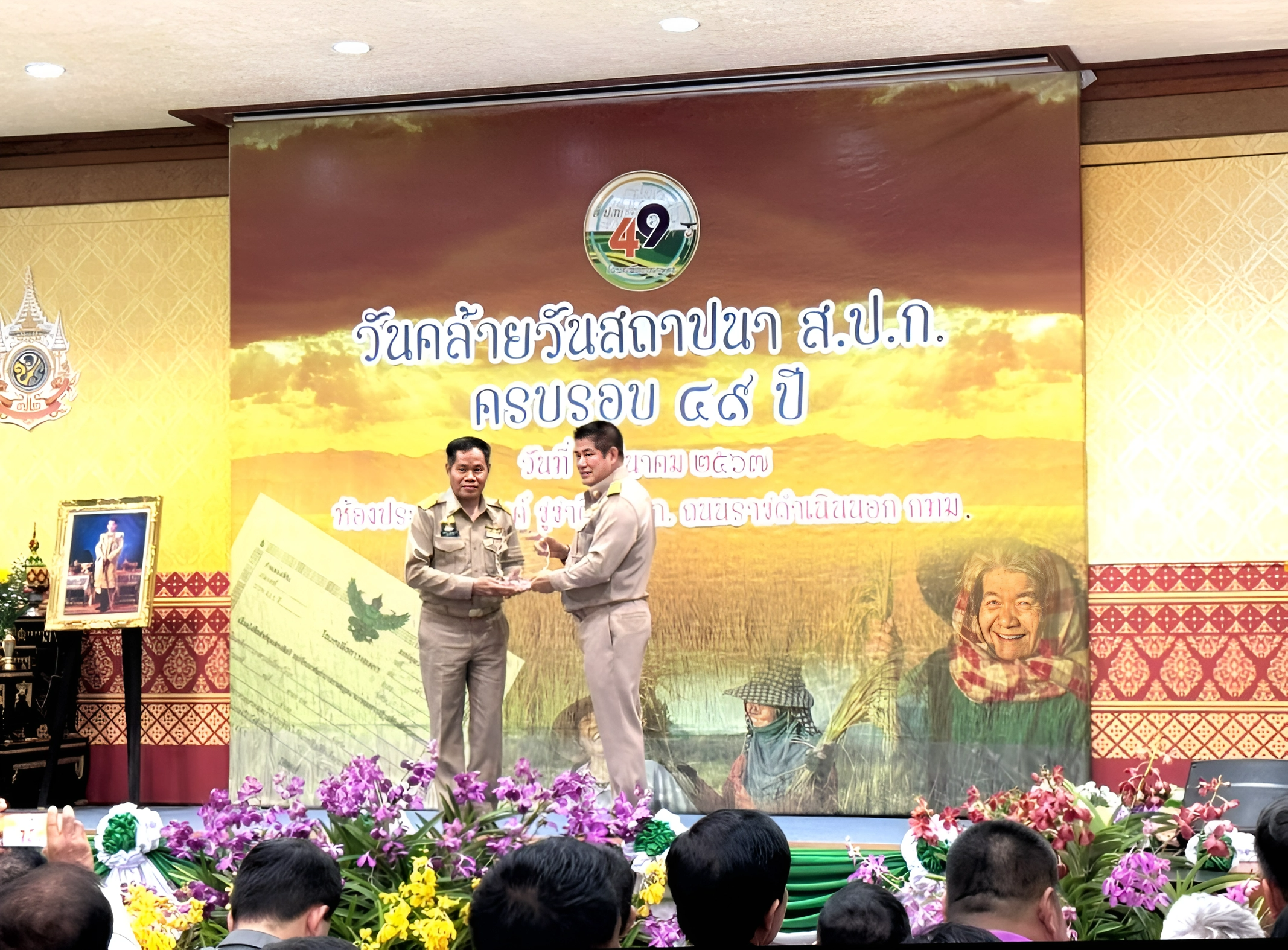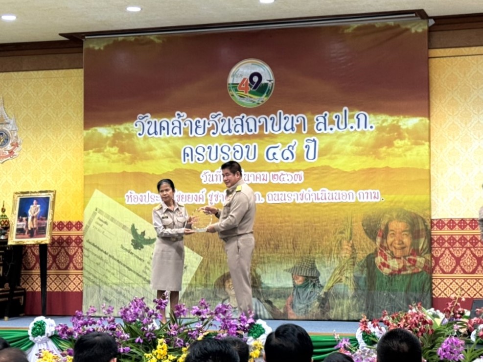 พิธีมอบโล่รางวัล พร้อมใบประกาศเกียรติคุณให้กับบุคคล และหน่วยงาน ในโครงการยกย่องเชิดชูเกียรติหน่วยงานและบุคคลที่ร่วมสร้างผลงานต้นแบบ สนับสนุนการปฏิรูปที่ดินเพื่อเกษตรกรรม ประจำปี พ.ศ. 2567 ของสำนักงานการปฏิรูปที่ดินเพื่อเกษตรกรรม (ส.ป.ก.)