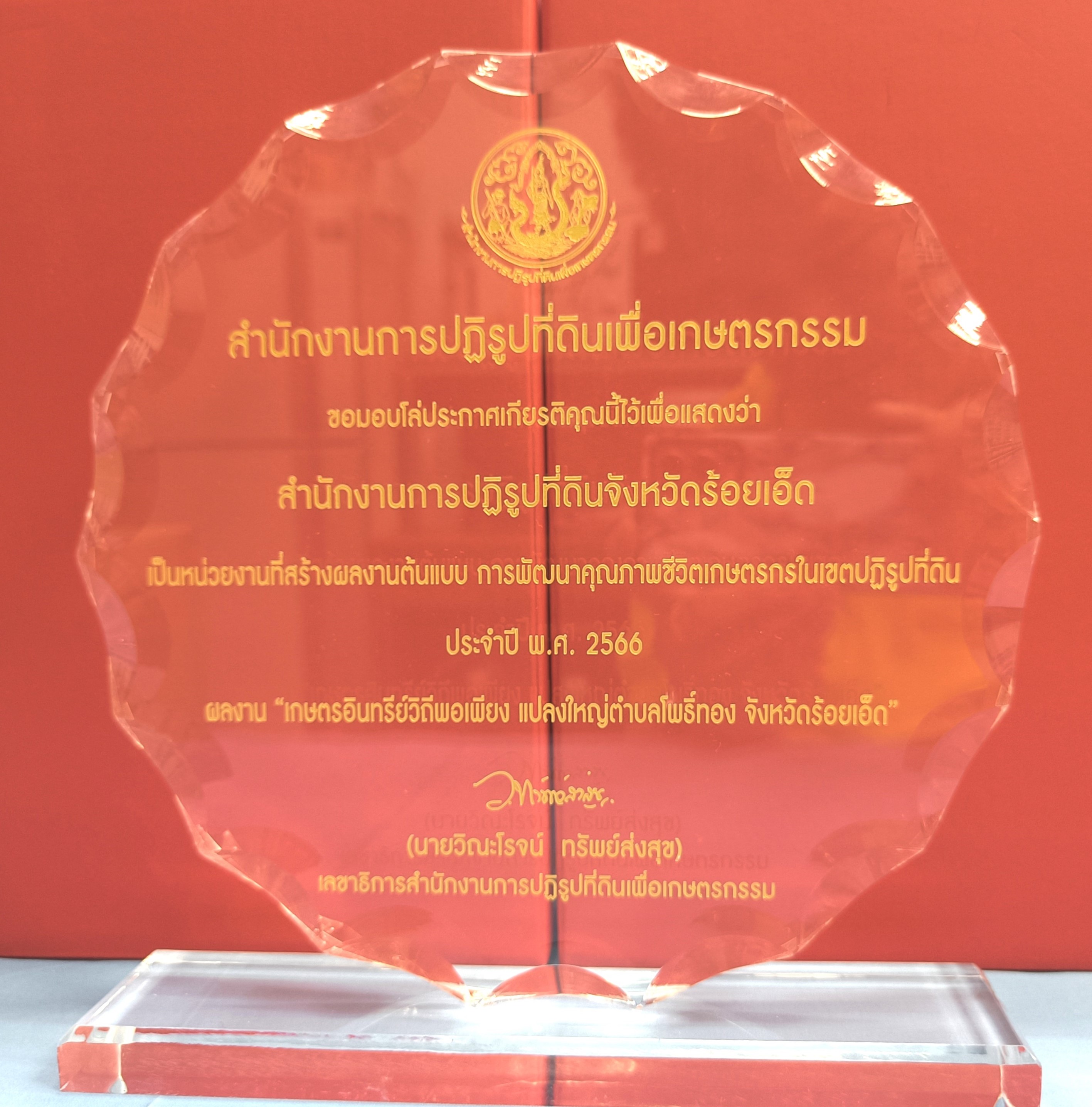 2. สำนักงานการปฏิรูปที่ดินจังหวัดร้อยเอ็ด จากผลงาน “เกษตรอินทรีย์วิถีพอเพียง แปลงใหญ่ตำบลโพธิ์ทอง จังหวัดร้อยเอ็ด”