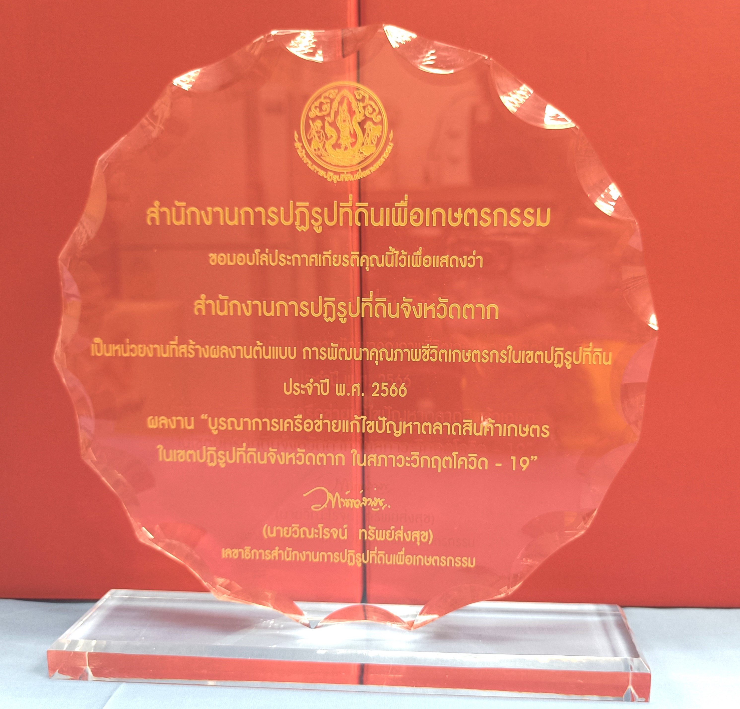 6. สำนักงานการปฏิรูปที่ดินจังหวัดตาก จากผลงาน “บูรณาการเครือข่ายแก้ไขปัญหาตลาดสินค้าเกษตร ในเขตปฏิรูปที่ดินจังหวัดตาก ในสภาวะวิกฤตโควิด - 19”