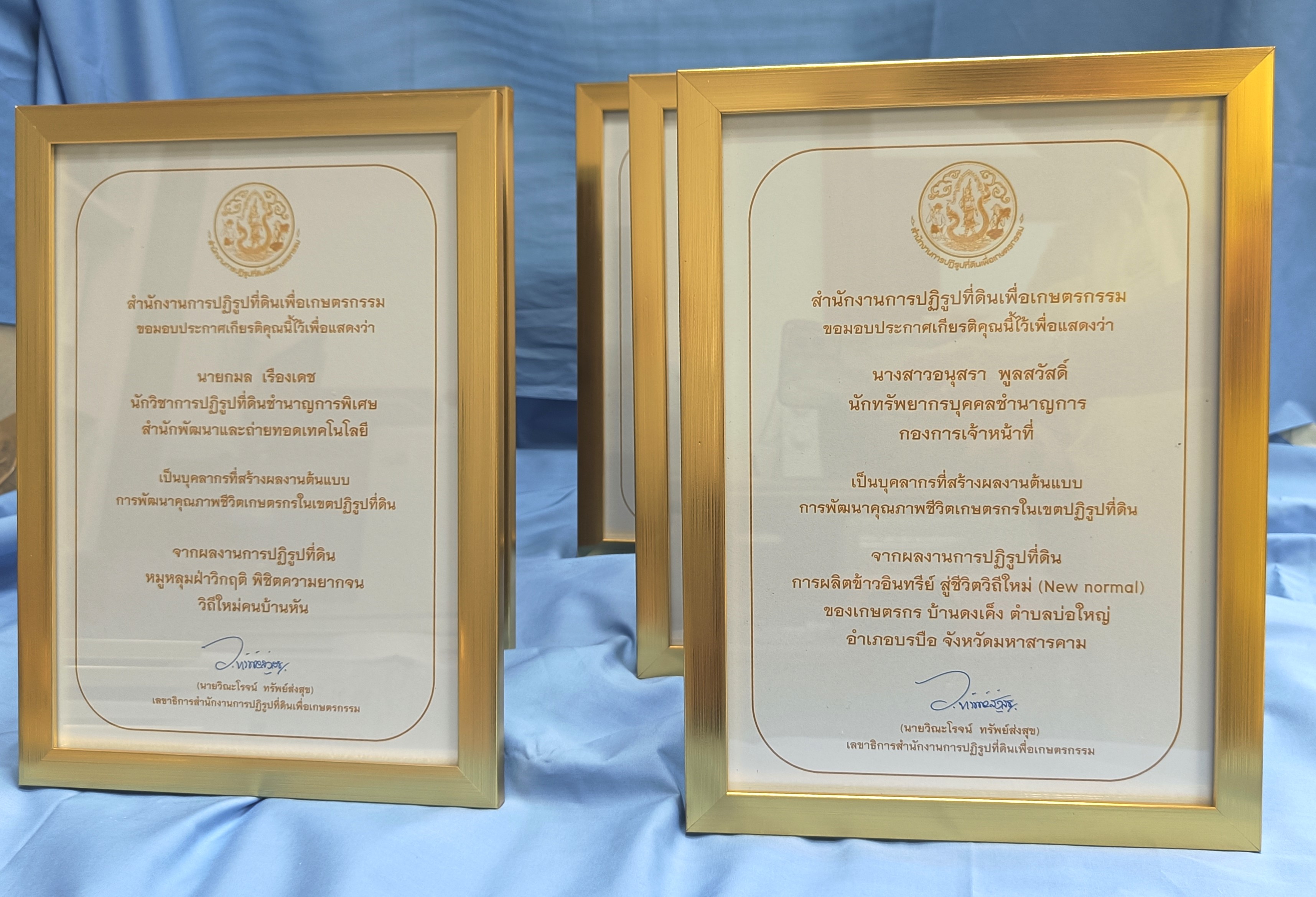 โดยมีรายละเอียดการมอบโล่รางวัล และใบประกาศเกียรติคุณให้บุคลากร เจ้าหน้าที่ และหน่วยงานของ ส.ป.ก. ดังนี้
