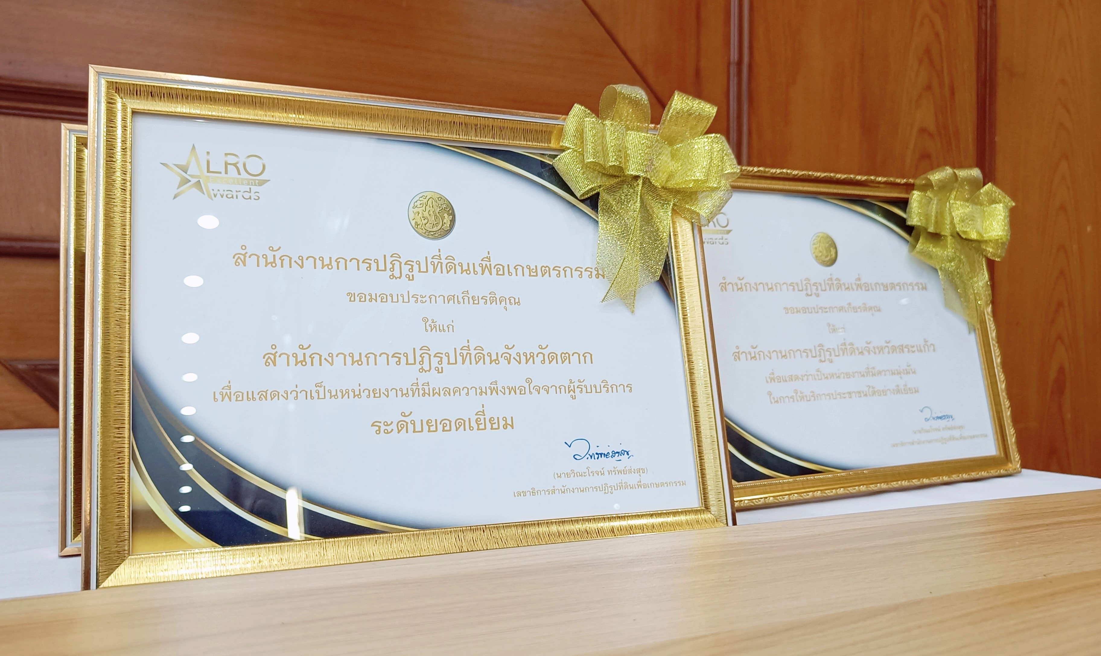 2 รางวัล The 1st Runner-up of ALRO KPIs Awards 2022” ตัวชี้วัดครบทุกตัว (คะแนนรวม 190 – 200) สำนักงานการปฏิรูปที่ดินจังหวัดพิษณุโลก (รางวัลผลการดำเนินงานตามตัวชี้วัดของ ส.ป.ก. ยอดเยี่ยม อันดับที่ 2 และคะแนนรวมสูงสุดภาคเหนือ ปี พ.ศ. 2565)