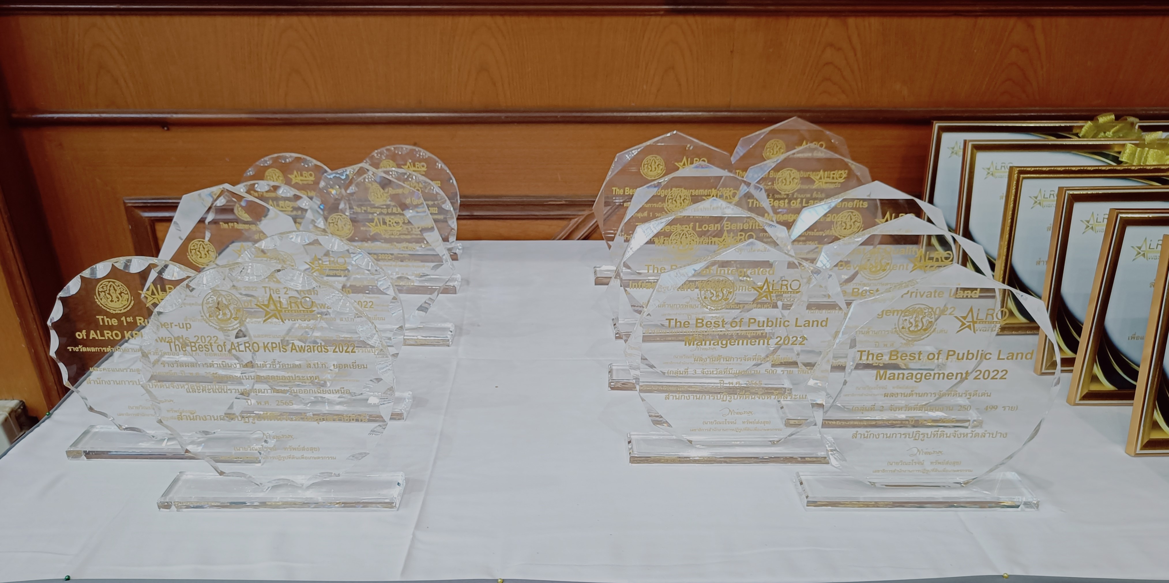 6 รางวัล The 1st Runner-up of ALRO KPIs Awards of Group B 2022” กลุ่ม B ขาดตัวชี้วัด 1 - 2 ตัว (คะแนนรวม 160 – 180) สำนักงานการปฏิรูปที่ดินจังหวัดขอนแก่น (คะแนนรวมสูงสุดอันดับที่ 2 ของกลุ่ม B ปี พ.ศ. 2565)
