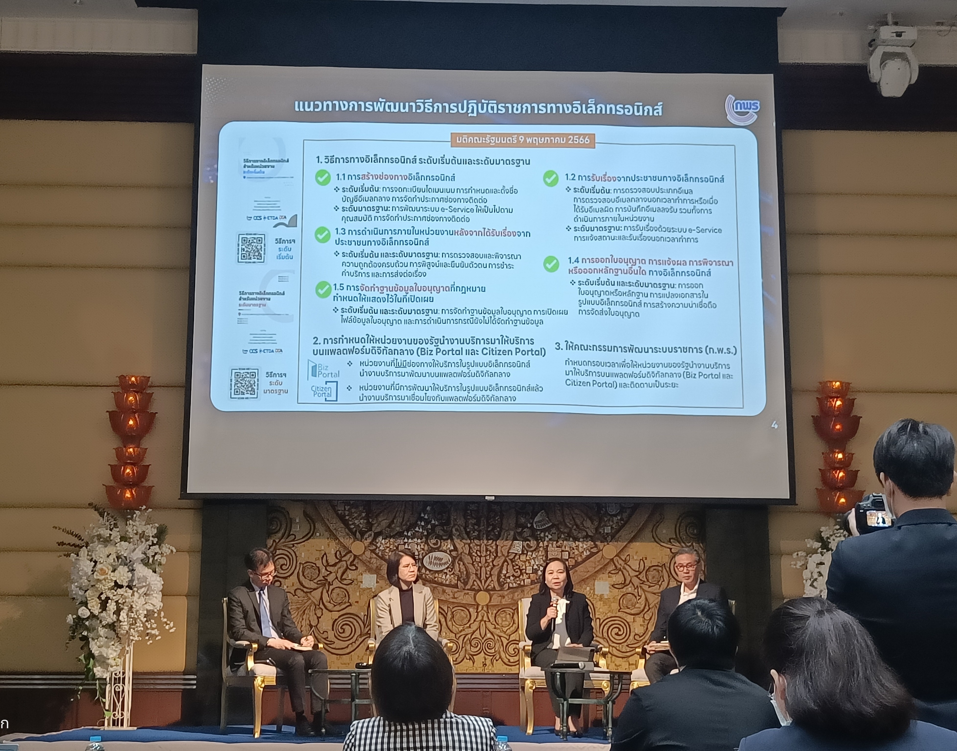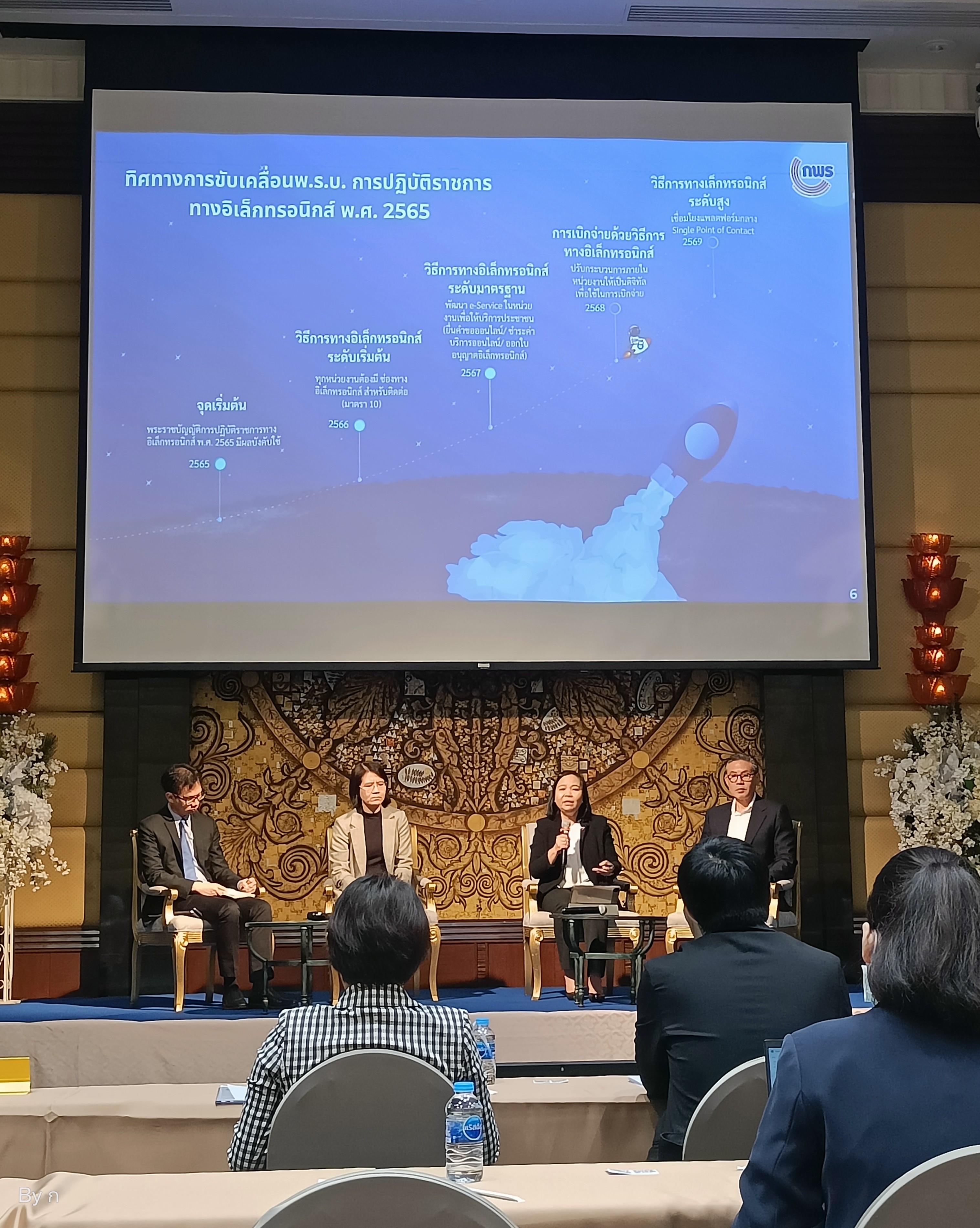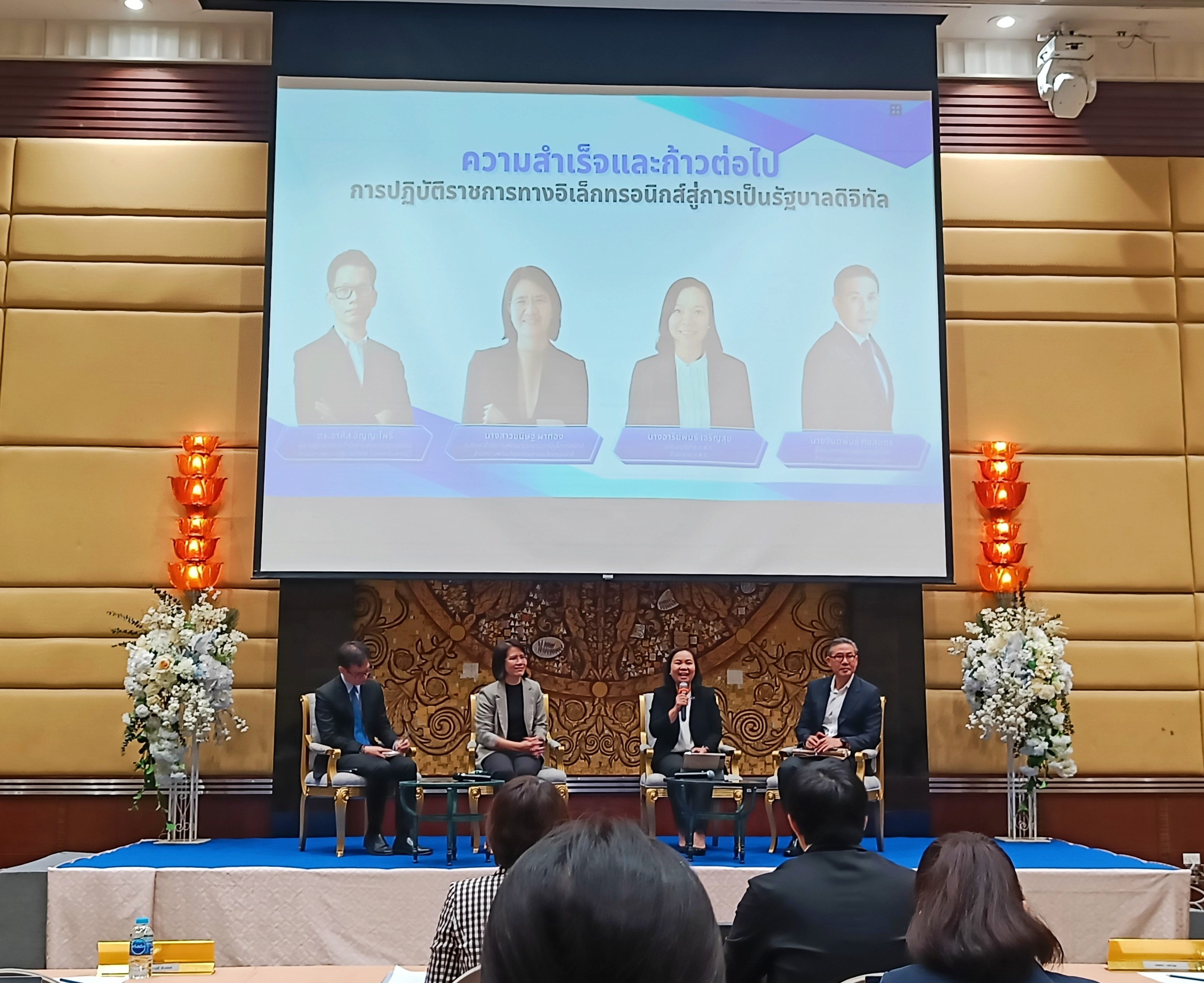 วันพฤหัสบดีที่ 27 กุมภาพันธ์ 2568 เวลา 09.30 น. สำนักงานคณะกรรมการพัฒนาระบบราชการ (สำนักงาน ก.พ.ร.) ได้จัดการประชุม และเชิญเข้าร่วมประชุม 2 ปี แห่งการบังคับใช้พระราชบัญญัติการปฏิบัติราชการทางอิเล็กทรอนิกส์ พ.ศ. 2565 โดยได้รับเกียรติจากทางท่าน รองเลขาธิการ ก.พ.ร. (นางอารีย์พันธ์ เจริญสุข) เป็นประธานกล่าวเปิดการประชุม และร่วมเวทีเปิดการเสวนา พร้อมกับทางท่าน ผู้อำนวยการกองพัฒนากฎหมาย สำนักคณะกรรมการกฤษฎีกา (นายจินตพันธุ์ กังสุบุตร) / ที่ปรึกษาสำนักงานพัฒนาธุรกรรมทางอิเล็ทรอนิกส์สำนักงานพัฒนาธุรกรรมทางอิเล็กทรอนิกส์ (นางสาวขนิษฐ์ ผาทอง) และผู้ช่วยผู้อำนวยการสำนักงานพัฒนารัฐบาลดิจิทัล สำนักงานพัฒนารัฐบาลดิจิทัล (องค์การมหาชน) (ดร.อาศิส อัญญะโพธิ์) ร่วมการเสวนาในเรื่อง ทิศทางและการขับเคลื่อน ความสำเร็จและก้าวต่อไปการปฏิบัติราชการทางอิเล็กทรอนิกส์สู่การเป็นรัฐบาลดิจิทัล จากที่ได้มีการประกาศ พระราชบัญญัติการปฏิบัติราชการทางอิเล็กทรอนิกส์ พ.ศ 2565 ซึ่งมีการประกาศในราชกิจจานุเบกษาเมื่อวันที่ 12 ตุลาคม 2565 และใช้บังคับทุกมาตราตั้งแต่วันที่ 10 มกราคม 2566 เป็นต้นมา ซึ่งขณะนี้กฎหมายมีผลบังคับใช้มาตลบ 2 ปีแล้ว โดยมีทางสำนักงาน ก.พ.ร. / สำนักงานคณะกรรมการกฤษฏีกา / สำนักงานพัฒนาธุรกรรมทางอิเล็กทรอนิกส์ และสำนักงานพัฒนารัฐบาลดิจิทัล (องค์การมหาชน) ร่วมขับเคลื่อนดำเนินการ โดยในการ 4 หน่วยงาน ที่ร่วมขับเคลื่อน ได้กำหนด จัดการประชุม และเชิญส่วนราชการ องค์การมหาชน และหน่วยงานอื่นๆ เข้าร่วมประชุม 2 ปี แห่งการบังคับใช้พระราชบัญญัติการปฏิบัติราชการทางอิเล็กทรอนิกส์ พ.ศ. 2565 เพื่อประชาสัมพันธ์และเผยแพร่ผลการดำเนินการของหน่วยงานของรัฐตามที่กฎหมายกำหนดภายหลังจากที่กฎหมายมีผลบังคับใช้ รวมทั้งให้ภาครัฐและภาคส่วนต่างๆ ที่เกี่ยวข้องทราบถึงทิศทางและแนวทางการขับเคลื่อนการปฏิบัติราชการทางอิเล็กทรอนิกส์ในระยะต่อไป นั้น