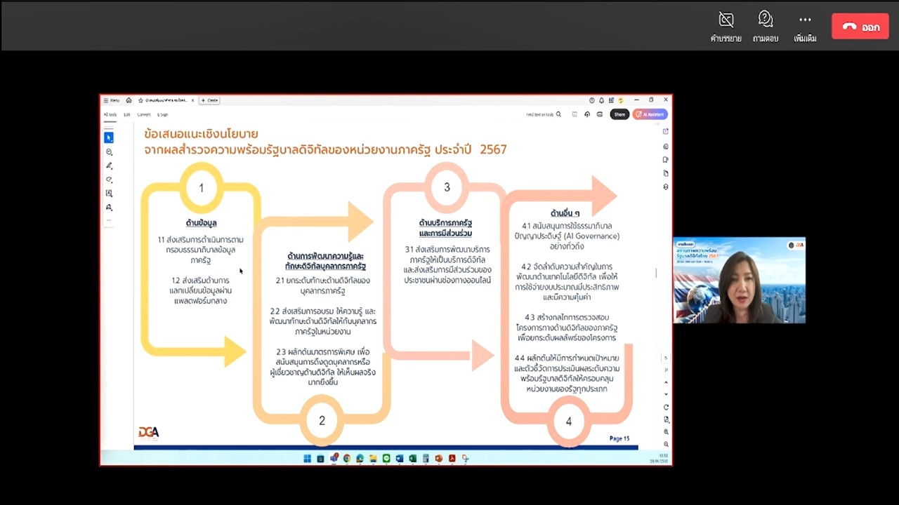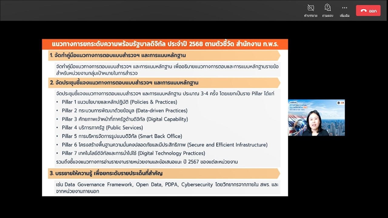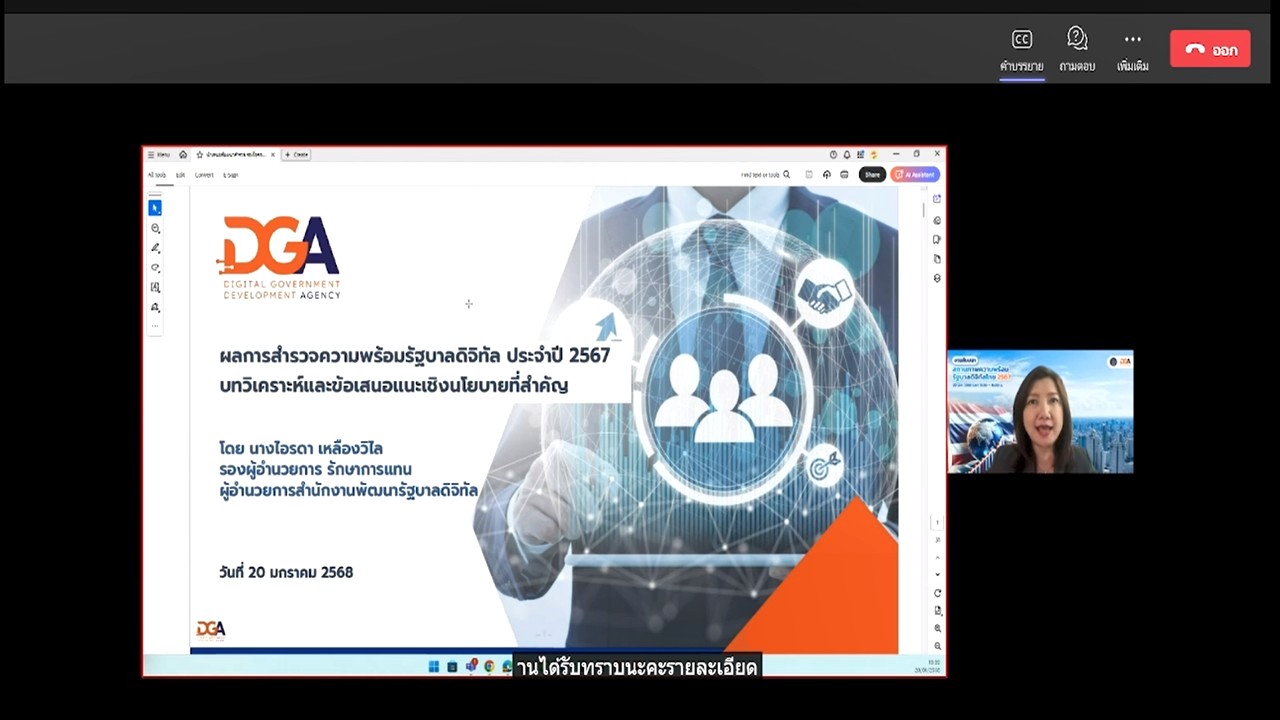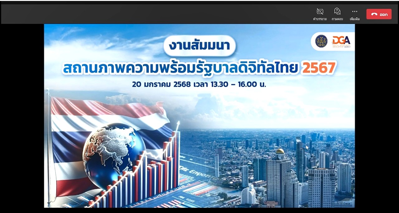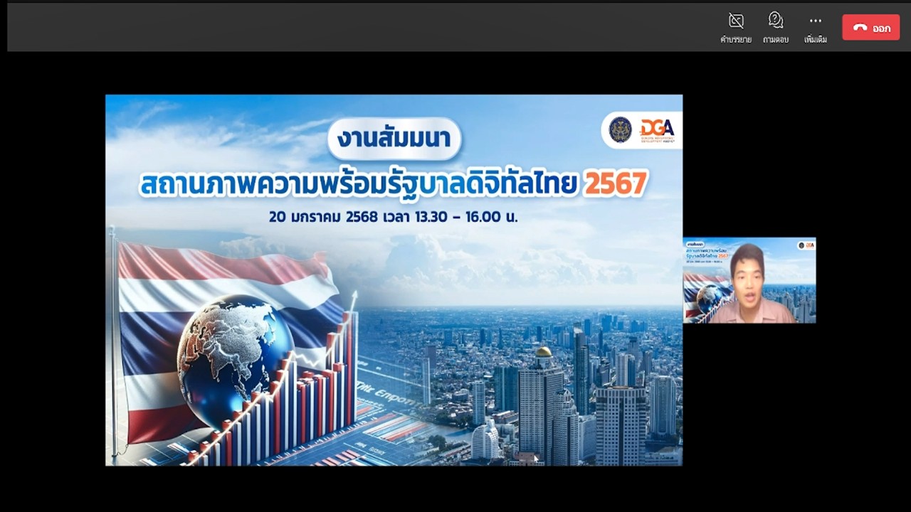 เข้าร่วมงานสัมมนาสถานภาพความพร้อมรัฐบาลดิจิทัลไทย ปี 2567 ผ่านสื่ออิเล็กทรอนิกส์ (สัมมนาผ่านระบบออนไลน์ Microsoft Teams) สำนักงานพัฒนารัฐบาลดิจิทัล (องค์การมหาชน)