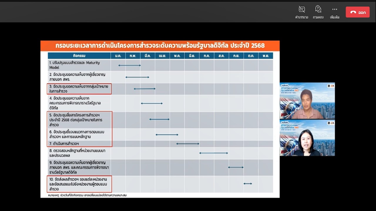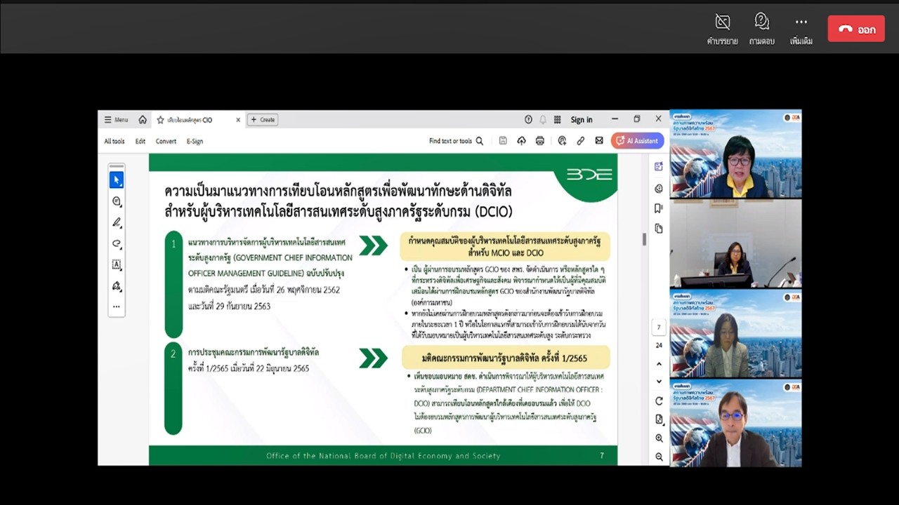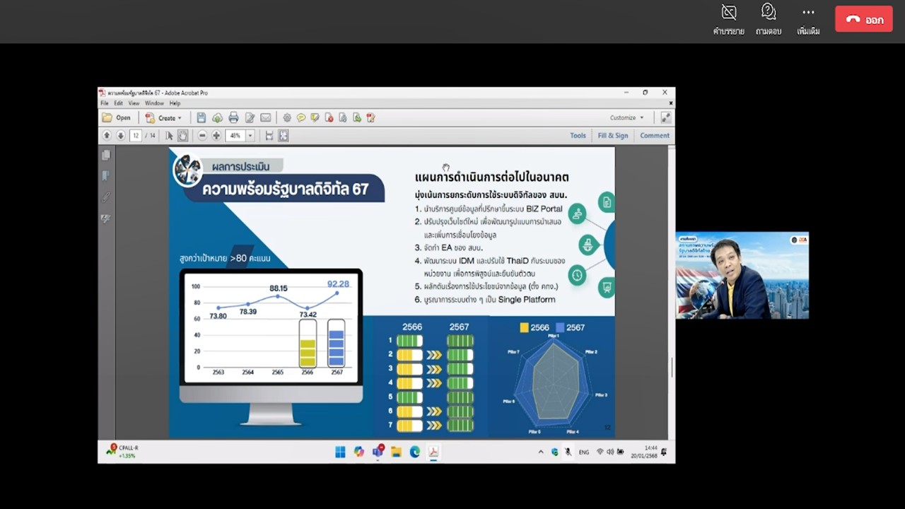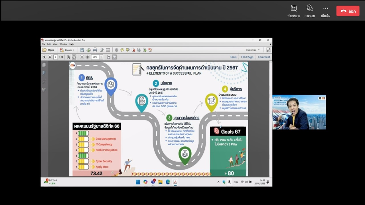 เข้าร่วมงานสัมมนาสถานภาพความพร้อมรัฐบาลดิจิทัลไทย ปี 2567 ผ่านสื่ออิเล็กทรอนิกส์ (สัมมนาผ่านระบบออนไลน์ Microsoft Teams) สำนักงานพัฒนารัฐบาลดิจิทัล (องค์การมหาชน)