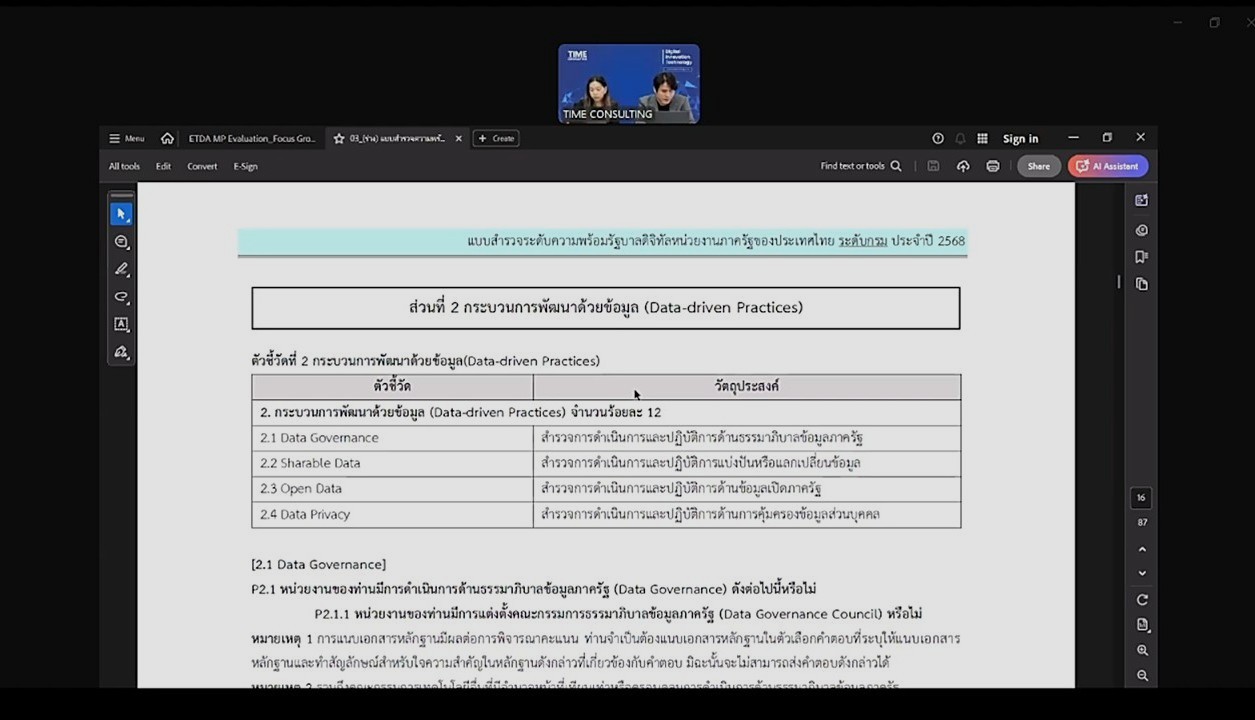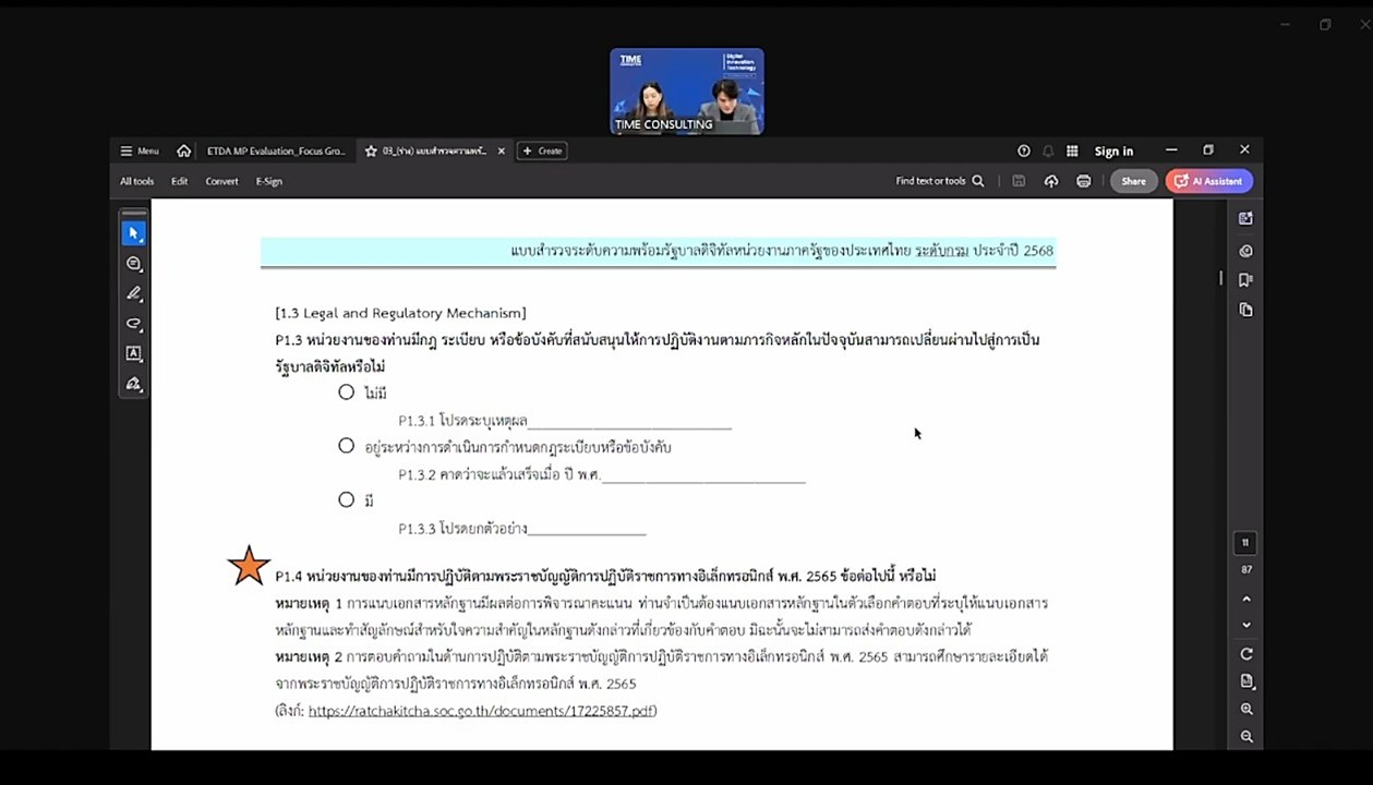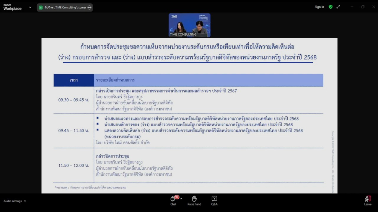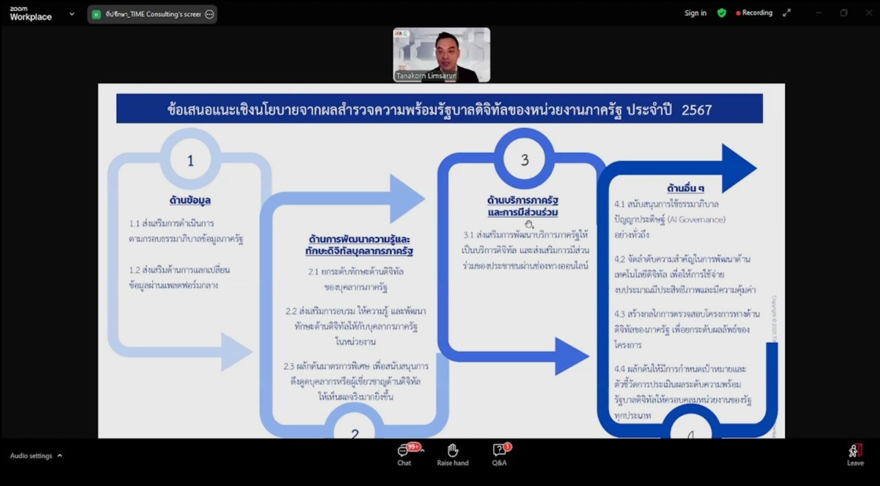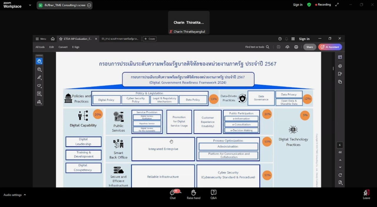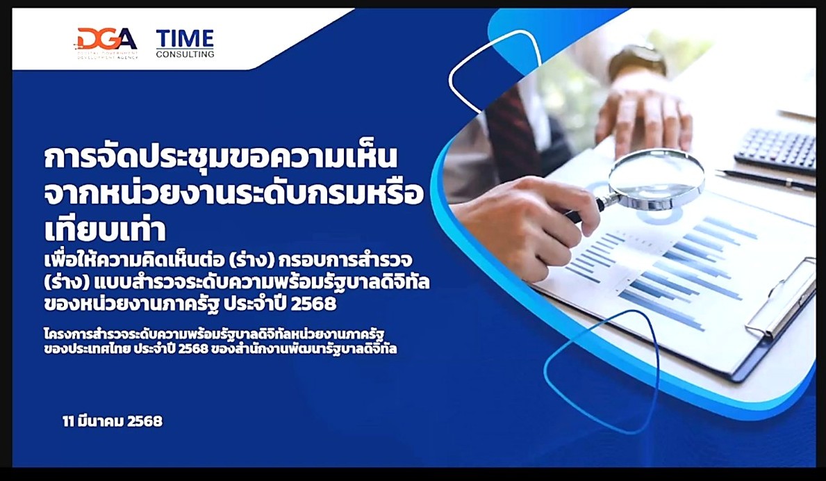 เข้าร่วมประชุมรับฟังการชี้แจงเกี่ยวกับโครงการสำรวจระดับความพร้อมรัฐบาลดิจิทัลหน่วยงานภาครัฐของประเทศไทย ประจำปี 2568 ในรูปแบบผ่านสื่ออิเล็กทรอนิกส์ (ระบบออนไลน์ ZOOM Meeting) สำนักงานพัฒนารัฐบาลดิจิทัล (องค์การมหาชน)