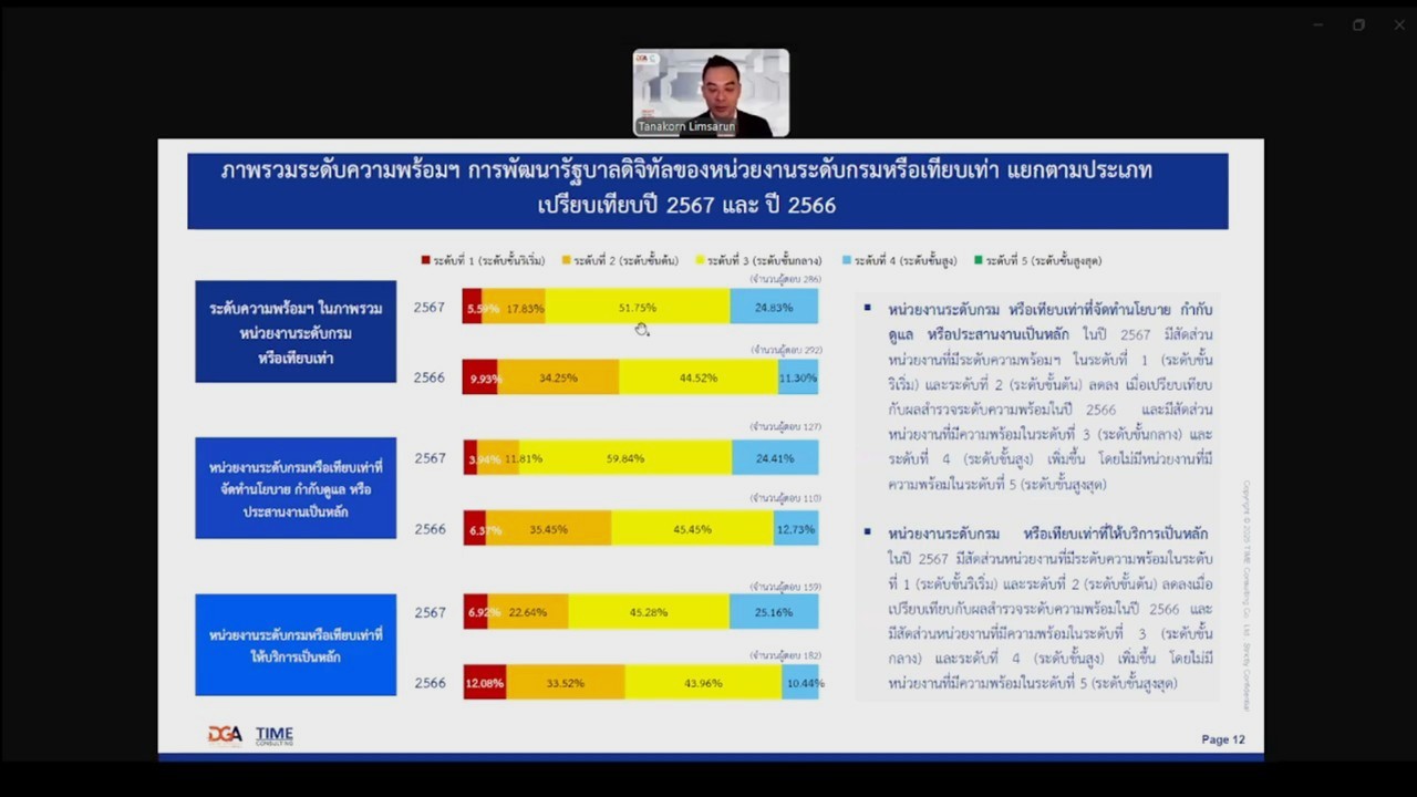 ทั้งนี้ทาง สพร. พร้อมด้วยทีมงานที่ปรึกษาของทาง สพร. ได้กำหนด และเชิญหน่วยงานเข้าประชุมรับฟังการชี้แจงเกี่ยวกับโครงการสำรวจระดับความพร้อมรัฐบาลดิจิทัลหน่วยงานภาครัฐของประเทศไทย ประจำปี 2568 ในวันอังคารที่ 11 มีนาคม 2568 เวลา 09.30 – 12.00 น. โดยได้รับเกียรติจากทางท่าน ผู้อำนวยการฝ่ายขับเคลื่อนนโยบายรัฐบาลดิจิทัล (นายชรินทร์ ธีรฐิตยางกูร) ให้เกียรติเป็นประธานเปิดการประชุม และร่วมชี้แจงความเป็นมาของโครงการสำรวจในครั้งนี้ ผ่านในรูปแบบการประชุมผ่านสื่ออิเล็กทรอนิกส์ (ระบบออนไลน์ ZOOM Meeting) เพื่อรับฟัง ข้อเสนอแนะ ข้อคิดเห็น จากหน่วยงานที่เข้าร่วมประชุม เพื่อให้ข้อคิดเห็นต่อ (ร่าง) กรอบการสำรวจ (ร่าง) แบบสำรวจระดับความพร้อมรัฐบาลดิจิทัลของหน่วยงานภาครัฐ ประจำปี 2568 โดยในส่วนของสำนักงานการปฏิรูปที่ดินเพื่อเกษตรกรรม (ส.ป.ก.) ได้มอบหมายให้ทาง ศูนย์เทคโนโลยีสารสนเทศและการสื่อสาร ส.ป.ก. (ศทส. ส.ป.ก.) และกลุ่มพัฒนาระบบบริหาร ส.ป.ก. (กพร. ส.ป.ก.) ในการเข้าร่วมรับฟังการประชุมชี้แจงในครั้งนี้ฯ โดยทาง กพร. ส.ป.ก. ได้มอบหมายให้นายทรงเกียรติ สุเทพากุล พนักงานพัฒนาระบบราชการ เข้าร่วมรับฟังฯ (ผ่านการประชุมสื่ออิเล็กทรอนิกส์ ระบบออนไลน์ ZOOM Meeting) เพื่อเป็นการลดระยะเวลาของการเดินทางและค่าใช้จ่าย รวมทั้งสามารถเข้าถึงได้รวดเร็ว ทุกที่ ร่วมทั้งเป็นการลดความเสี่ยง และป้องกันกรณีการแพร่ระบาดของโรคติดเชื้อไวรัสโคโรนา 2019 (COVID – 19) พร้อมลดความแออัดของการมารวมตัวเข้าร่วมประชุมกันในห้องประชุมเป็นจำนวนมาก และลดความเสี่ยงของการเดินทางมาเข้าร่วมประชุม เพื่อให้เป็นไปตามมาตรการเฝ้าระวังของการแพร่ระบาดของโรคติดเชื้อไวรัสโคโรนา 2019 (COVID – 19) ในส่วนของ กพร. ส.ป.ก. เข้าร่วมการอบรมฯ ณ ห้องควบคุมการประชุมออนไลน์ ห้องกลุ่มพัฒนาระบบบริหาร (ห้อง 105) ชั้น 1 ส.ป.ก. ถนนราชดำเนินนอก กรุงเทพฯ
