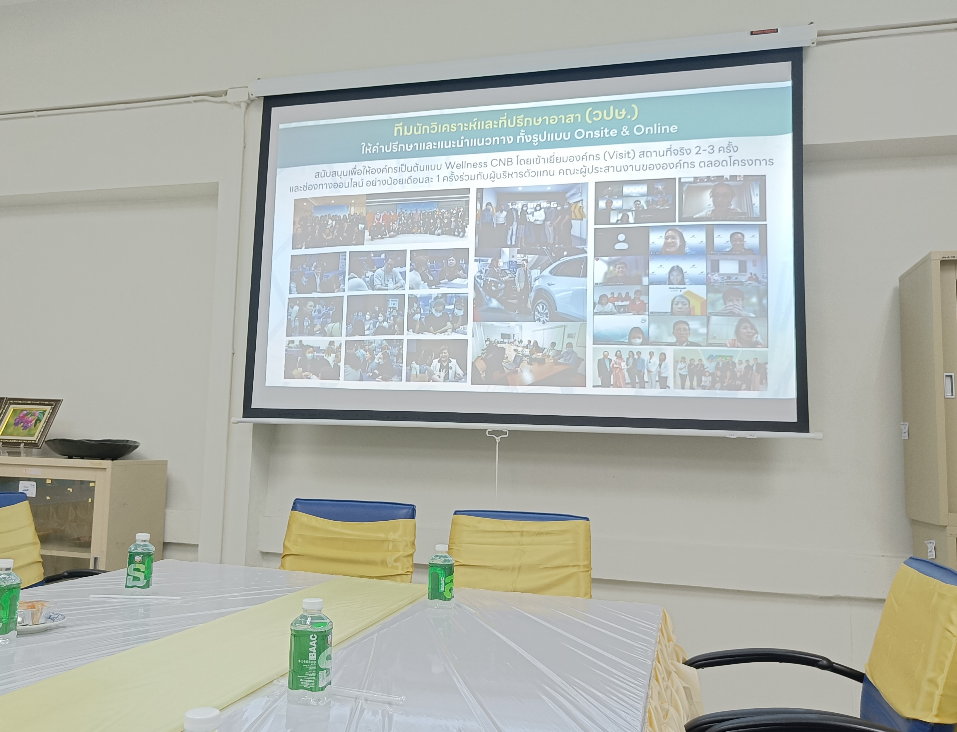 โดยที่ทาง สถาบันการสร้างชาติ (สกสช.) Nation-Buliding Institute (NBI) มาขอเข้าเยี่ยมชมศูนย์ส่งเสริมและพัฒนาอาชีพเสริมนอกภาคการเกษตร สำนักงานการปฏิรูปที่ดินเพื่อเกษตรกรรม พร้อมชี้แจงรายละเอียดในโครงการการพัฒนาสุขภาพขององค์กรเพื่อการสร้างชาติ (Weliness Corporate Nation-Buliding) ซึ่งโครงการนี้เป็นโครงการที่ริเริ่มจัดตั้งขึ้นครั้งแรกของประเทศไทยที่มุ่งสนับสนุนและพัฒนาสุขภาพของพนักงานและการบริหารจัดการภายในองค์กรให้ส่งเสริมการเกิดสุขภาพ (Weliness) ของพนักงานอย่างเป็นองค์รวม โดยบูรณาการ ทั้งปัจจัยภายในบุคคลและปัจจัยภายนอกเพื่อให้เกิดมุมมองในการดูแลอย่างครบมิติ มีการขับเคลื่อนตามลักษณะการดำเนินการตามรายหมวด (9 หมวด) ได้แก่ หมวดที่ 1 กำหนดนโยบาย กฎระเบียบ และข้อบังคับขององค์กรที่ส่งเสริมการสร้างสุขสภาพ (Wellness) ที่ดีของบุคลากร หมวดที่ 2 การให้ความรู้และข้อมูลเกี่ยวกับสุขสภาพ (Wellness) และการดูแลตัวเองที่ถูกต้องตามหลักวิชาการให้แก่บุคลากรในองค์กร หมวดที่ 3 การพัฒนาขีดความสามารถของบุคลากรให้สามารถจัดการตัวเองเพื่อให้เกิดสุขสภาพ (Wellness) ที่ดี หมวดที่ 4 การจัดการสภาพแวดล้อมทางกายภาพที่ส่งเสริมการสร้างเสริมสุขภาพ (Wellness) ภายในองค์กร หมวดที่ 5 การสร้างแรงจูงใจ วัฒนธรรม ค่านิยมขององค์กร เพื่อส่งเสริมให้เกิดพฤติกรรมที่เหมาะสมกับการสร้างเสริมสุขภาพ (Wellness) หมวดที่ 6 การสนับสนุนทรัพยากรให้แก่บุคลากรในการทำกิจกรรมที่สร้างสุขภาพ (Wellness) ที่ดี หมวดที่ 7 การพัฒนากระบวนการภายในองค์กรที่ส่งเสริมสุขภาพ (Wellness) บุคลากร หมวดที่ 8 การจัดโครงสร้างภายในองค์กรให้สนับสนุนการดำเนินงานด้านสุขภาพ (Wellness) และหมวดที่ 9 การสร้างความเป็นสถาบันเพื่อสร้างความต่อเนื่องยั่งยืน (Institutionalization) ด้านสุขภาพ (Wellness) ภายในองค์กร โดยในแนวปฏิบัติ 9 หมวด มีพื้นฐานในการมุ่งพัฒนาส่งเสริมบุคลากรในองค์กรให้เกิดสุชสบาย (Wellness) ที่ดีรอบด้าน ช่วยสร้างผลลัพธ์ที่เพิ่มขึ้นให้กับองค์กร