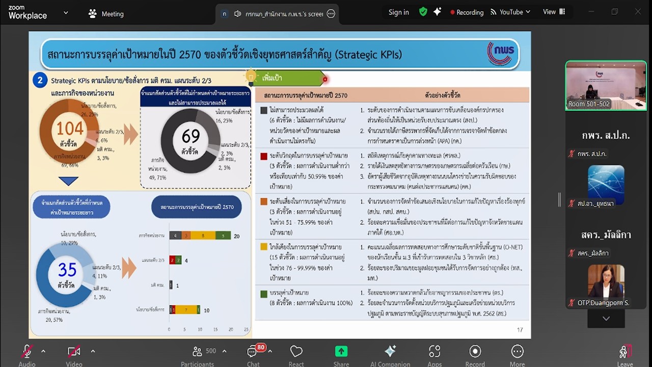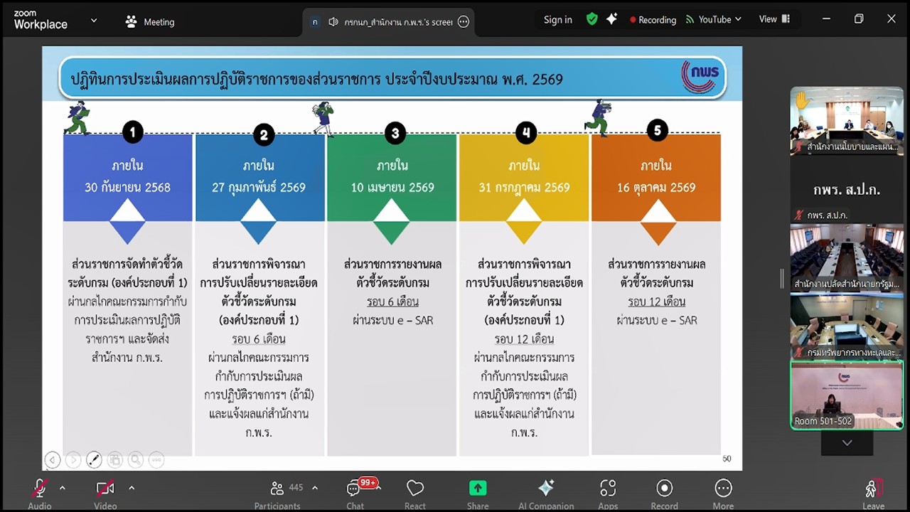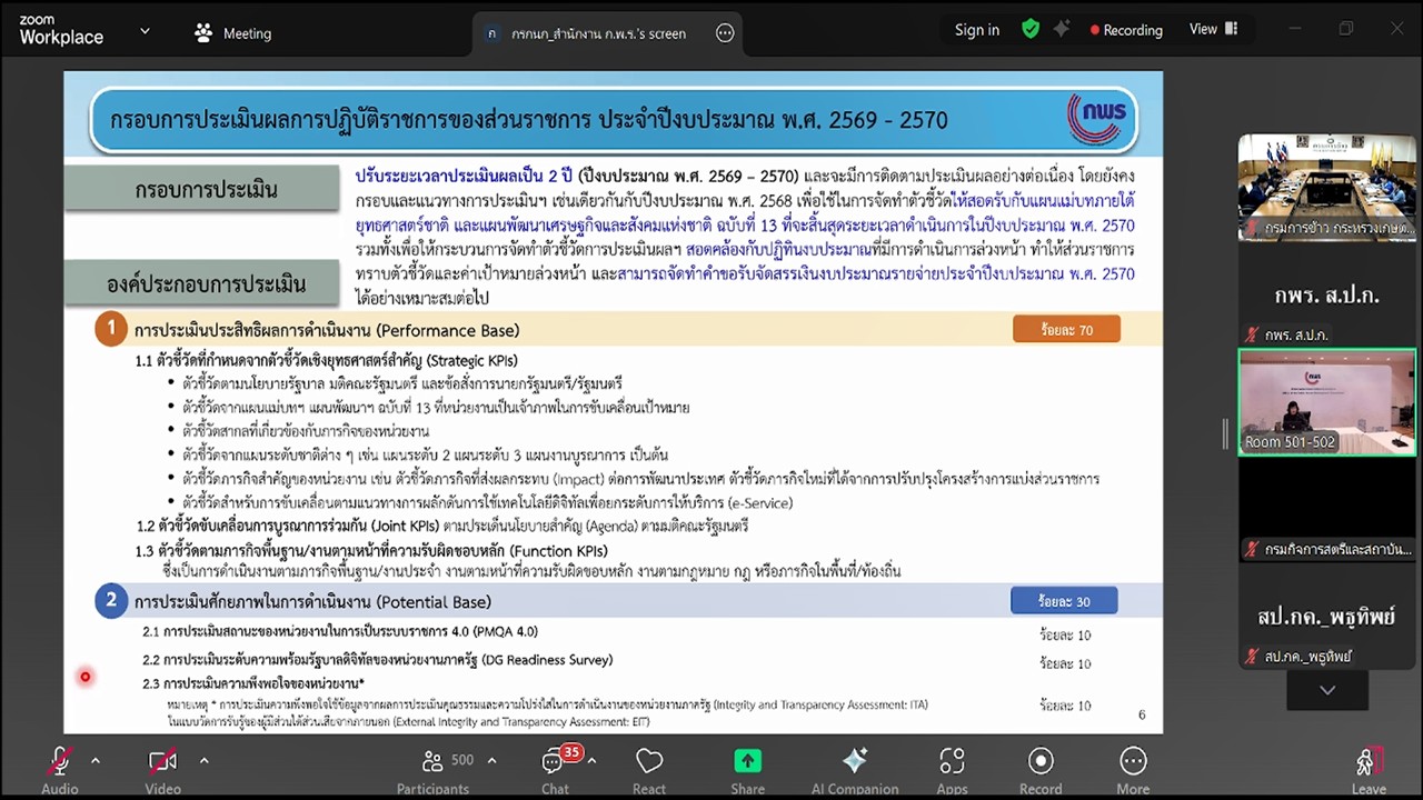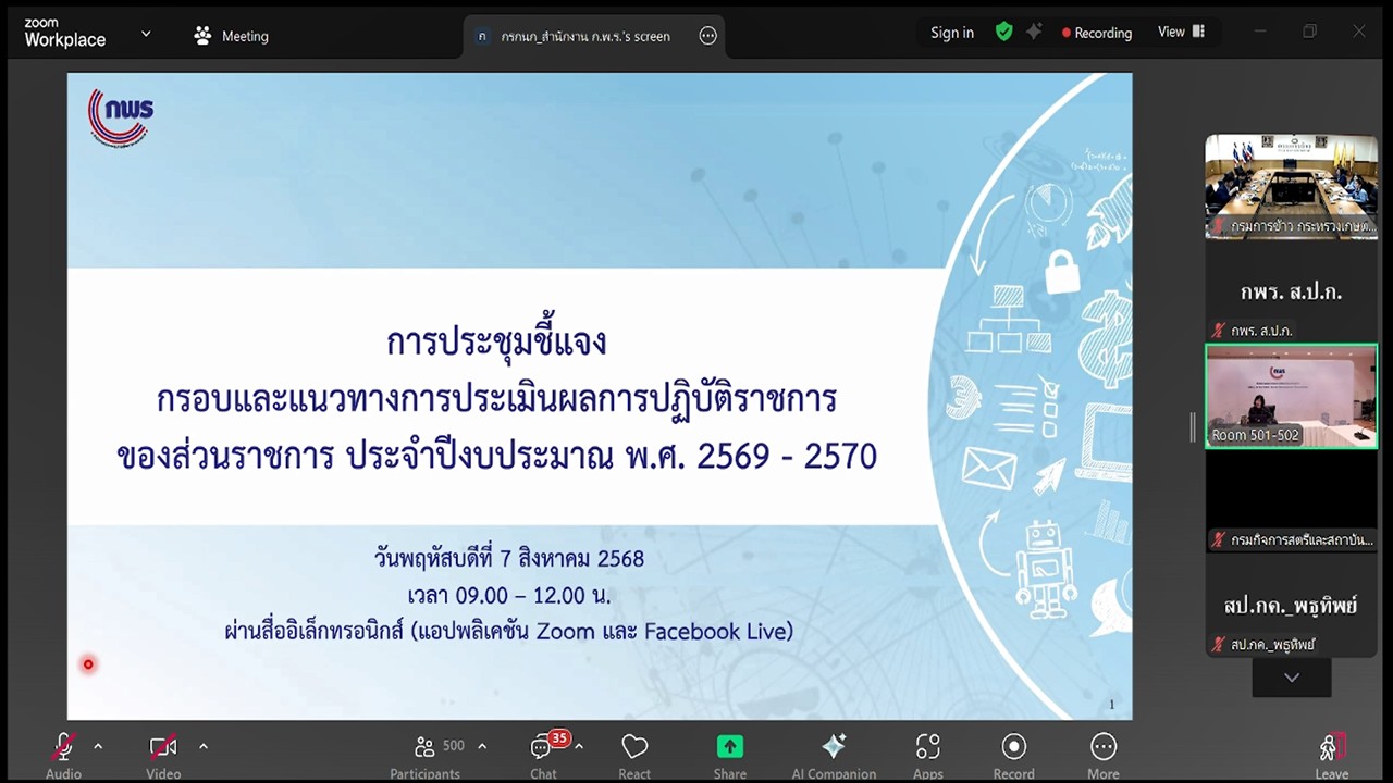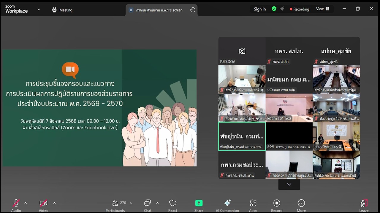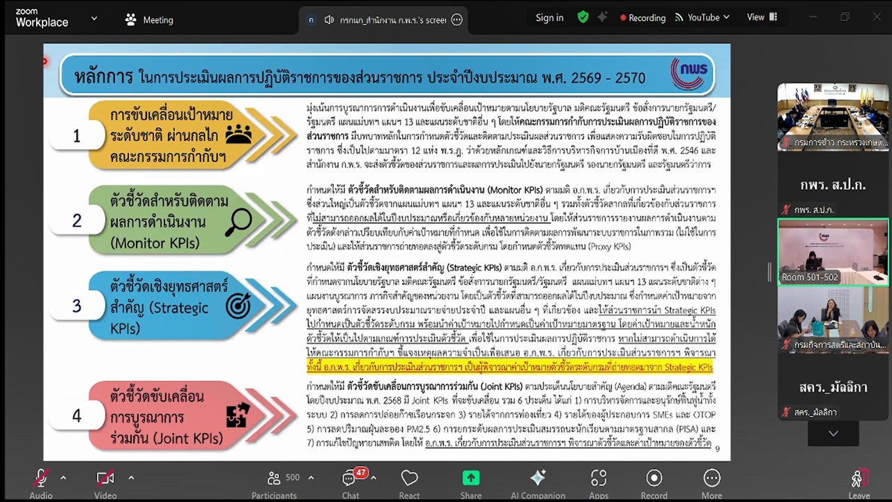 เข้าร่วมการประชุมชี้แจงกรอบและแนวทางการประเมินผลการปฏิบัติราชการของส่วนราชการ ประจำปีงบประมาณ พ.ศ. 2569-2570 ผ่านสื่ออิเล็กทรอนิกส์ (ระบบ Zoom Meeting และผ่านระบบ Youtube Live) ของสำนักงาน ก.พ.ร.