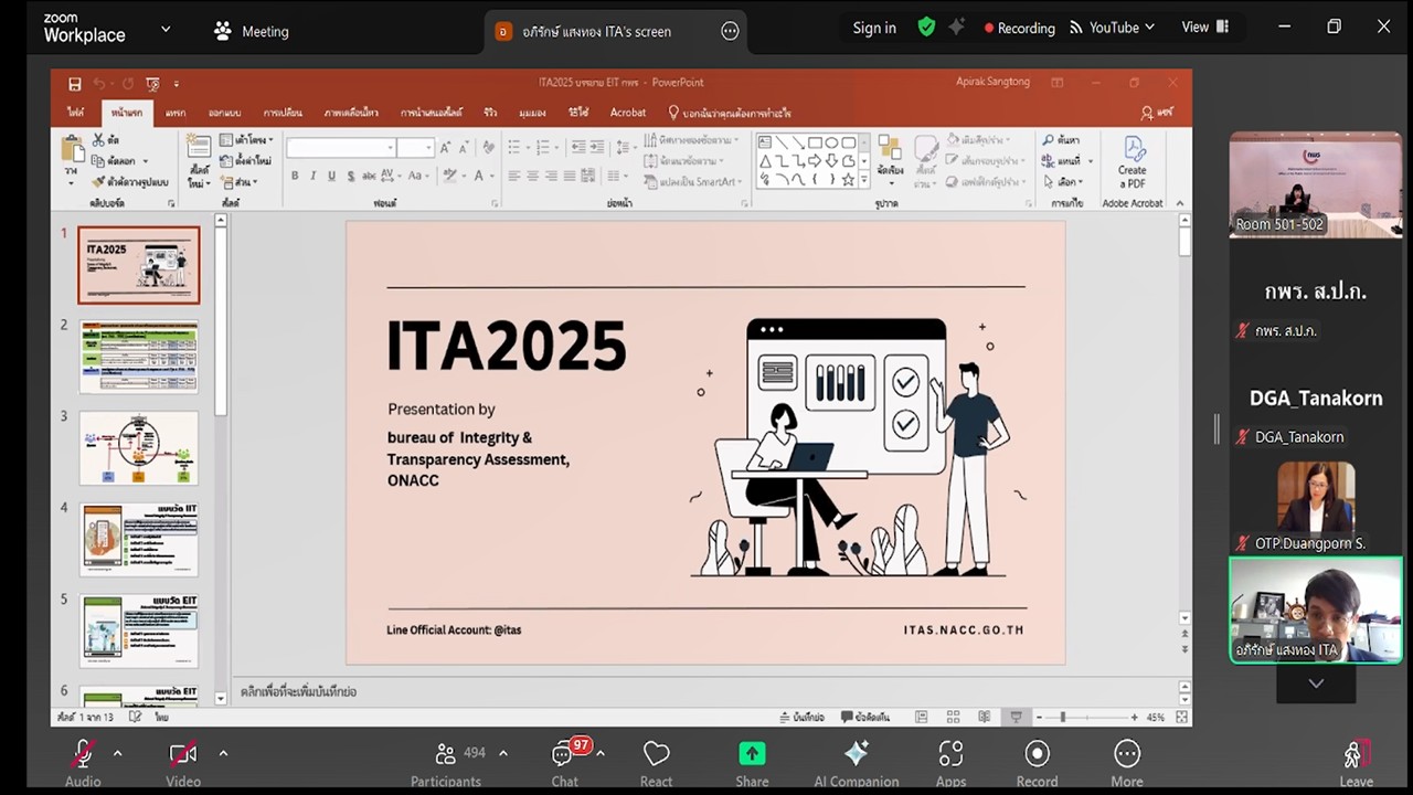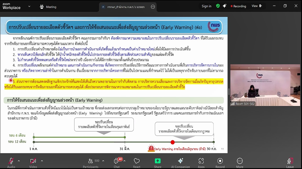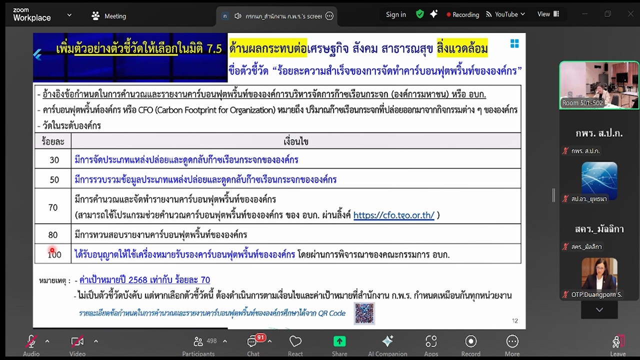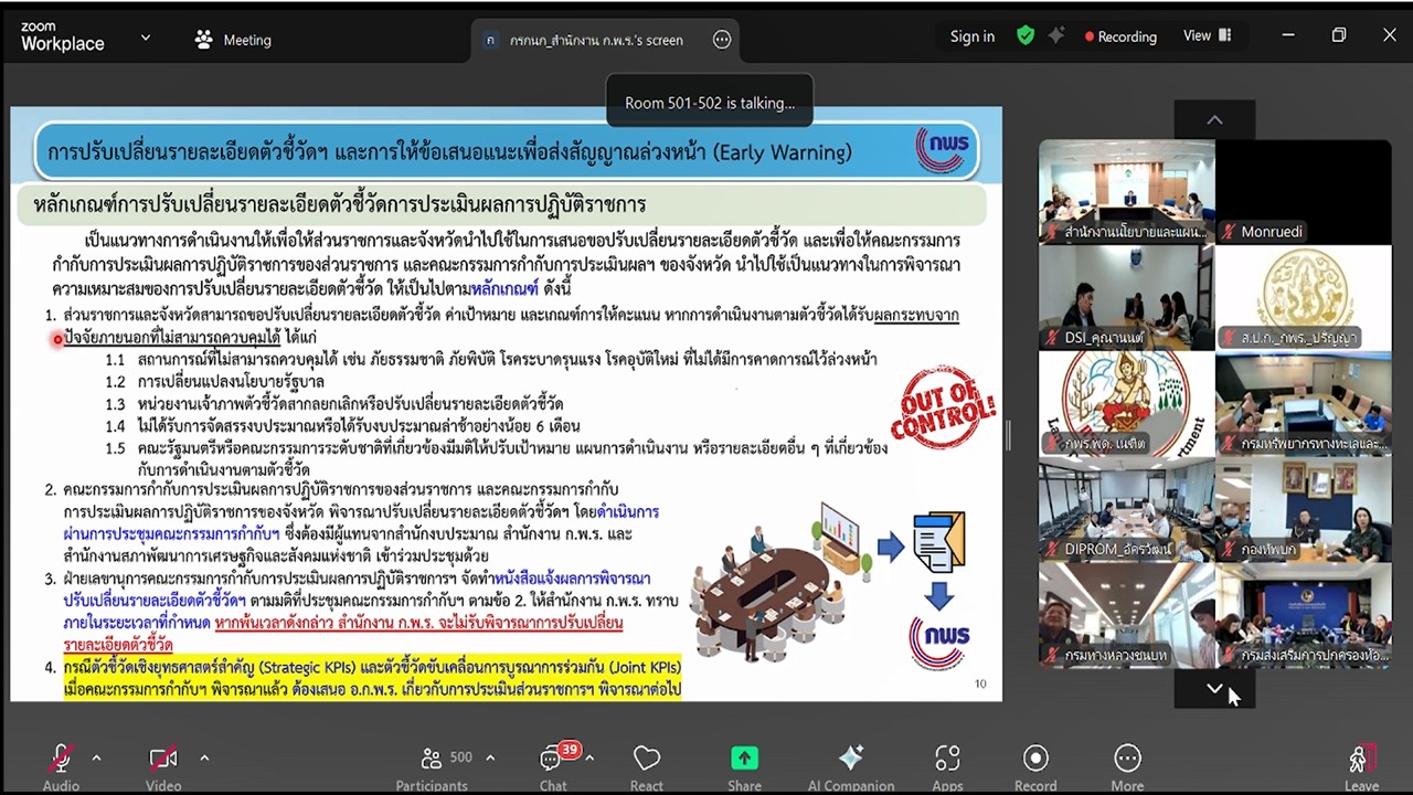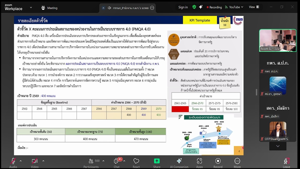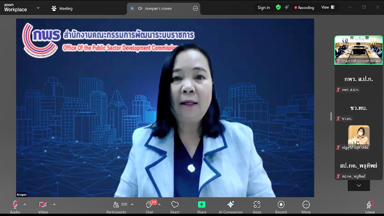 เข้าร่วมการประชุมชี้แจงกรอบและแนวทางการประเมินผลการปฏิบัติราชการของส่วนราชการ ประจำปีงบประมาณ พ.ศ. 2569-2570 ผ่านสื่ออิเล็กทรอนิกส์ (ระบบ Zoom Meeting และผ่านระบบ Youtube Live) ของสำนักงาน ก.พ.ร.