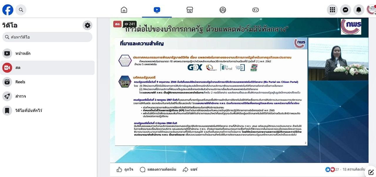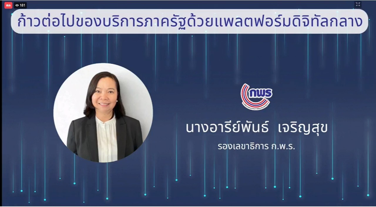 เข้าร่วมประชุมสัมมนาเรื่อง “ก้าวต่อไปของบริการภาครัฐ ด้วยแพลตฟอร์มดิจิทัลกลาง” ผ่านสื่ออิเล็กทรอนิกส์ (ประชุมผ่านระบบออนไลน์ Facebook Live) สำนักงานคณะกรรมการพัฒนาระบบราชการ (สำนักงาน ก.พ.ร.)