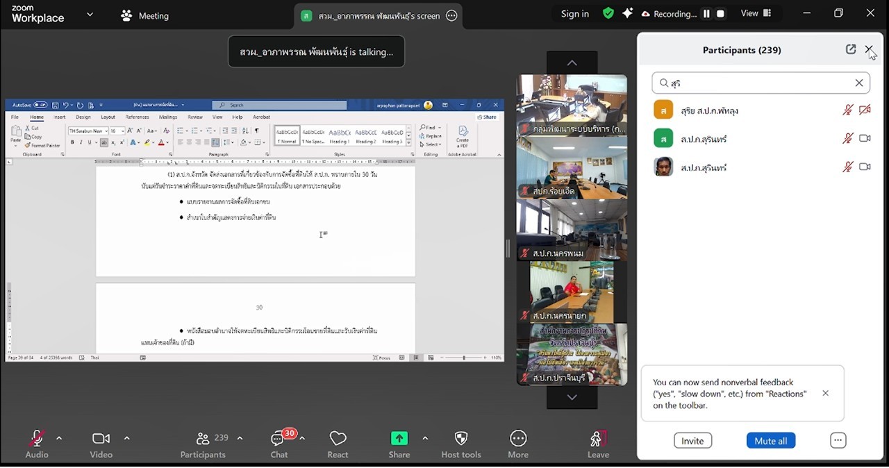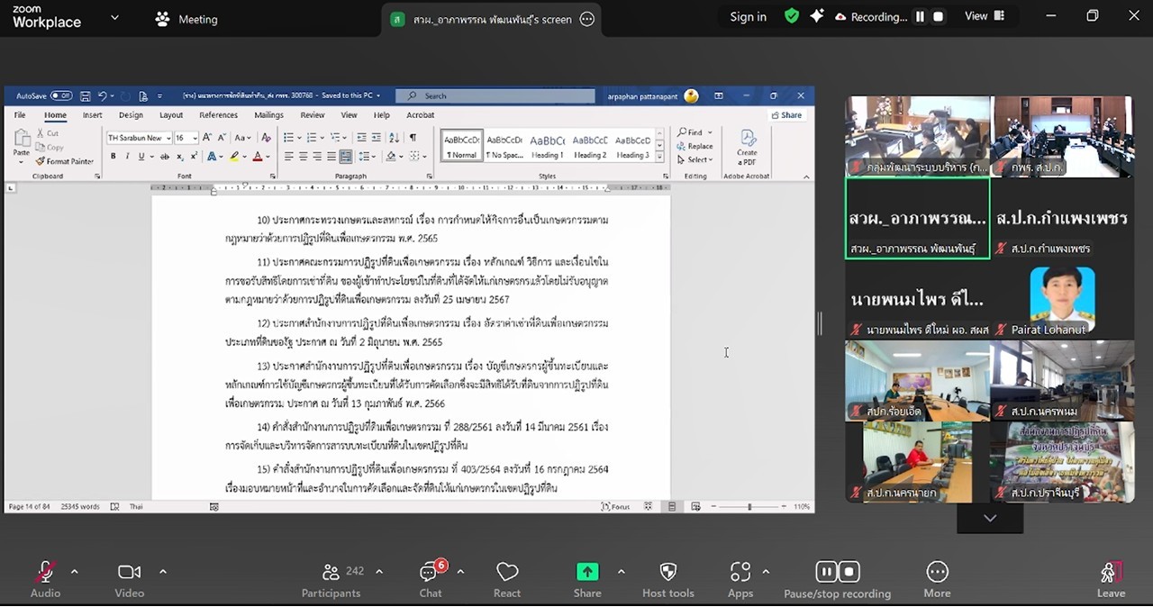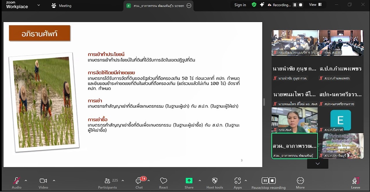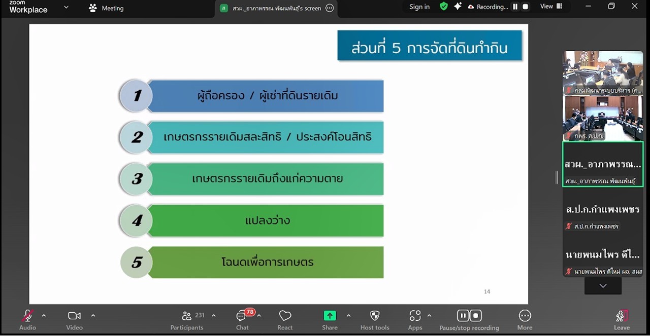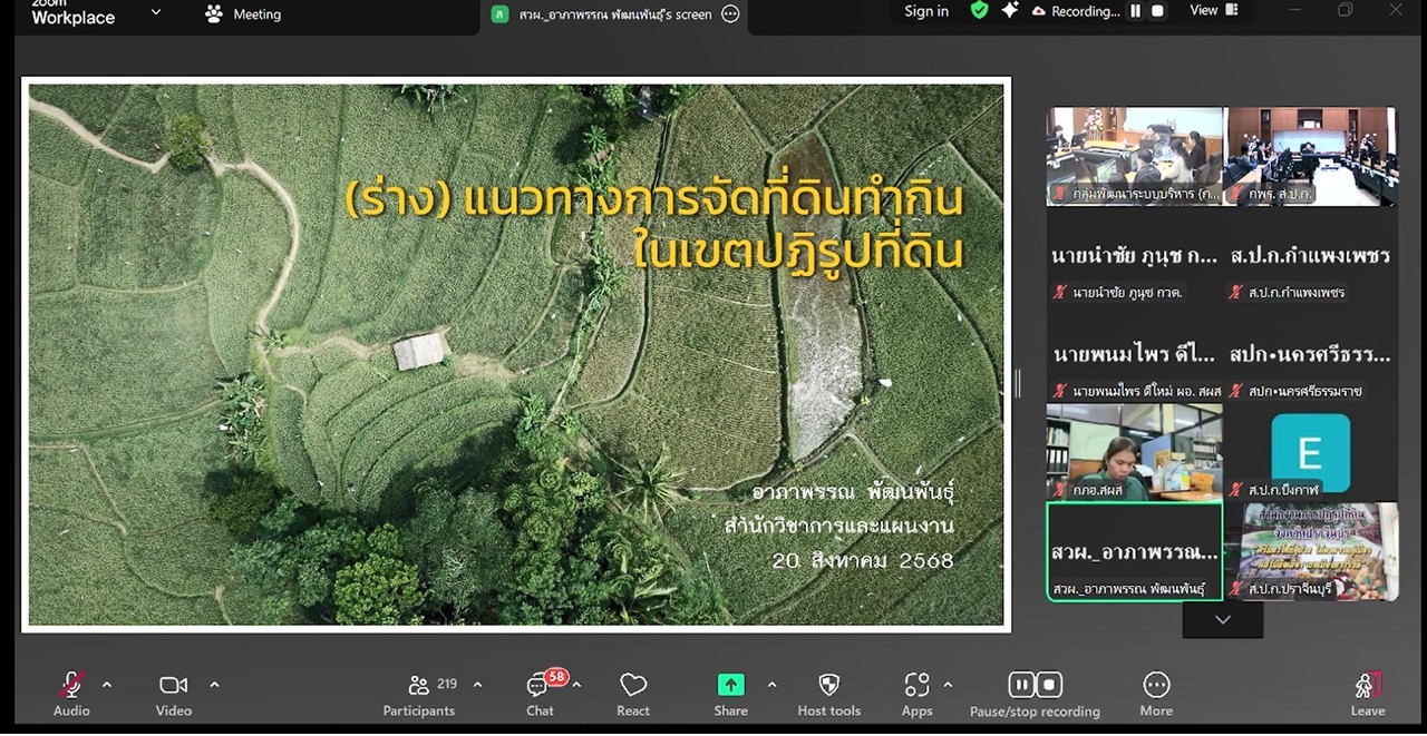 ประชุมชี้แจงรายละเอียด (ร่าง) คู่มือแนวทางการจัดที่ดินทำกินในเขตปฏิรูปที่ดิน ผ่านสื่ออิเล็กทรอนิกส์ (ระบบ Zoom Meeting)
