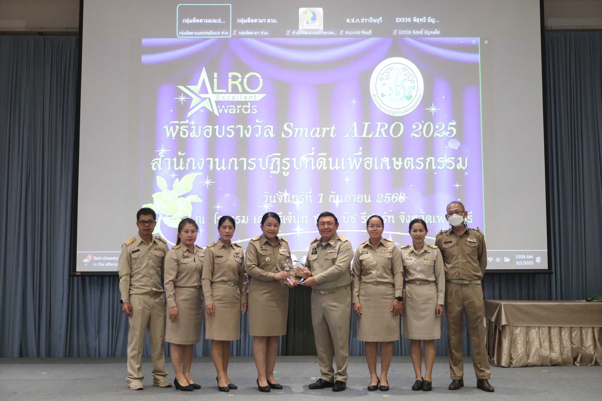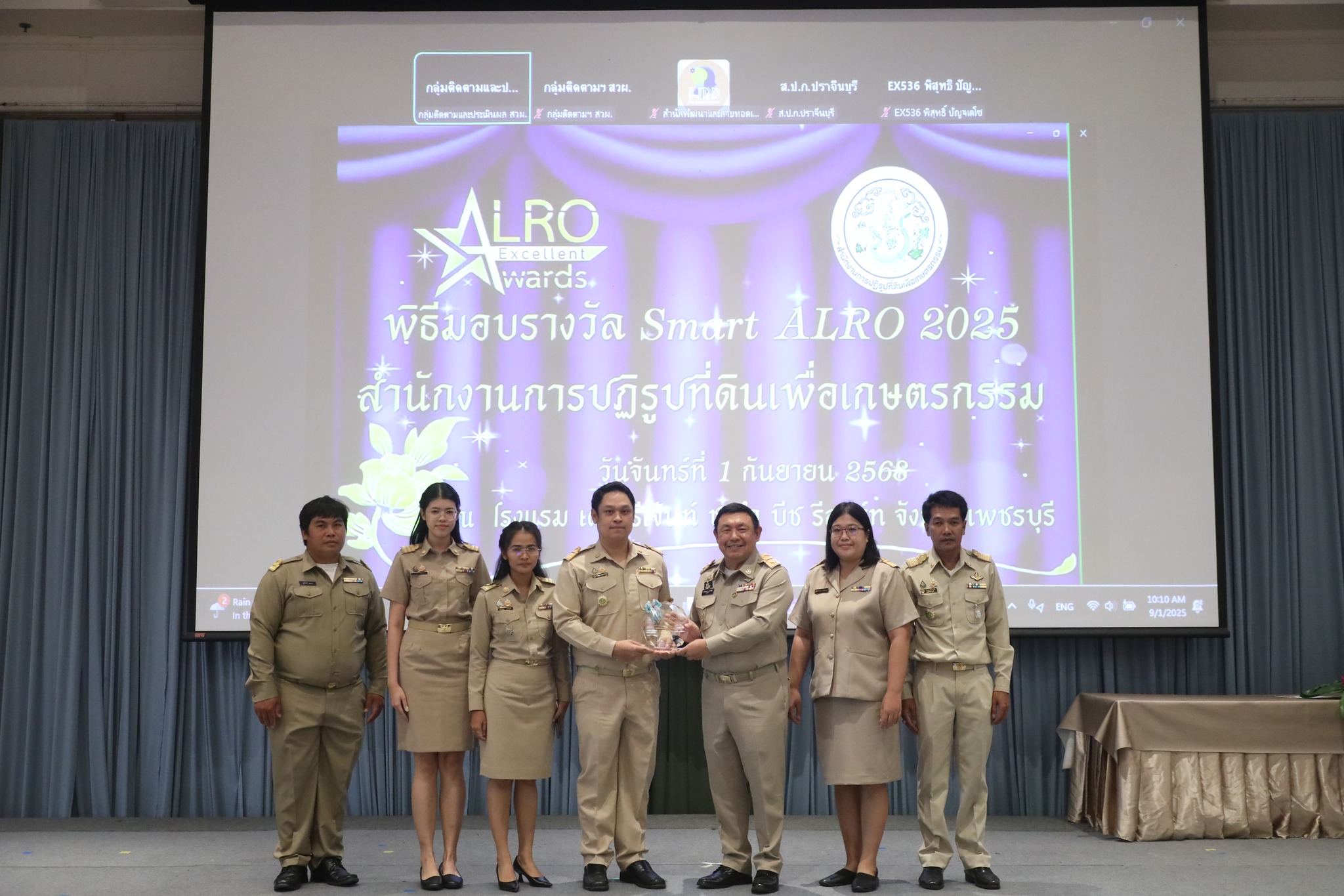 โดยพิธีมอบโล่รางวัล Smart ALRO Province 2025 ของสำนักงานการปฏิรูปที่ดินเพื่อเกษตรกรรม (ส.ป.ก.) ในครั้งนี้จัดขึ้น ณ ห้องเพชรบุรี แกรนด์ ฮอลล์ (Petchburi Grand Hall) โรงแรม เดอะรีเจ้นท์ ชะอำ รีสอร์ท จังหวัดเพชรบุรี (ภายในงานโครงการสัมมนาเชิงปฏิบัติการ เรื่อง “การติดตามเร่งรัดผลการดำเนินงาน ประจำปีงบประมาณ พ.ศ. 2568 และกรอบการดำเนินงาน ประจำปีงบประมาณ พ.ศ. 2569) ซึ่งจัดระหว่างวันที่ 31 สิงหาคม 2568 – 2 กันยายน 2568
