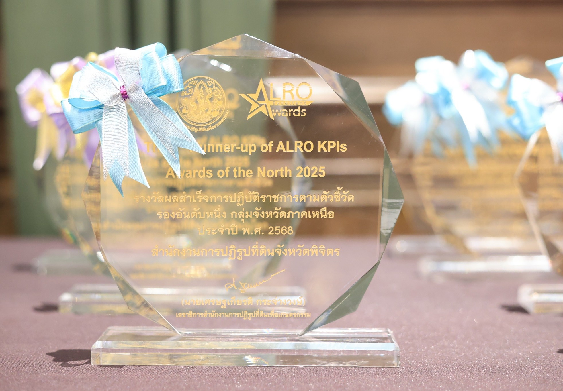 7 รางวัลผลสำเร็จการปฏิบัติราชการตามตัวชี้วัดรองอันดับหนึ่ง กลุ่มจังหวัดภาคเหนือ ประจำปี พ.ศ. 2568 (The 1st Runner-up of ALRO KPIs Awards of the North 2025) ได้แก่ สำนักงานการปฏิรูปที่ดินจังหวัดพิจิตร