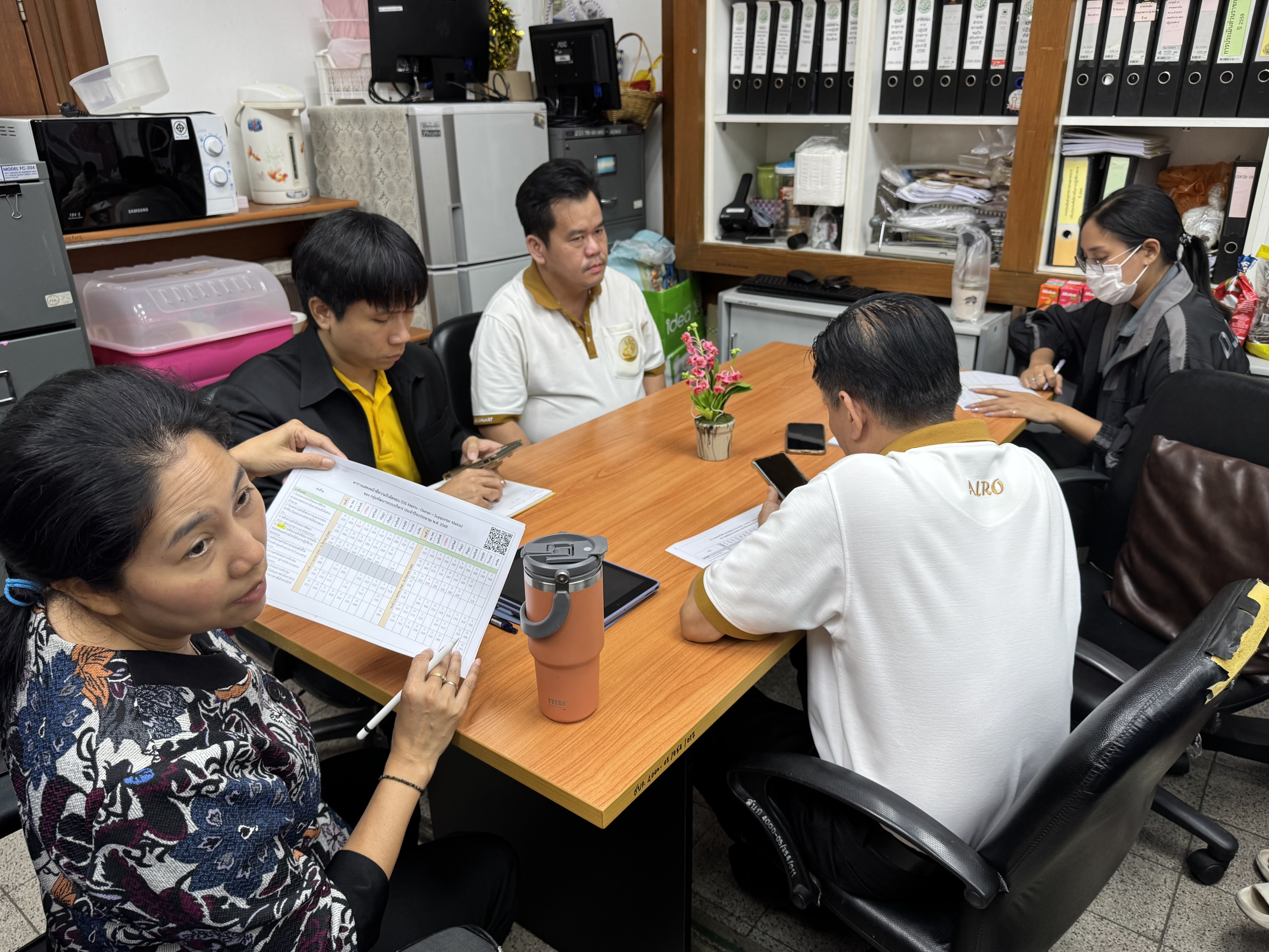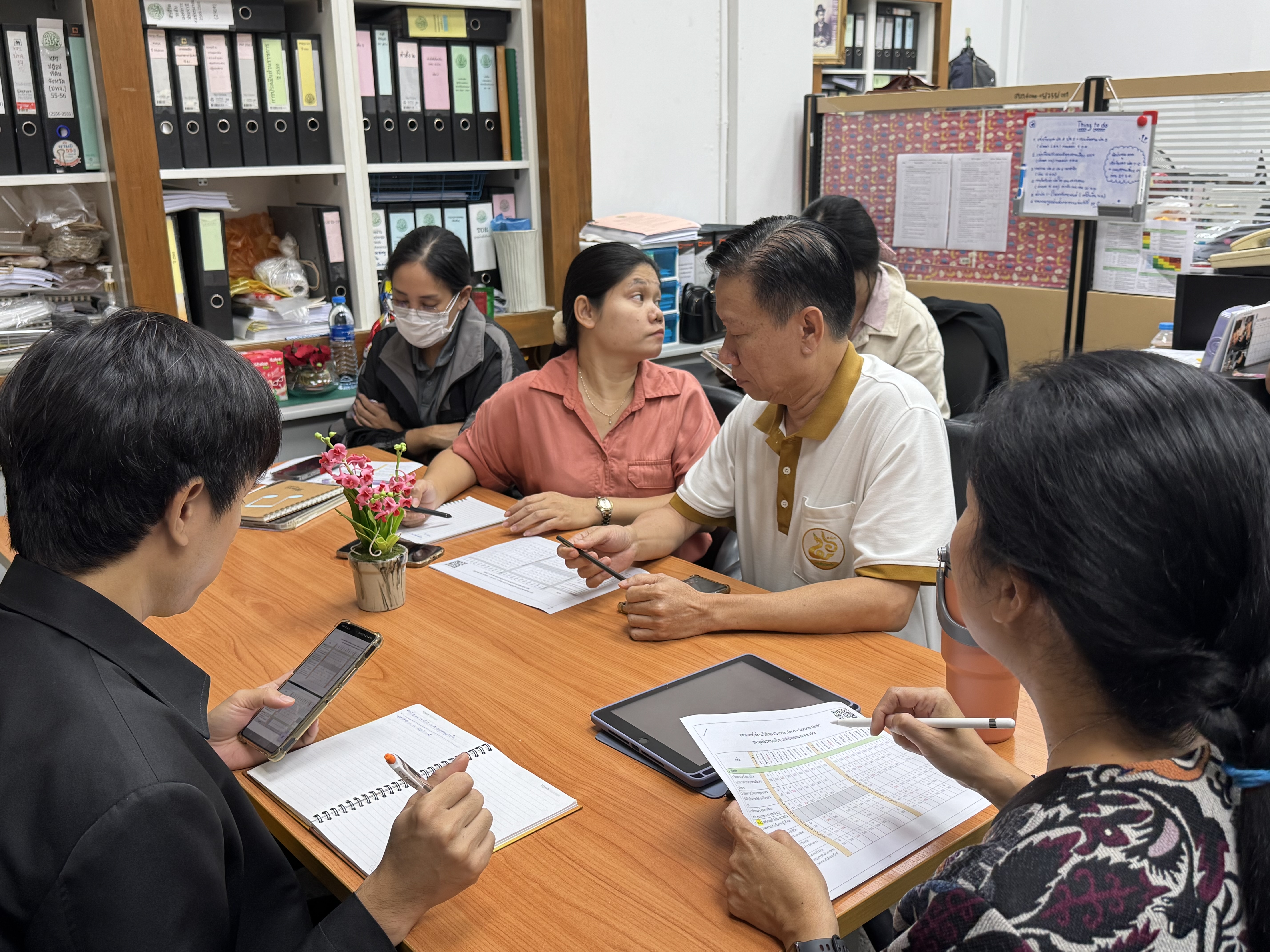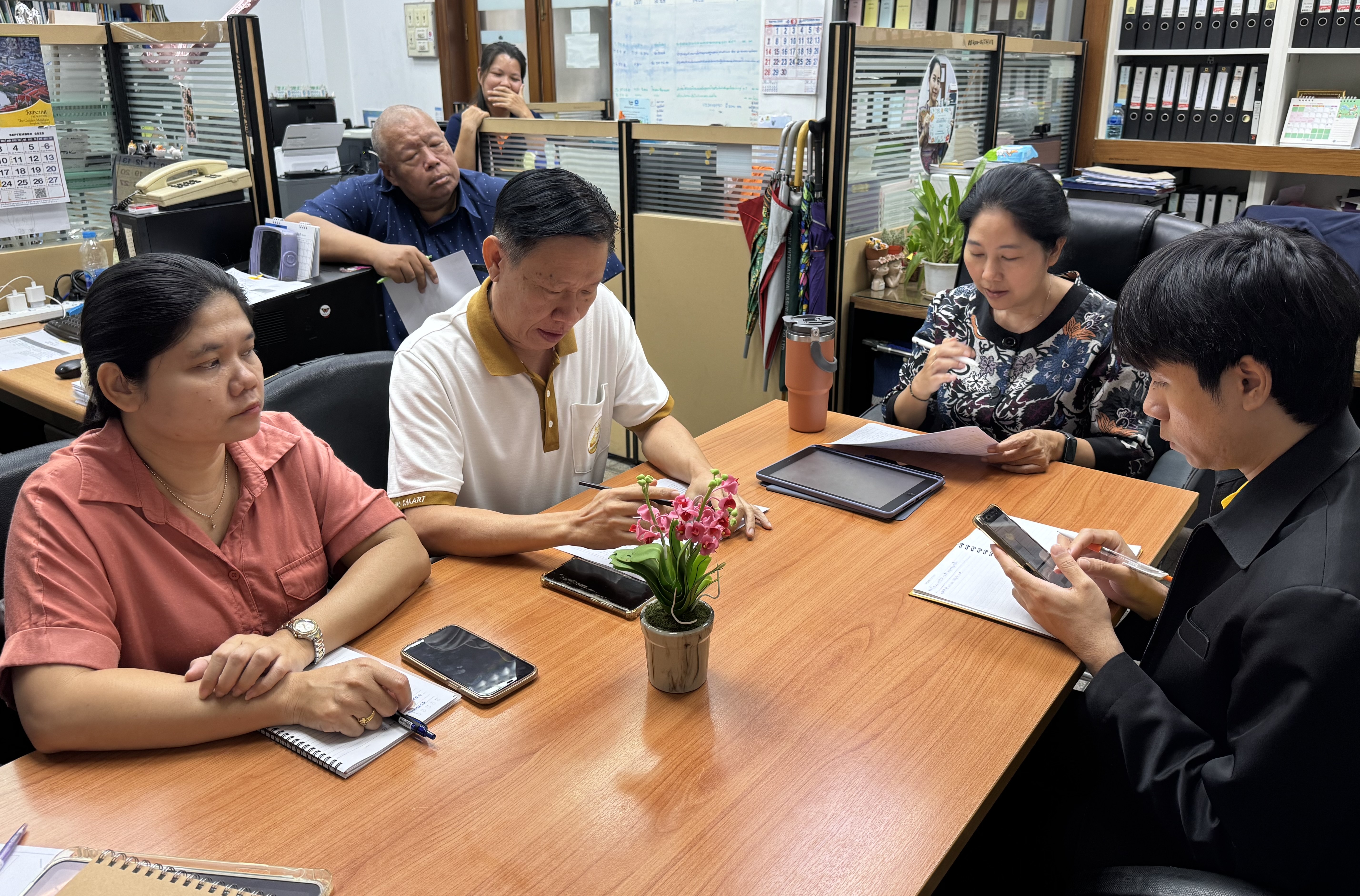 วันพฤหัสบดีที่ 4 กันยายน 2568 เวลา 14.00 น. ผู้อำนวยการกลุ่มพัฒนาระบบบริหาร (นางสาวกานดา ศากยะโรจน์) ได้นัดหมายเจ้าหน้าที่ภายในกลุ่มประชุมย่อยภายใน เพื่อติดตามการดำเนินงานกับทางเจ้าหน้าที่ที่รับผิดชอบ และเตรียมสรุปผลการดำเนินงานที่ผ่านมาในช่วงไตรมาสที่ 4/2568 ที่กลุ่มพัฒนาระบบบริหาร ส.ป.ก. (กพร. ส.ป.ก.) รับผิดชอบเพื่อสรุปรายงานผลให้ทางผู้บริหารได้รับทราบ รวมทั้งเตรียมวางแผนขับเคลื่อนงานที่จะต้องดำเนินการอย่างต่อเนื่องในปีงบประมาณ พ.ศ. 2569 เพื่อให้การปฏิบัติงานการขับเคลื่อนงานด้านการพัฒนาระบบราชการของ ส.ป.ก. เป็นไปอย่างต่อเนื่อง โดยทั้งนี้ได้มีการบอกกล่าวแนะนำงานของ กพร. ส.ป.ก. ที่รับผิดชอบให้กับทางเจ้าหน้าที่ใหม่ จำนวน 1 ท่าน รายนางสาวปาริฉัตร ศรีขาว นักวิเคราะห์นโยบายและแผนปฏิบัติการ ที่เลือกมาบรรจุลงปฏิบัติหน้าที่ภายใน กพร. ส.ป.ก. ที่จะมาช่วยกันขับเคลื่อนงานด้านพัฒนาระบบราชการของ ส.ป.ก. ให้ดียิ่งขึ้น พร้อมมีการมอบหมายงานให้กับทางเจ้าหน้าที่ใหม่ได้นำไปศึกษาเบื้องต้น และเรียนรู้ รับผิดชอบ โดยมีเจ้าหน้าที่เก่าคอยช่วยกำกับดูแล ให้คำแนะนำ โดยการนัดหมายประชุม พูดคุย พบปะกันกับเจ้าหน้าที่ภายในกลุ่มนั้น เพื่อแลกเปลี่ยนข้อคิดเห็นของการทำงานร่วมกัน พร้อมสอบถามหารือ ช่วยเหลือกันกับปัญหางานที่รับผิดชอบที่ได้พบเจอ ในการนั่งพูดคุยกันภายในกลุ่มเพื่อหาแนวทางแก้ไขปัญหาร่วมกัน ให้การขับเคลื่อนงานเป็นไปอย่างต่อเนื่อง และเป็นไปตามนโยบายของผู้บริหาร ส.ป.ก.