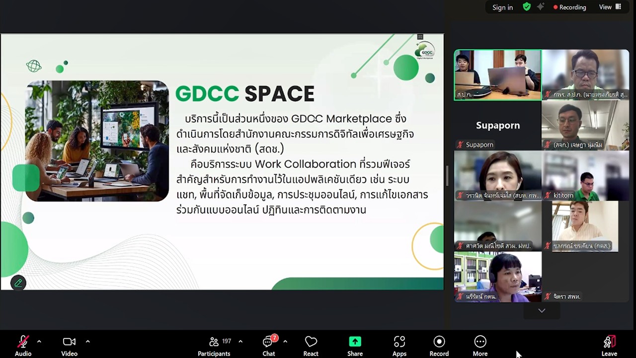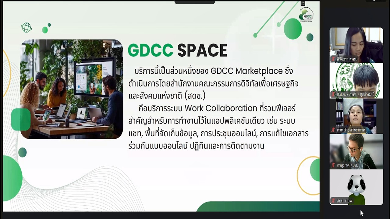 เข้าร่วมฝึกอบรมเชิงปฏิบัติการ การใช้งานซอฟต์แวร์ GDCC Space Plus ผ่านสื่ออิเล็กทรอนิกส์ (ฝึกอบผ่านระบบออนไลน์ ZOOM Meeting)