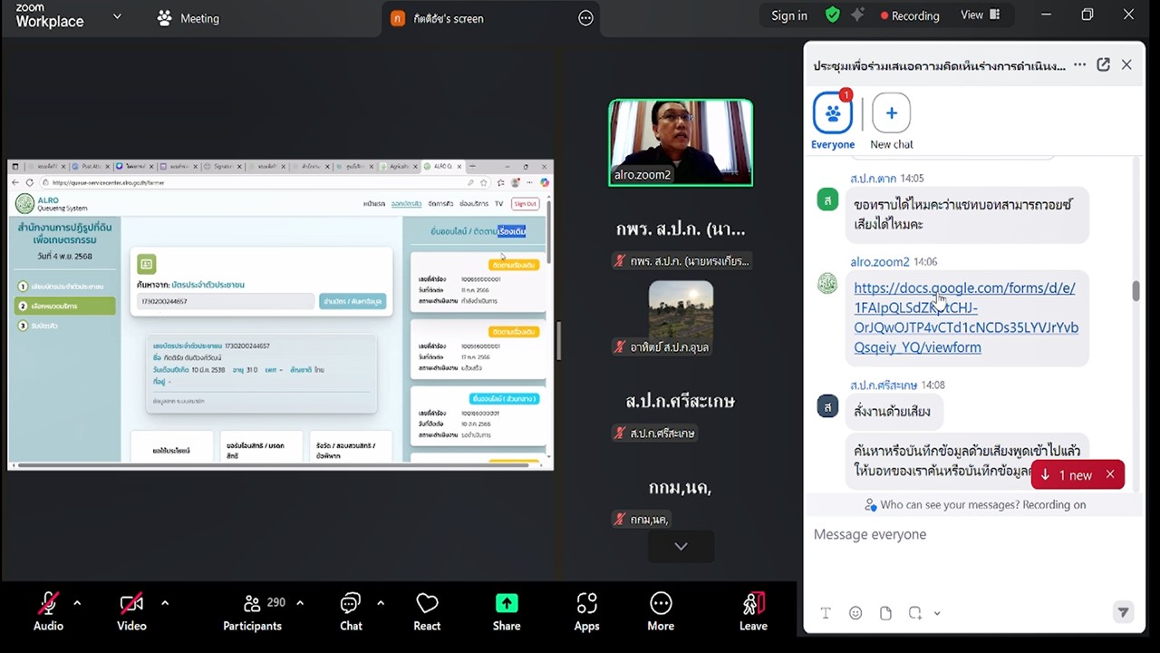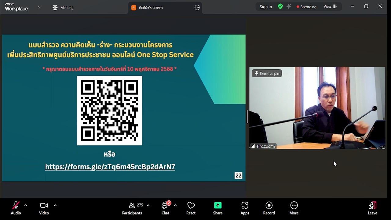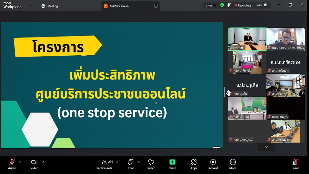 เข้าร่วมประชุมหารือเพื่อร่วมเสนอความคิดเห็นร่างการดำเนินงานโครงการเพิ่มประสิทธิภาพศูนย์บริการประชาชนออนไลน์ One Stop Service ในงานบริการแต่ละกระบวนงานของ ส.ป.ก. ผ่านสื่ออิเล็กทรอนิกส์ (ระบบออนไลน์ ZOOM Meeting)