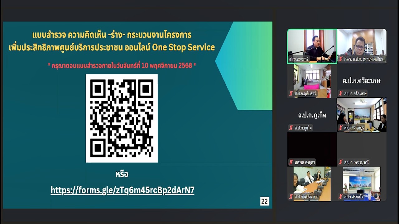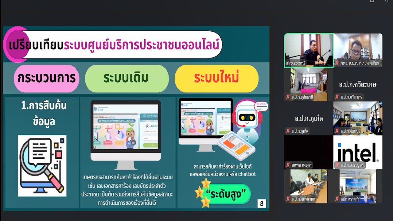 ตามที่ สำนักงานการปฏิรูปที่ดินเพื่อเกษตรกรรม (ส.ป.ก.) ได้มีการขับเคลื่อนการพัฒนาและยกระดับการให้บริการประชาชนในส่วนของ ศูนย์บริการประชาชนทั้งใน ส.ป.ก. ส่วนกลาง และส่วนภูมิภาค (ทั้ง ส.ป.ก. 72 จังหวัด) ที่เปิดให้มีการให้บริการในรูปแบบ e-Service ตั้งแต่ช่วงกลางปี 2566 ซึ่งเป็นช่วงของการเริ่มดำเนินการให้บริการประชาชนในรูปแบบออนไลน์ เพื่อให้การบริการเป็นไปตามคู่มือการให้บริการประชาชนตามพระราชบัญญัติการอำนวยความสะดวกในการพิจารณาอนุญาตของทางราชการ พ.ศ. 2558 ของ ส.ป.ก. และเป็นไปตามแนวทางของพระราชบัญญัติการปฏิบัติราชการทางอิเล็กทรอนิกส์ พ.ศ. 2565 อีกด้วย โดย ส.ป.ก. ได้มีการปรับเปลี่ยนขั้นตอนของงานการให้บริการ และรูปแบบเอกสารสิทธิจากหนังสืออนุญาตให้เข้าทำประโยชน์ในเขตปฏิรูปที่ดิน หรือใบ ส.ป.ก. 4-01 เปลี่ยนแปลงเป็น โฉนดเพื่อการเกษตร โดยมีการปรับเปลี่ยนรูปแบบขั้นตอนกระบวนงาน แบบฟอร์ม เอกสารหลักฐานการให้บริการ ทางศูนย์เทคโนโลยีสารสนเทศและการสื่อสาร ส.ป.ก. เป็นหน่วยหลักในการพัฒนาระบบโปรแกรม และรับผิดชอบในงานการให้บริการประชาชนผ่านในรูปแบบออนไลน์ จึงได้จัดการประชุมชี้แจงหารือขึ้น ในวันอังคารที่ 4 พฤศจิกายน 2568 เวลา 13.30 น. เป็นในรูปแบบผ่านการอบรมสื่ออิเล็กทรอนิกส์ (ระบบออนไลน์ Zoom Meeting) โดยได้รับเกียรติจากทางท่านผู้อำนวยการศูนย์เทคโนโลยีสารสนเทศและการสื่อสาร ส.ป.ก. (นางสาวลักษณา มั่นเศรษฐวิทย์) เป็นประธานเปิดการประชุม พร้อมกล่าวความเป็นมาของการเชิญประชุมในครั้งนี้ และมอบหมายให้ทางผู้อำนวยการกลุ่มบริหารและพัฒนาระบบสารสนเทศ (นายกฤษณะ นุชอิสสระ) พร้อมคณะเจ้าหน้าที่ มากล่าวอธิบายในส่วนของรายละเอียดเนื้อหาและร่วมหารือกับผู้เข้าร่วมการประชุม โดยผู้เข้าร่วมประชุมประกอบด้วยเจ้าหน้าที่เกี่ยวข้องจากส่วนกลาง และทาง ส.ป.ก. จังหวัด เข้าร่วม ถาม-ตอบ และหารือเพื่อร่วมเสนอความคิดเห็นร่างการดำเนินงานโครงการเพิ่มประสิทธิภาพศูนย์บริการประชาชนออนไลน์ One Stop Service ในงานบริการแต่ละกระบวนงานของ ส.ป.ก. โดยเป็นการพัฒนา ปรับปรุง เพิ่มประสิทธิภาพการให้บริการในรูปแบบ e-Service ดียิ่งขึ้น