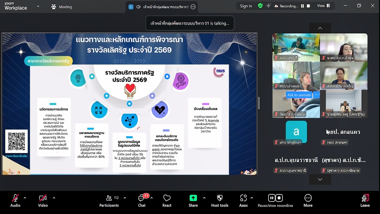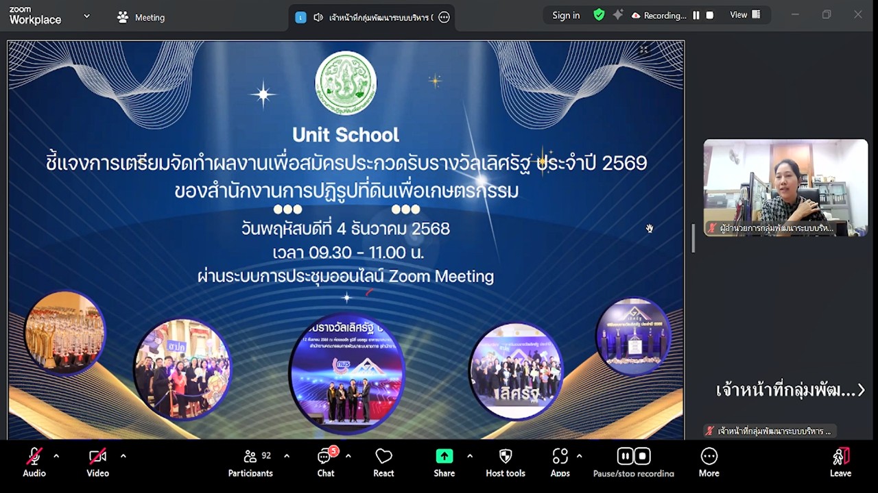 Unit School รับฟังการชี้แจงรายละเอียดเกี่ยวกับการส่งผลงานเพื่อสมัครรับรางวัลเลิศรัฐ ประจำปี 2569 ผ่านสื่ออิเล็กทรอนิกส์ (ผ่านระบบออนไลน์ Zoom Meeting)