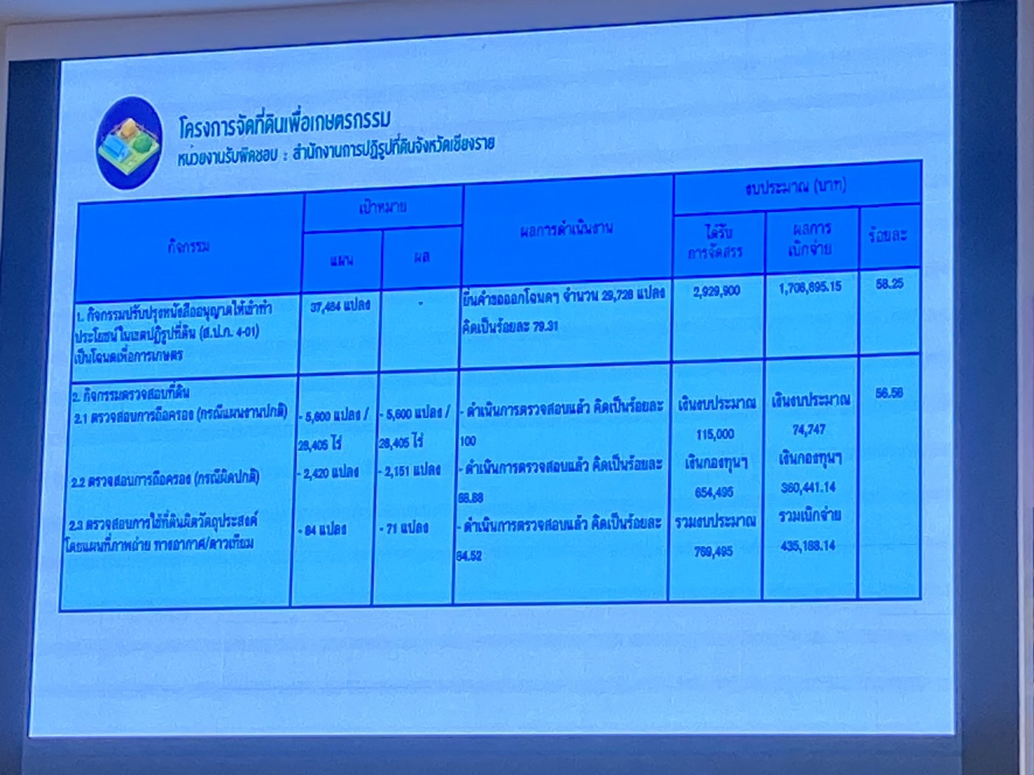 1.การเร่งรัดการจัดที่ดินทำกินให้แก่เกษตรกร และคาดว่าจะดำเนินการแล้วเสร็จภายในเดือนกันยายน 2568 ดังนี้