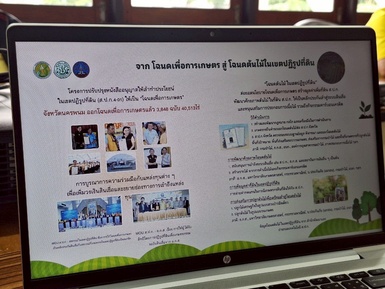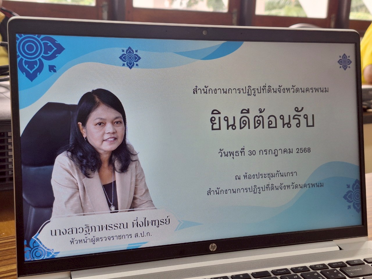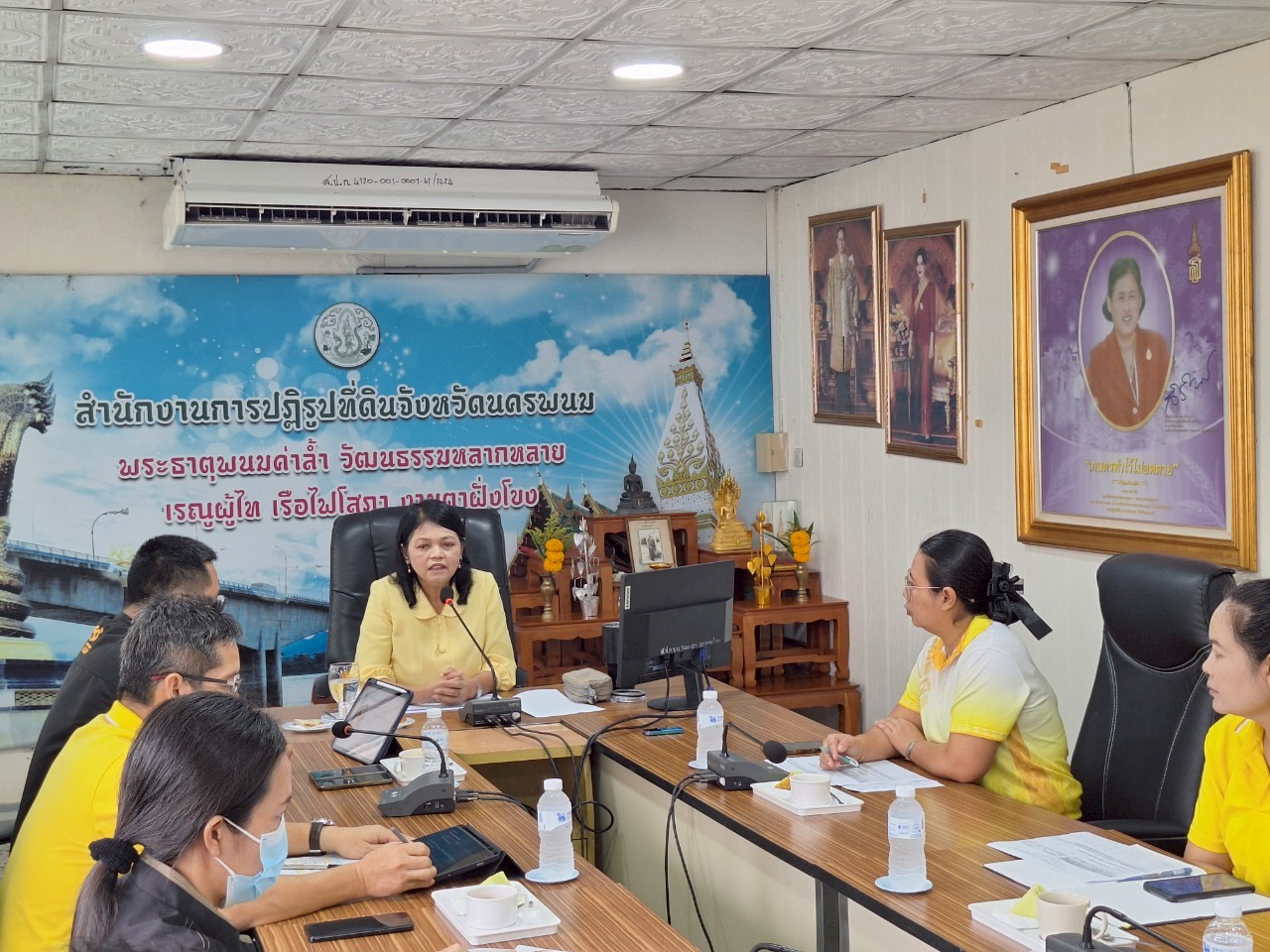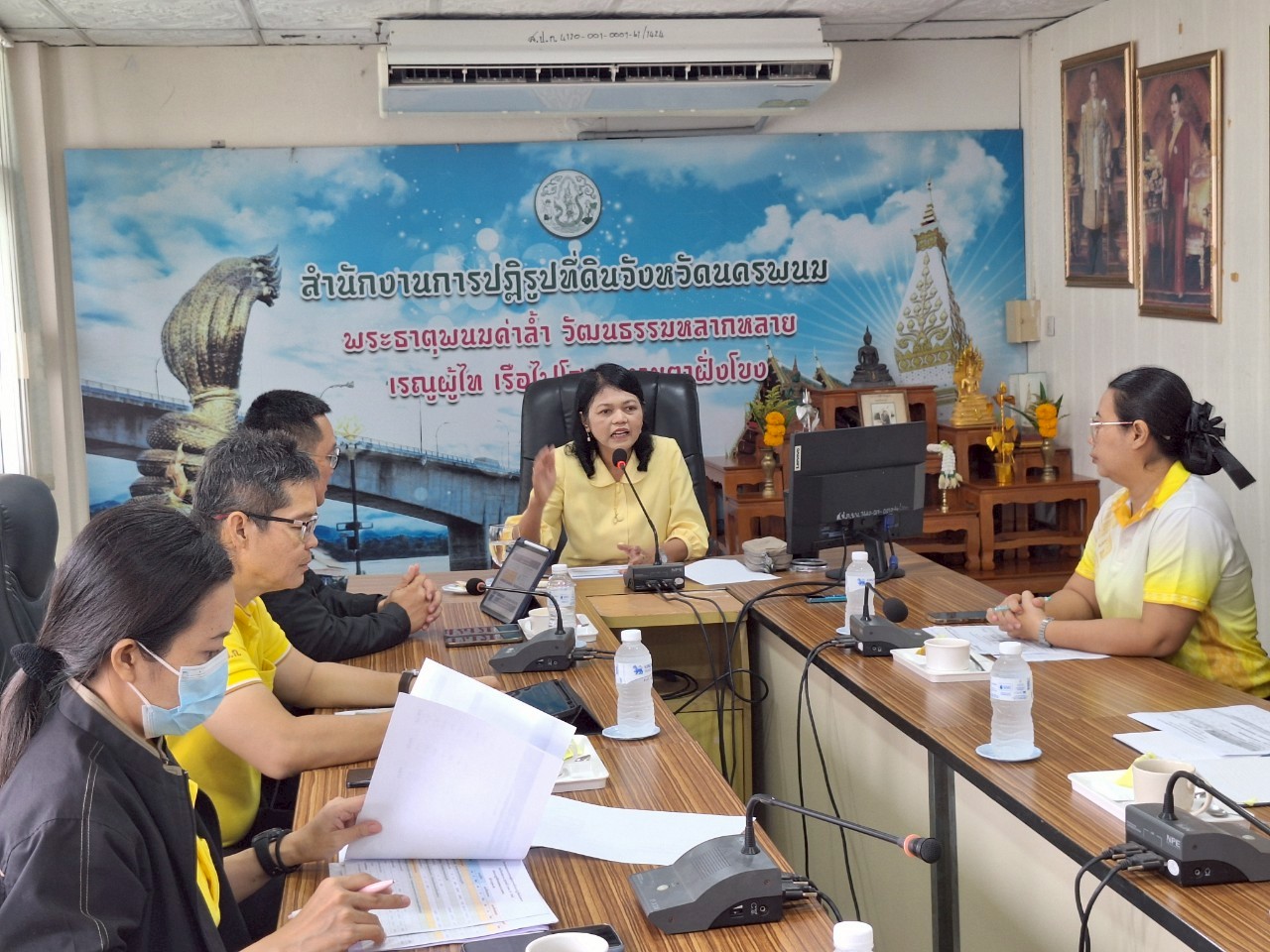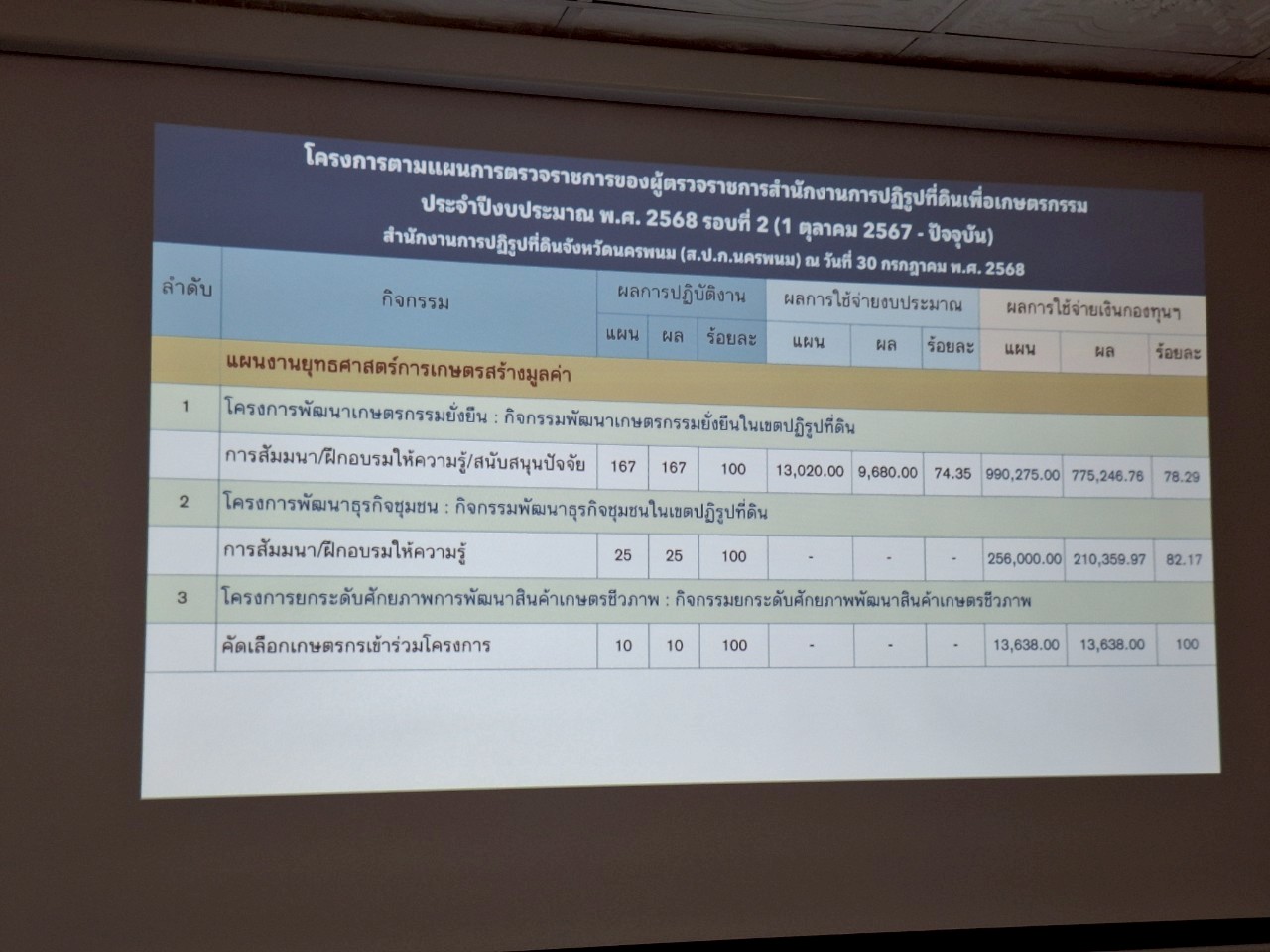 วันพุธที่ 30 กรกฎาคม 2568 เวลา 09.00 น. นางสาวฐิภาพรรณ พึ่งไพฑูรย์ หัวหน้าผู้ตรวจราชการ สำนักงานการปฏิรูปที่ดินเพื่อเกษตรกรรม (ส.ป.ก.) ประชุมตรวจราชการและติดตามความก้าวหน้าผลการดำเนินงานตามแผนการตรวจราชการของผู้ตรวจราชการ ส.ป.ก. ประจำปีงบประมาณ พ.ศ. 2568 รอบที่ 2 เขตตรวจราชการที่ 11 จังหวัดนครพนม โดยมี นายพิษณุ สำรี ปฏิรูปที่ดินจังหวัดนครพนม พร้อมด้วย ผู้อำนวยการกลุ่ม/ฝ่าย ข้าราชการ และเจ้าหน้าที่ เข้าร่วมประชุมพร้อมรายงานผลการดำเนินงานตามแผน/โครงการ การจัดที่ดินทำกินให้แก่เกษตรกร การปรับปรุงหนังสืออนุญาตให้เข้าทำประโยชน์ในเขตปฏิรูปที่ดิน (ส.ป.ก. 4-01) เป็นโฉนดเพื่อการเกษตร การพัฒนาอาชีพเกษตรกร การเบิกจ่ายเงินงบประมาณประจำปี พ.ศ. 2568 การเบิกจ่ายเงินกองทุนฯ และรายงานปัญหาอุปสรรคให้ทราบ ณ ห้องประชุม ส.ป.ก.นครพนม