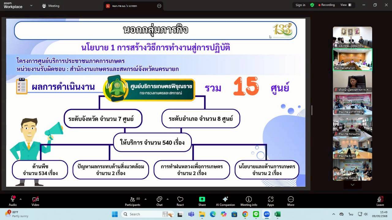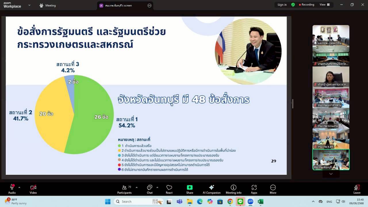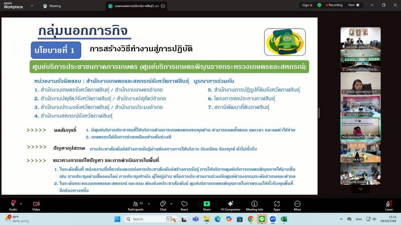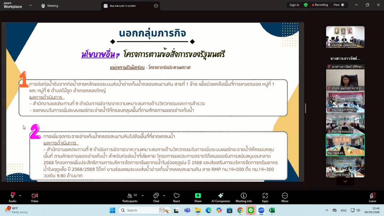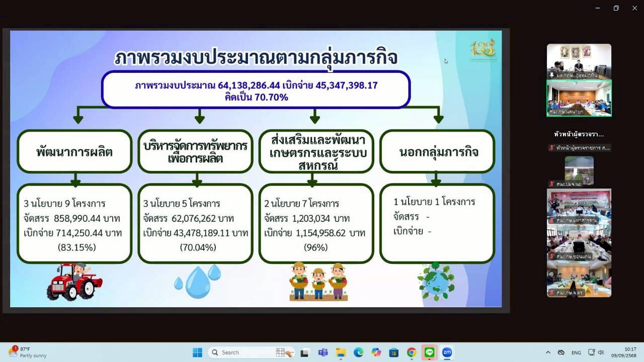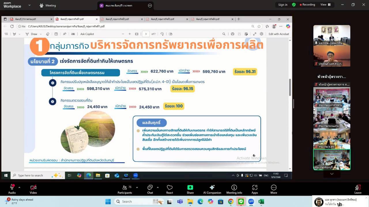 วันอังคารที่ 9 กันยายน 2568 เวลา 09.00 น. นางสาวฐิภาพรรณ พึ่งไพฑูรย์ หัวหน้าผู้ตรวจราชการ ส.ป.ก. ในฐานะผู้ช่วยผู้ตรวจราชการกระทรวงเกษตรและสหกรณ์ เข้าร่วมการประชุมติดตามและสรุปผลการตรวจราชการของผู้ตรวจราชการกระทรวงเกษตรและสหกรณ์ เขตตรวจราชการที่ 9 และ 12 โดยมี นายกฤษ อุตตมะเวทิน ผู้ตรวจราชการกระทรวงเกษตรและสหกรณ์ เป็นประธาน รวมถึงมีผู้ช่วยผู้ตรวจราชการกระทรวงเกษตรและสหกรณ์ (ระดับกรม) หัวหน้าส่วนราชการในสังกัดกระทรวงเกษตรและสหกรณ์ระดับจังหวัด และเจ้าหน้าที่ผู้เกี่ยวข้อง เข้าร่วมประชุมฯ ผ่านการประชุมออนไลน์ ระบบ Zoom Meeting