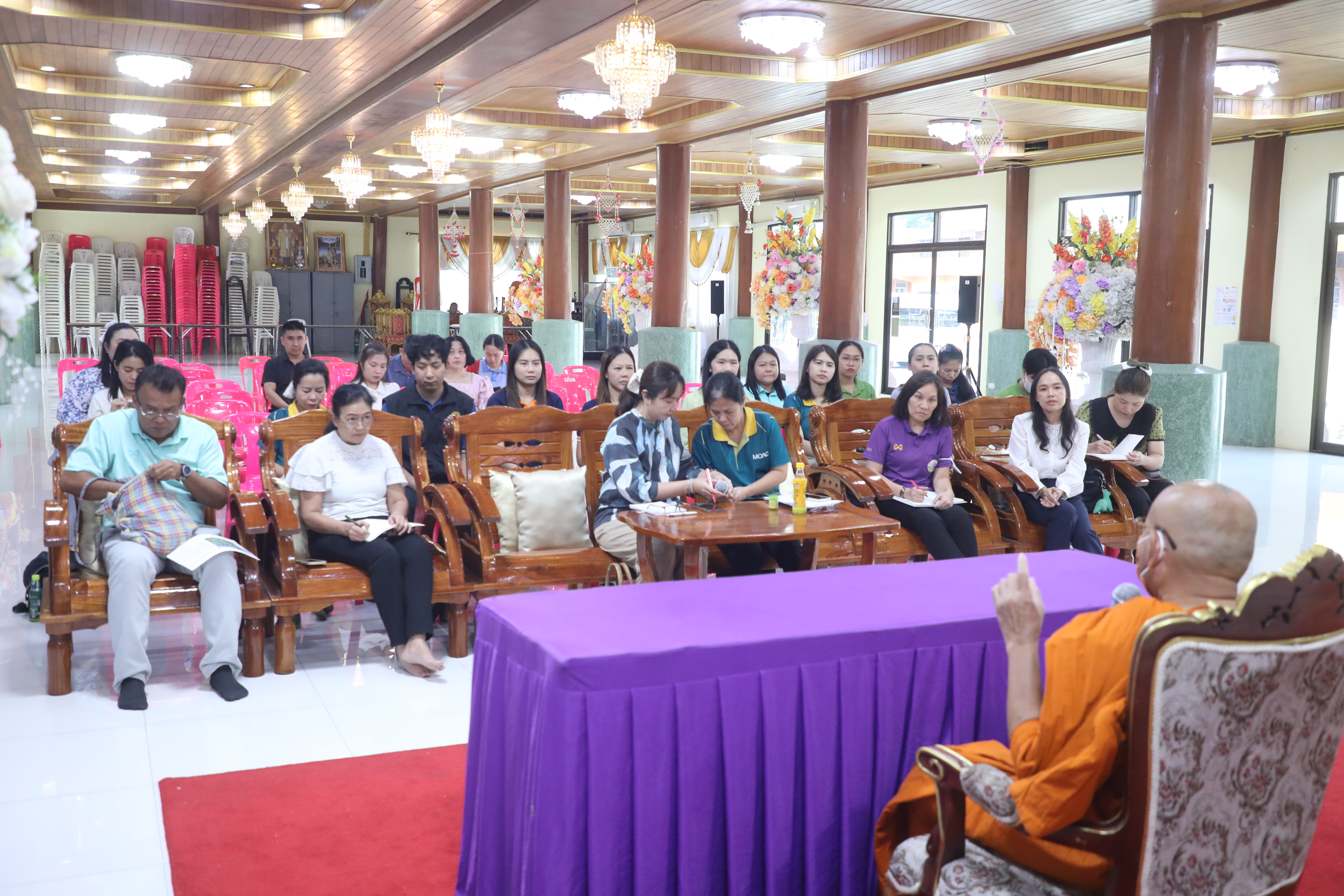 ร่วมประชุมกับ ท่านพระครูศรัทธาประชารักษ์ เจ้าอาวาสวัดปุรณาวาส พร้อมลงพื้นที่เพื่อเตรียมความพร้อม ณ วัดปุรณาวาส ในด้านต่าง ๆ อาทิ สถานที่จัดพิธี ลำดับพิธี ระบบถ่ายทอดสัญญาณภาพสด สถานที่จอดรถ การจัดทำโรงทาน รวมถึงการประสานในด้านอื่น ๆ ที่จะมีขึ้นในวันพิธี