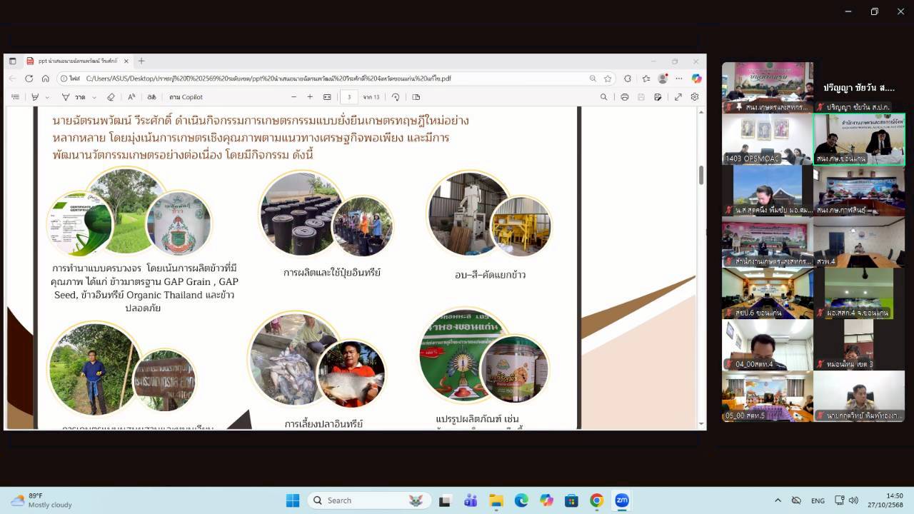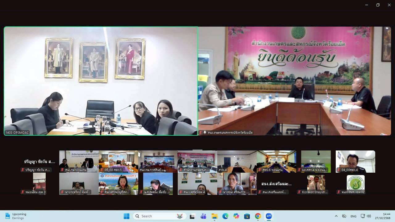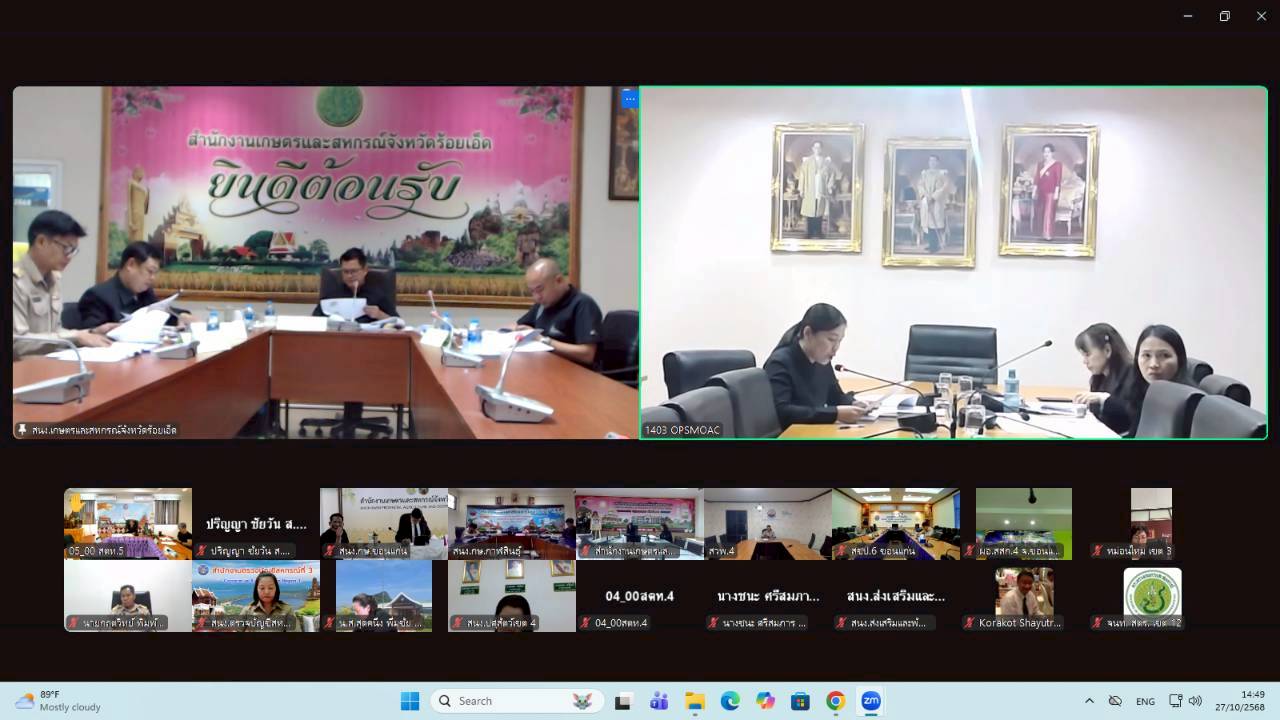 เมื่อวันจันทร์ที่ 27 ตุลาคม 2568 เวลา 13.30 น. นายกฤตวิทย์ พิมพ์ทองงาม ผู้ตรวจราชการกรม สำนักงานการปฏิรูปที่ดินเพื่อเกษตรกรรม เข้าร่วมประชุมคณะทำงานสรรหาปราชญ์เกษตรของแผ่นดินระดับเขต ประจำปี 2569 เขตตรวจราชการที่ 12 (จังหวัดขอนแก่น จังหวัดร้อยเอ็ด จังหวัดมหาสารคาม จังหวัดกาฬสินธุ์) ผ่านระบบประชุมทางไกลออนไลน์ โดย Application Zoom Meeting โดยมี นายศรัญญู พูลลาภ ผู้ตรวจราชการกระทรวงเกษตรและสหกรณ์ เป็นประธานการประชุมฯ พร้อมด้วยผู้แทนหน่วยงานในสังกัดกระทรวงเกษตรและสหกรณ์ที่เกี่ยวข้อง ในฐานะคณะทำงานสรรหาปราชญ์เกษตรของแผ่นดินระดับเขต เพื่อร่วมพิจารณาคัดเลือกบุคคลที่สมควรได้รับการแต่งตั้งเชิดชูเกียรติเป็นปราชญ์เกษตรของแผ่นดินที่ผ่านการพิจารณาจากคณะทำงานสรรหาปราชญ์เกษตรของแผ่นดินระดับจังหวัด ตามหลักเกณฑ์และวิธีการสรรหาปราชญ์เกษตรของแผ่นดิน เพื่อนำเสนอต่อคณะอนุกรรมการสรรหาปราชญ์เกษตรของแผ่นดิน และดำเนินการตามกระบวนการสรรหาที่กำหนดไว้ต่อไป
