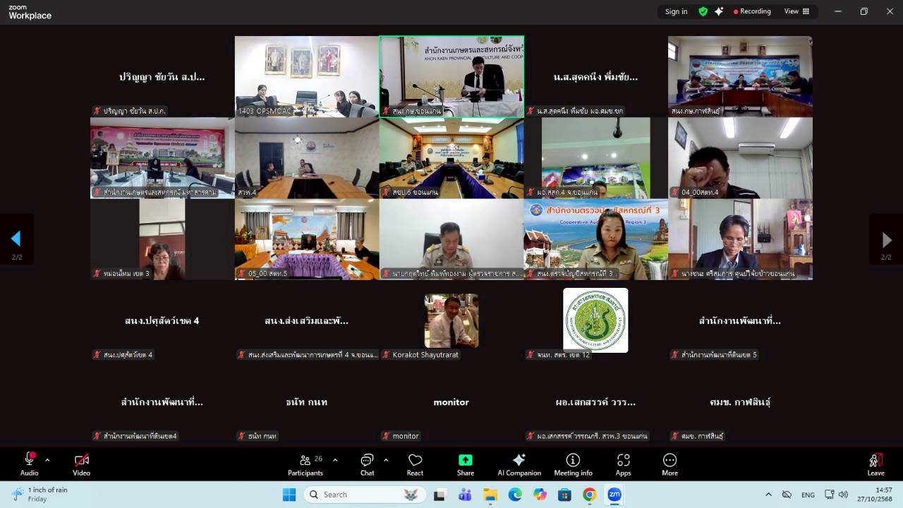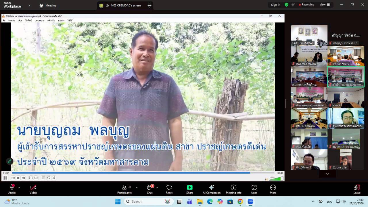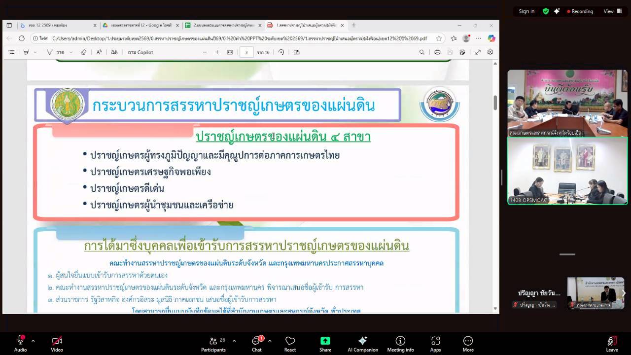 ผู้ตรวจราชการ ส.ป.ก.ร่วมประชุมคณะทำงานสรรหาปราชญ์เกษตรของแผ่นดินระดับเขต ประจำปี 2569 เขตตรวจราชการที่ 12 ผ่านระบบประชุมทางไกลออนไลน์ โดย Application Zoom Meeting