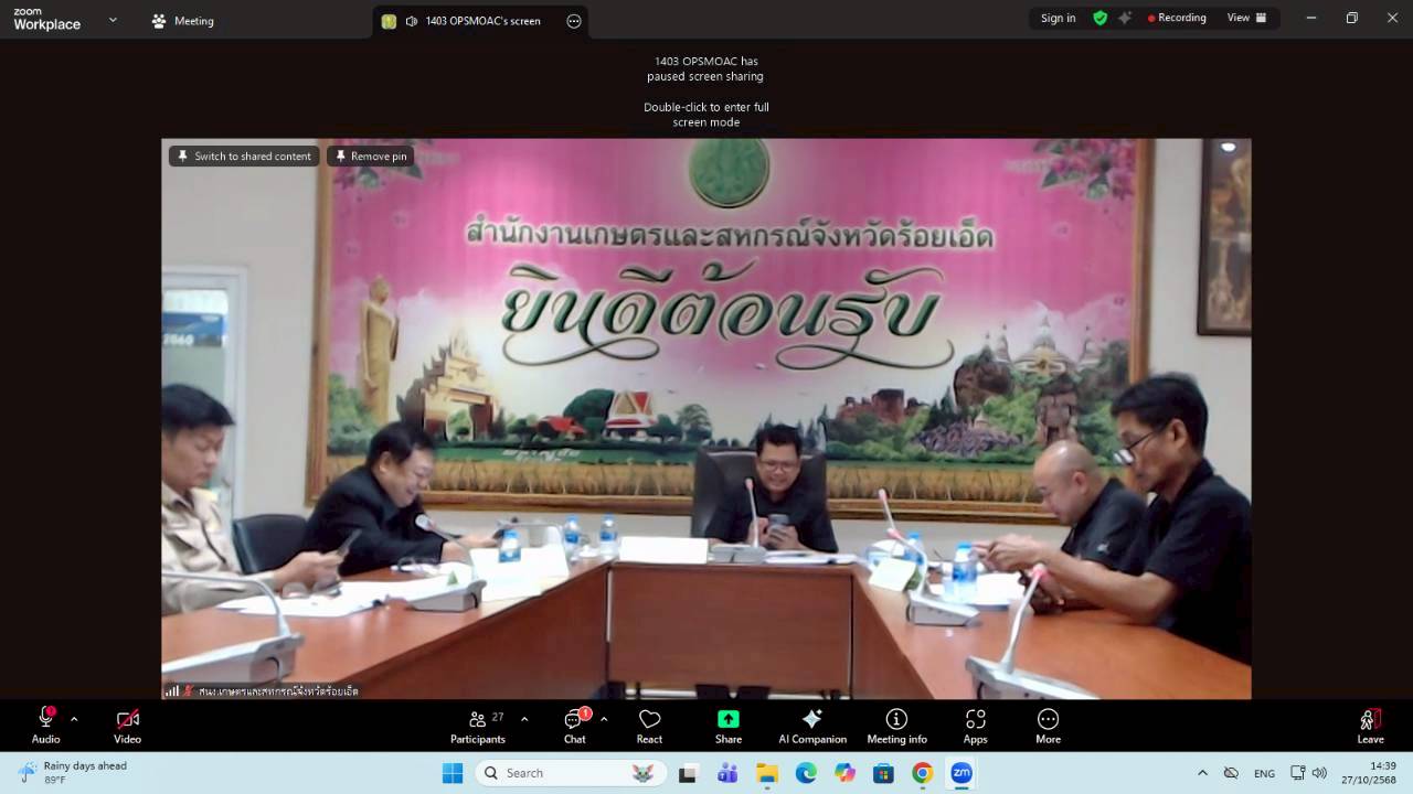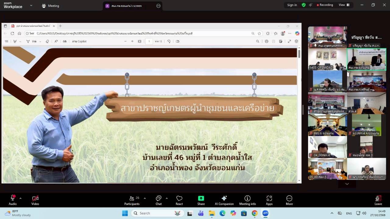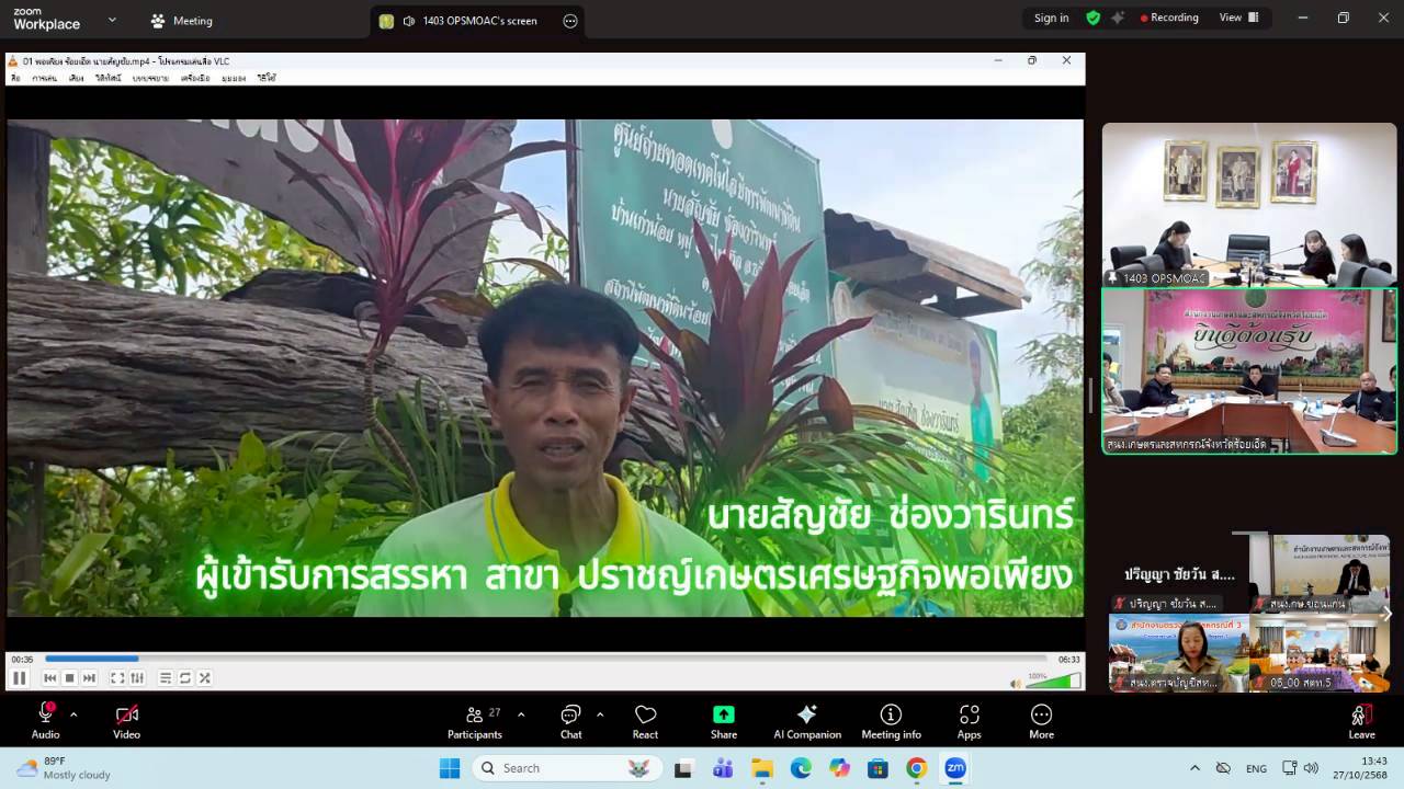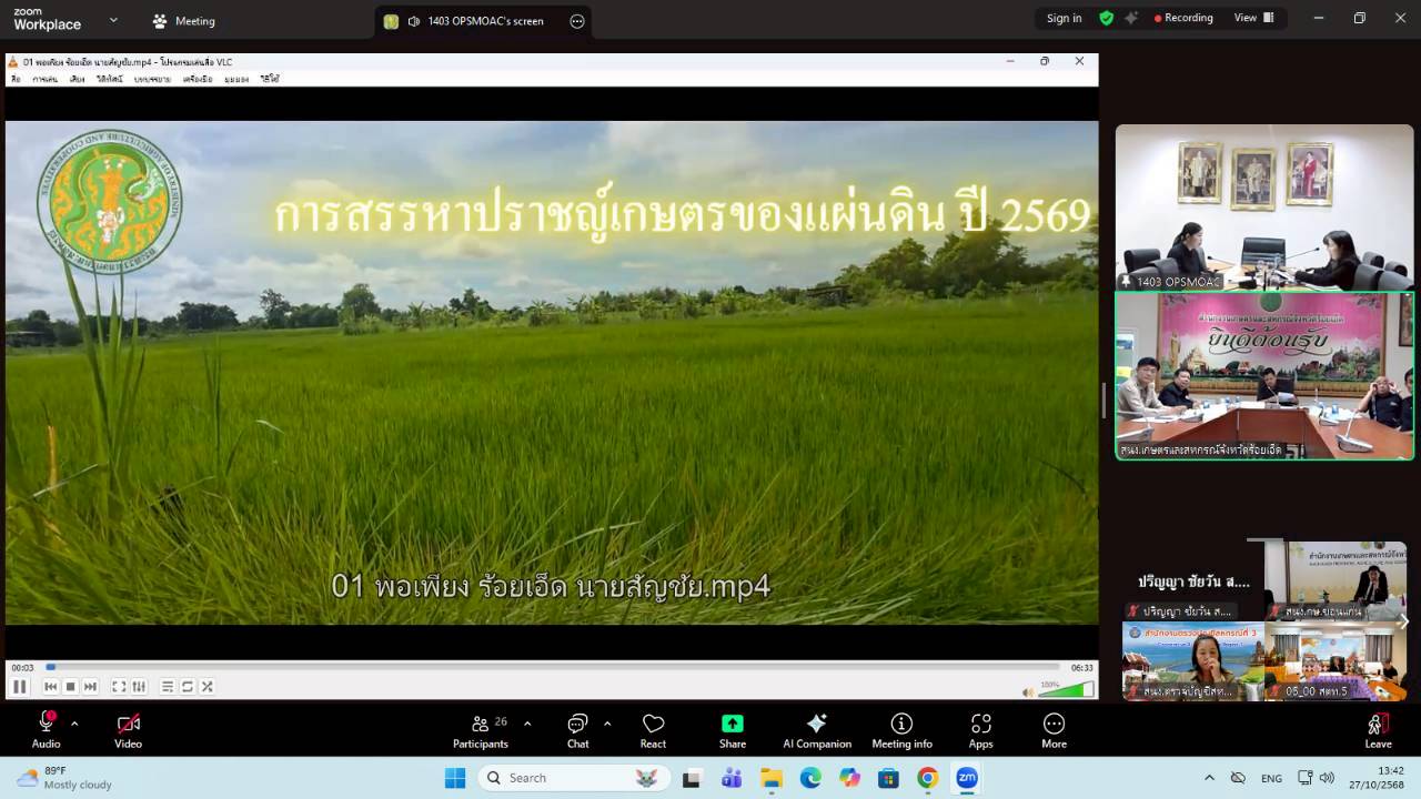 ผู้ตรวจราชการ ส.ป.ก.ร่วมประชุมคณะทำงานสรรหาปราชญ์เกษตรของแผ่นดินระดับเขต ประจำปี 2569 เขตตรวจราชการที่ 12 ผ่านระบบประชุมทางไกลออนไลน์ โดย Application Zoom Meeting