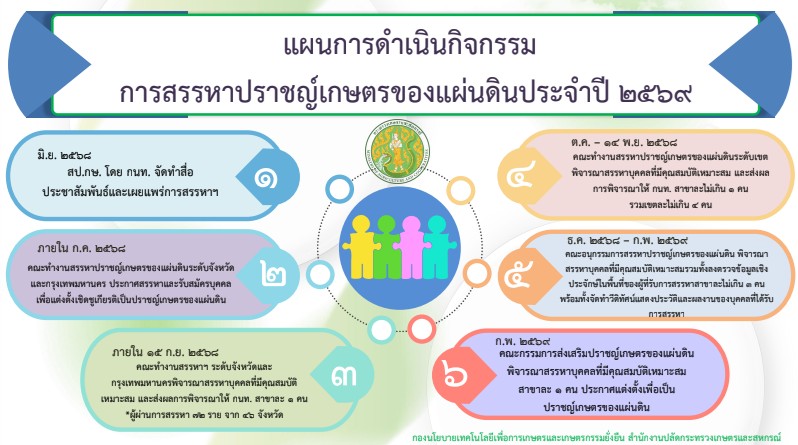 วันที่ 7 พฤศจิกายน 2568 เวลา 09.30น. – 16.00 น.นายกฤษณะ ดีปาละ หัวหน้าผู้ตรวจราชการกรม สำนักงานการปฏิรูปที่ดินเพื่อเกษตรกรรม กำกับดูแลเขตตรวจราชการที่ 15, 16, 17และ 18 ได้เข้าร่วมประชุมคณะทำงานสรรหาปราชญ์เกษตรของแผ่นดินระดับเขต ประจำปี 2569 เขตตรวจราชการที่ 15 (จังหวัดเชียงใหม่ จังหวัดแม่ฮ่องสอน จังหวัดลำปาง และจังหวัดลำพูน) และเขตตรวจราชการที่ 16 (จังหวัดเชียงราย จังหวัดน่าน จังหวัดพะเยา และจังหวัดแพร่) ในฐานะผู้ช่วยผู้ตรวจราชการกระทรวงเกษตรและสหกรณ์และคณะทำงานสรรหาฯ โดยมี นายพรเทพ ศรีธนาธร ผู้ตรวจราชการกระทรวงเกษตรและสหกรณ์ กำกับดูแลเขตตรวจราชการที่ 15, และ16 เป็นประธานการประชุมฯ พร้อมด้วย ผู้แทนหน่วยงานในสังกัดกระทรวงเกษตรและสหกรณ์ที่เกี่ยวข้องกับคณะทำงานสรรหาฯ เพื่อร่วมพิจารณาคัดเลือกบุคคลที่สมควรได้รับการแต่งตั้งเป็นปราชญ์เกษตรของแผ่นดินระดับเขต ซึ่งเป็นผู้มีคุณความดี มีความรู้ ความสามารถ และประสบการณ์ สมควรได้รับการยกย่องและผ่านเกณฑ์การพิจารณาของคณะทำงานสรรหาฯ ในระดับจังหวัด ตามหลักเกณฑ์และวิธีการสรรหาปราชญ์เกษตรของแผ่นดิน เพื่อนำเสนอต่อคณะอนุกรรมการสรรหาปราชญ์เกษตรของแผ่นดินพิจารณาดำเนินการตามกระบวนการสรรหาที่กำหนดไว้ต่อไป และเป็นการประชุมผ่านระบบออนไลน์ (Zoom Meeting)โดยในที่การประชุมฯ ได้พิจารณามีมติเสนอสรรหาปราชญ์เกษตรของแผ่นดินระดับเขต ประจำปี 2569 ดังนี้