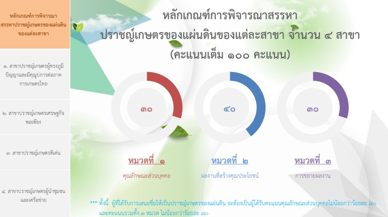 2.2 สาขาปราชญ์เกษตรดีเด่น เขตที่ 16 ไม่มีผู้ผ่านการสรรหาตามหลักเกณฑ์ที่กำหนด