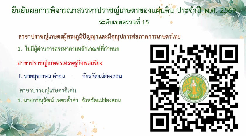 1.1 สาขาปราชญ์เกษตรเศรษฐกิจพอเพียง เขตที่ 15 ไม่มีผู้ผ่านการสรรหาตามหลักเกณฑ์ที่กำหนด