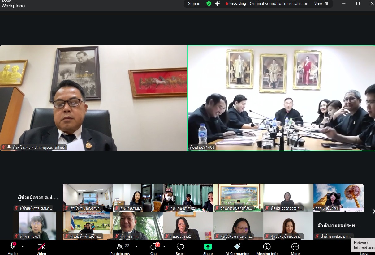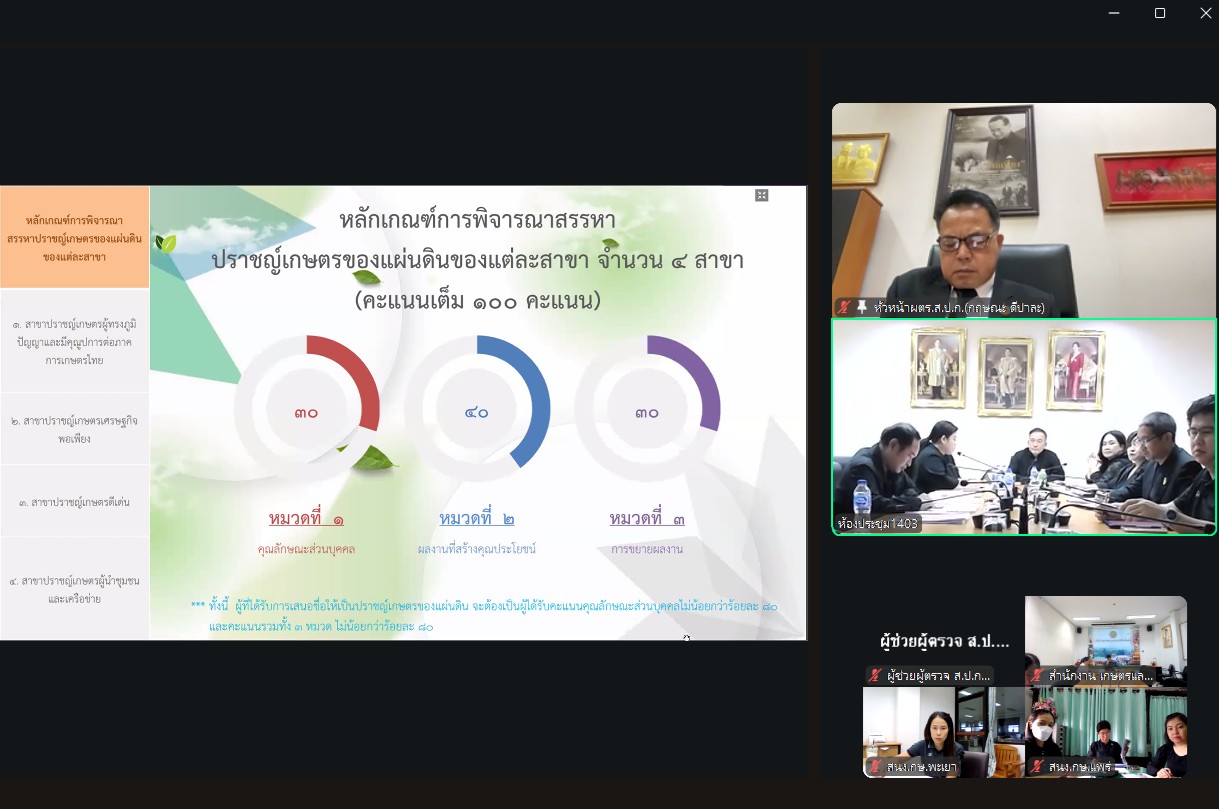 หัวหน้าผู้ตรวจราชการกรม ส.ป.ก.ร่วมประชุมคณะทำงานสรรหาปราชญ์เกษตรของแผ่นดินระดับเขต ประจำปี 2569 เขตตรวจราชการที่ 15 และ16 ผ่านระบบประชุมทางไกลออนไลน์ โดย Application Zoom Meeting
