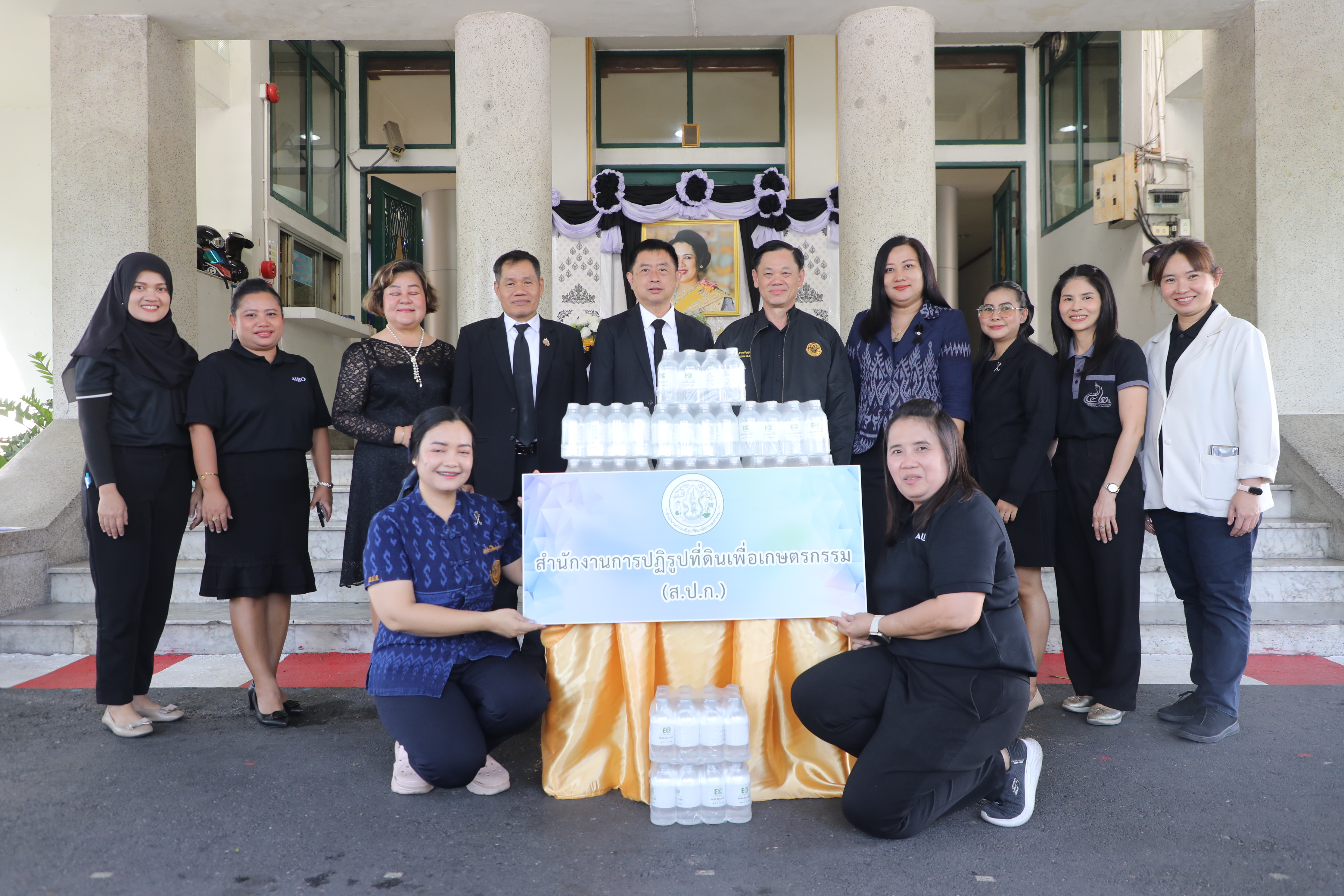ส.ป.ก. รับมอบน้ำดื่ม จากบริษัท พลังงานบริสุทธิ์ จำกัด (มหาชน) เพื่อเป็นธารน้ำใจช่วยเหลือผู้ประสบอุทกภัยภาคใต้