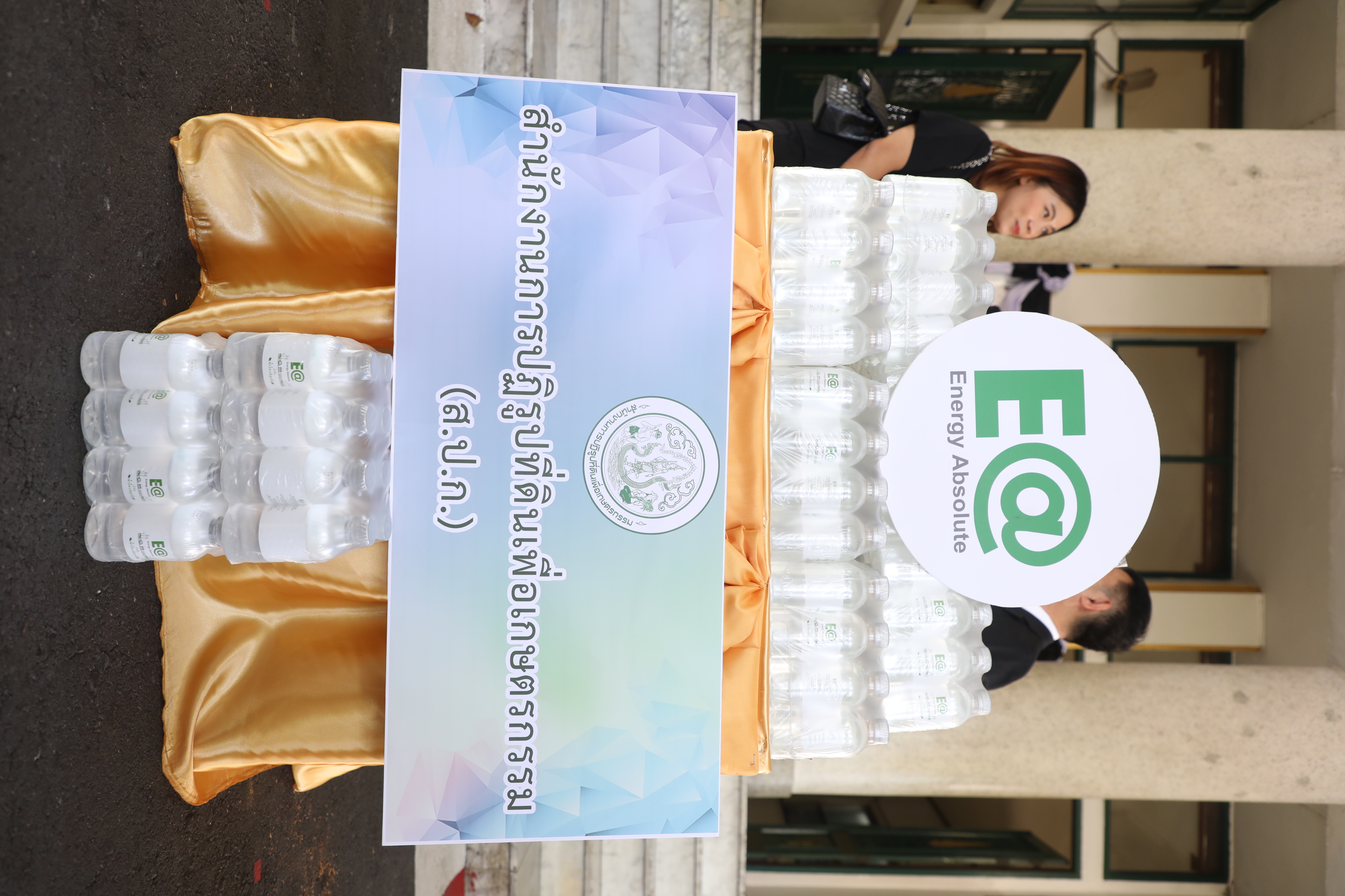 โดยบริจาค น้ำดื่ม ตรา Energy Absolute จำนวน 120 แพ็ค แพ็คละ 12 ขวด รวมเป็น 1,440 ขวด