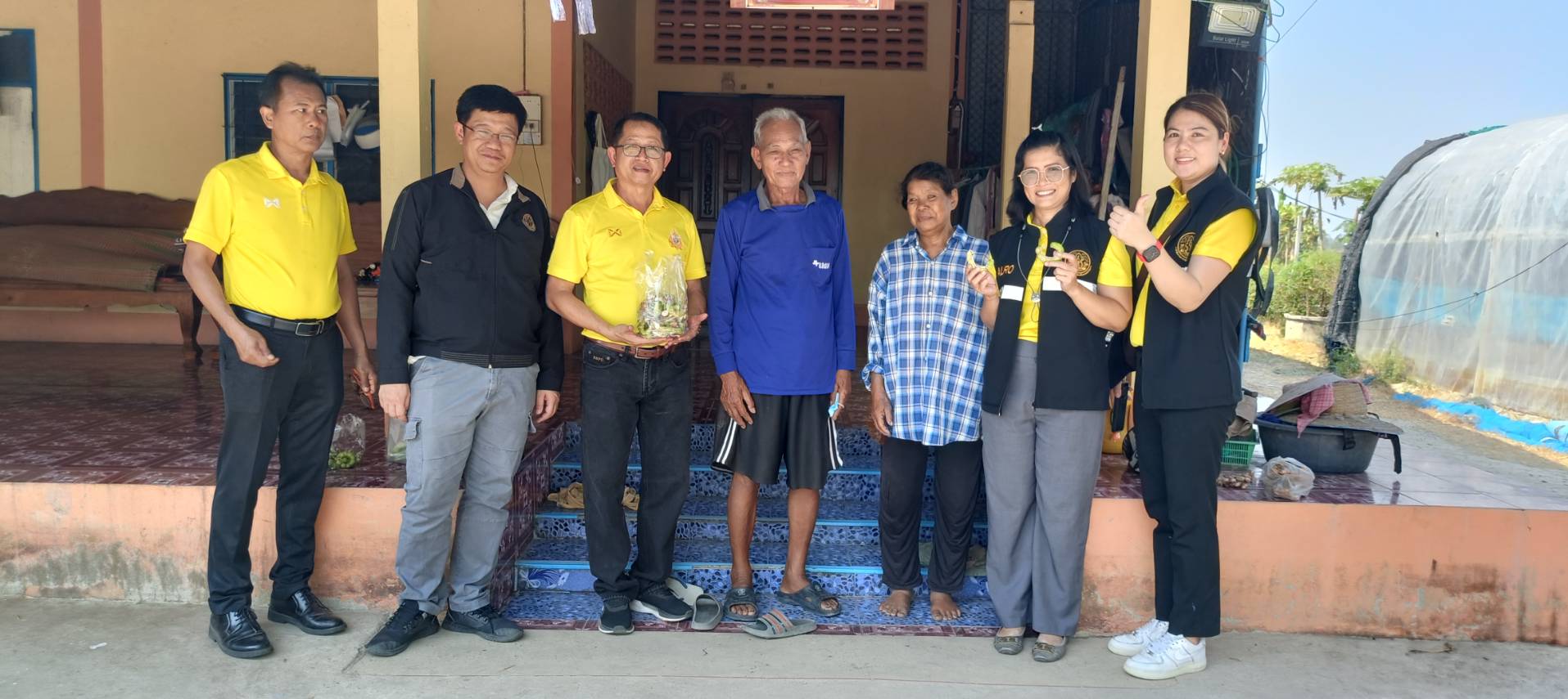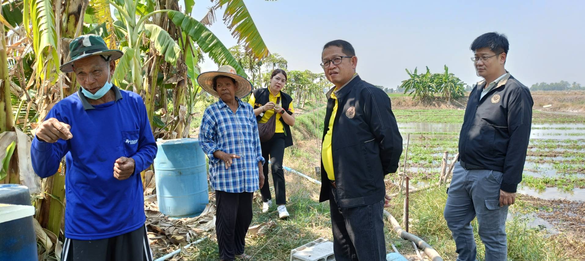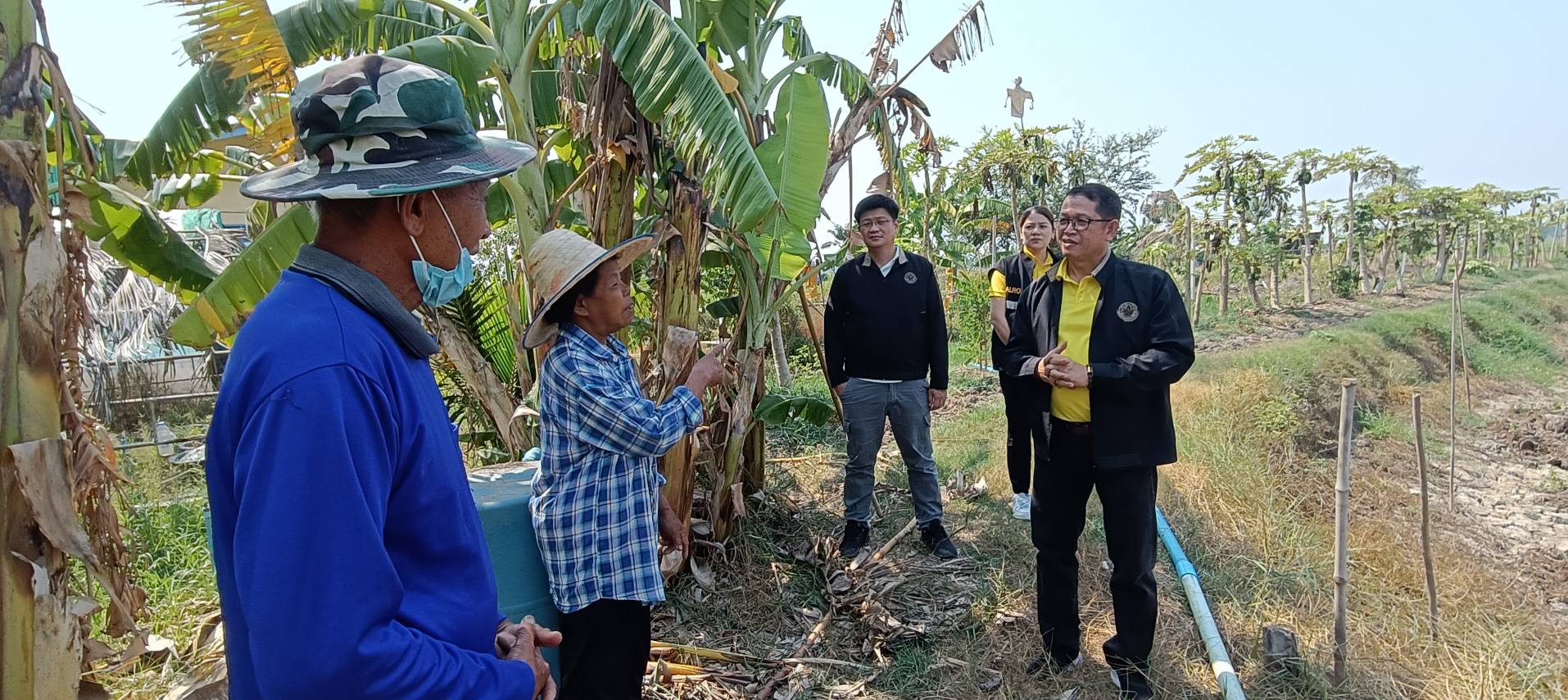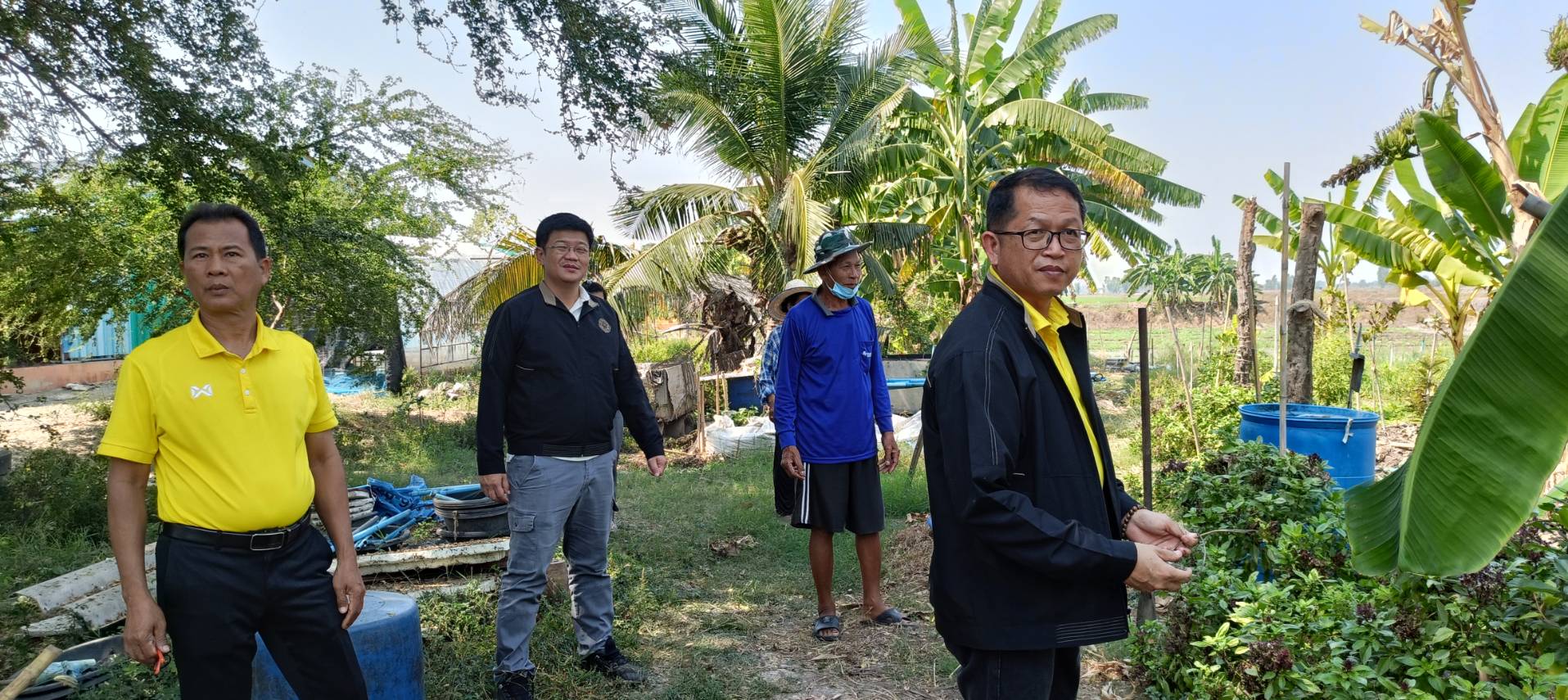 เวลา 13.30 น. ผู้ตรวจราชการกรม ปฏิรูปที่ดินจังหวัดนครปฐม ข้าราชการและเจ้าหน้าที่ ส.ป.ก.นครปฐม ร่วมลงพื้นที่ ตรวจเยี่ยมให้กำลังใจเกษตรกรในเขตปฏิรูปที่ดิน แปลงที่ดินของนายเป้า รื่นนุสาน ที่ตั้งที่ดินอยู่บ้านเลขที่ 164 หมู่ 6 ตำบลหินมูล อำเภอบางเลน จังหวัดนครปฐม ปัจจุบันนายเป้าฯ ได้ใบรับรอง GAP เกษตรปลอดภัย เข้าร่วมโครงการส่งเสริมและพัฒนาเกษตรชีวภาพ กิจกรรมส่งเสริมและขยายพันธุ์พืชในเขตปฏิรูปที่ดิน ปีงบประมาณ 2568 โครงการพัฒนาและส่งเสริมเกษตรกรปราดเปรี่อง (Smart Farmer) ปี 2568 ในแปลงได้ทำการเกษตรปลูกพืชผสมผสาน ผักปลอดภัย อาทิเช่น กล้วยน้ำหว้า ตะไคร้ กระเพราแดง มะละกอ กวางตุ้ง ดอกอัญชัน เผือกหอม โหระพา มะพร้าว มะขามเทศ เป็นต้น สามารถสร้างรายได้ให้นายเป้าฯ และครอบครัวได้เป็นอย่างดี