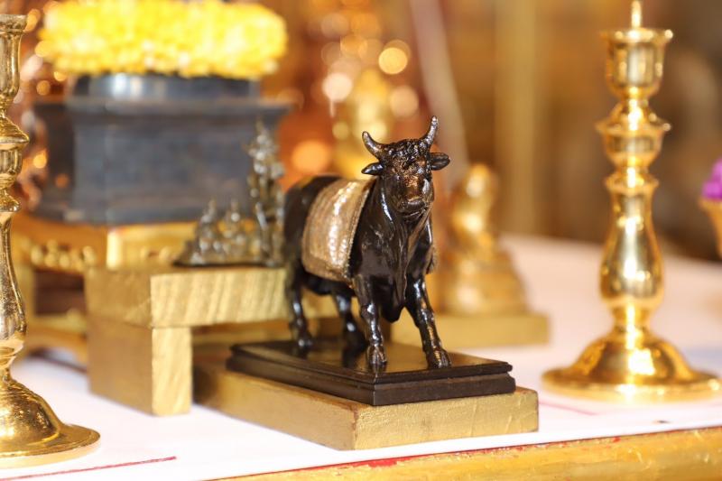 พระโคเลือกกิน "ถั่วเขียว" หรือ "งา" พยากรณ์ว่า ผลาหาร ภักษาหาร จะอุดมสมบูรณ์ดี