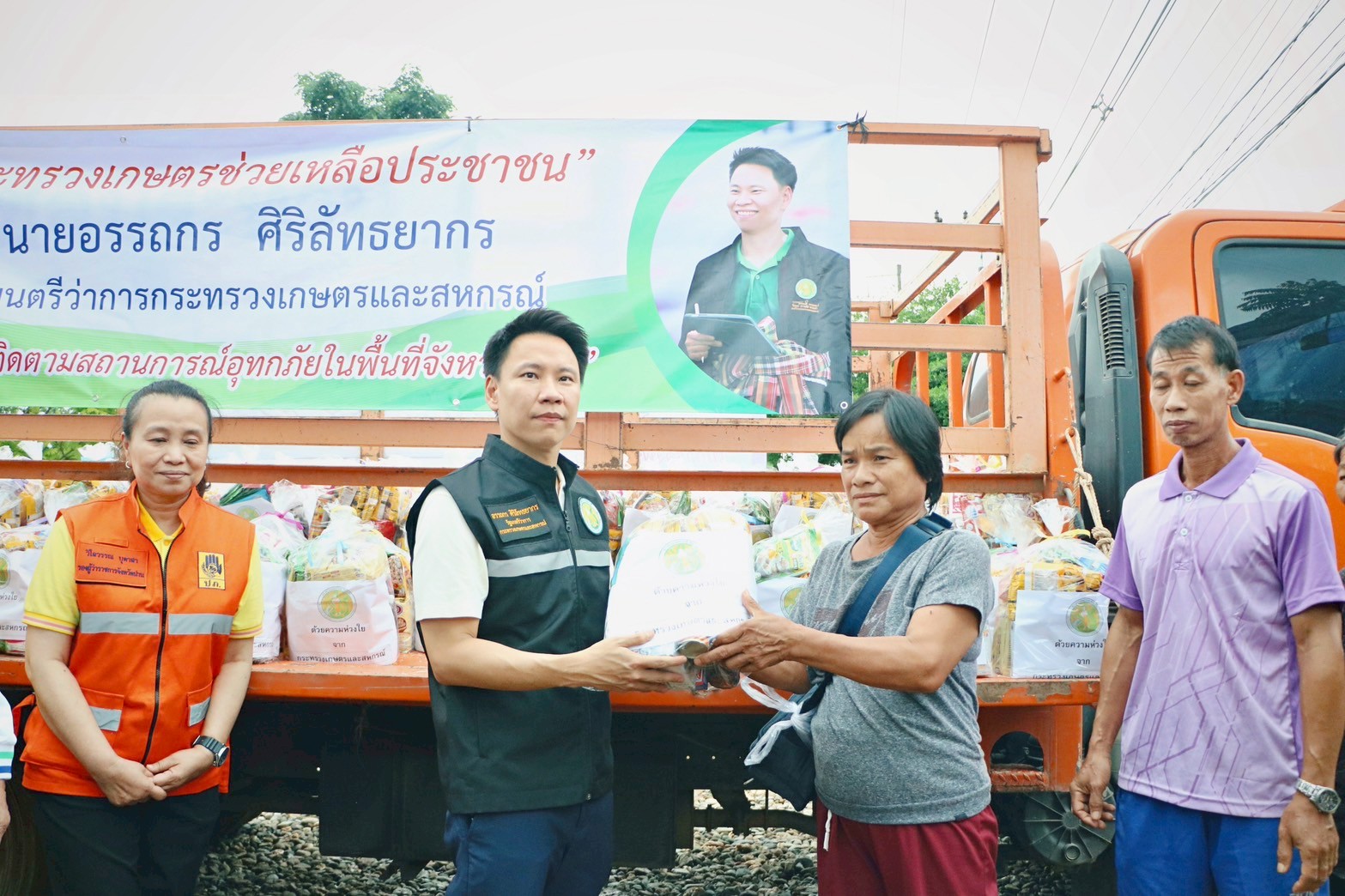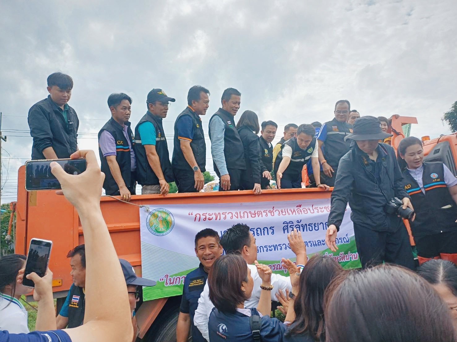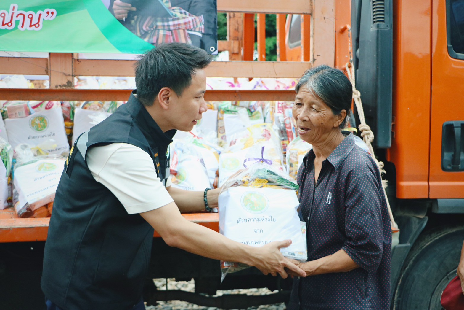 จากนั้น รมว.กษ. และคณะได้เดินทางไปยังพื้นที่หมวดทางหลวงท่าวังผา อ.ท่าวังผา จ.น่าน พร้อมมอบถุงยังชีพ อาหาร และน้ำดื่ม ให้แก่เกษตรกรและผู้ประสบอุทกภัย เพื่อบรรเทาความเดือดร้อน พร้อมทั้งรับฟังปัญหาและให้กำลังใจ