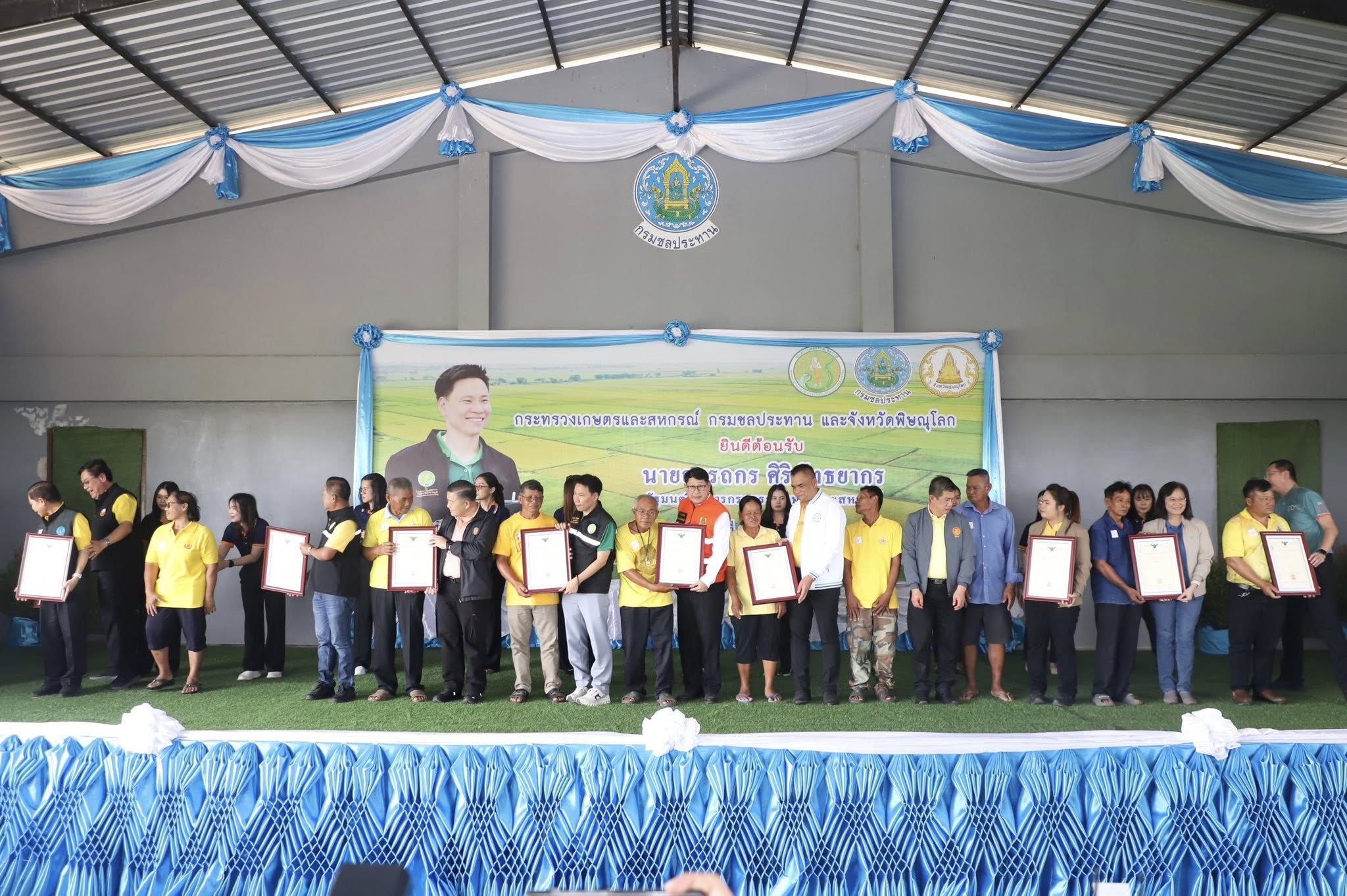นายเศรษฐเกียรติ กระจ่างวงษ์ เลขาธิการสำนักงานการปฏิรูปที่ดินเพื่อเกษตรกรรม (ส.ป.ก) มอบหมายให้ นายปรีชา ลิ้มถวิล รองเลขาธิการ ส.ป.ก. พร้อมด้วย นางสิริมา พิมพ์ทองงาม ปฏิรูปที่ดินจังหวัดพิษณุโลก นางศิริพร อภิเดช ปฏิรูปที่ดินจังหวัดอุทัยธานี นายรุ่งโรจน์ สถาพร ปฏิรูปที่ดินจังหวัดเพชรบูรณ์ นายศุภชัย สงชู ปฏิรูปที่ดินจังหวัดพิจิตร นายศรัณย์วิทย์ เกษศรี ปฏิรูปที่ดินจังหวัดสุโขทัย นายศิลา ละเภท ปฏิรูปที่ดินจังหวัดกำแพงเพชร ร่วมคณะ รัฐมนตรีว่าการกระทรวงเกษตรและสหกรณ์ (รมว.กษ.) นายอรรถกร ศิริลัทธยากร ลงพื้นที่ตรวจติดตามสถานการณ์น้ำในพื้นที่ รับฟังการบรรยายการบริหารจัดการน้ำในพื้นที่โครงการบางระกำโมเดล พบปะเกษตรกรรับฟังปัญหาด้านการเกษตรในพื้นที่ พร้อมมอบปัจจัยการผลิต ณ ประตูระบายน้ำคลองบางแก้ว ต.บางระกำ อ.บางระกำ จ.พิษณุโลก ในวันที่ 3 สิงหาคม 2568