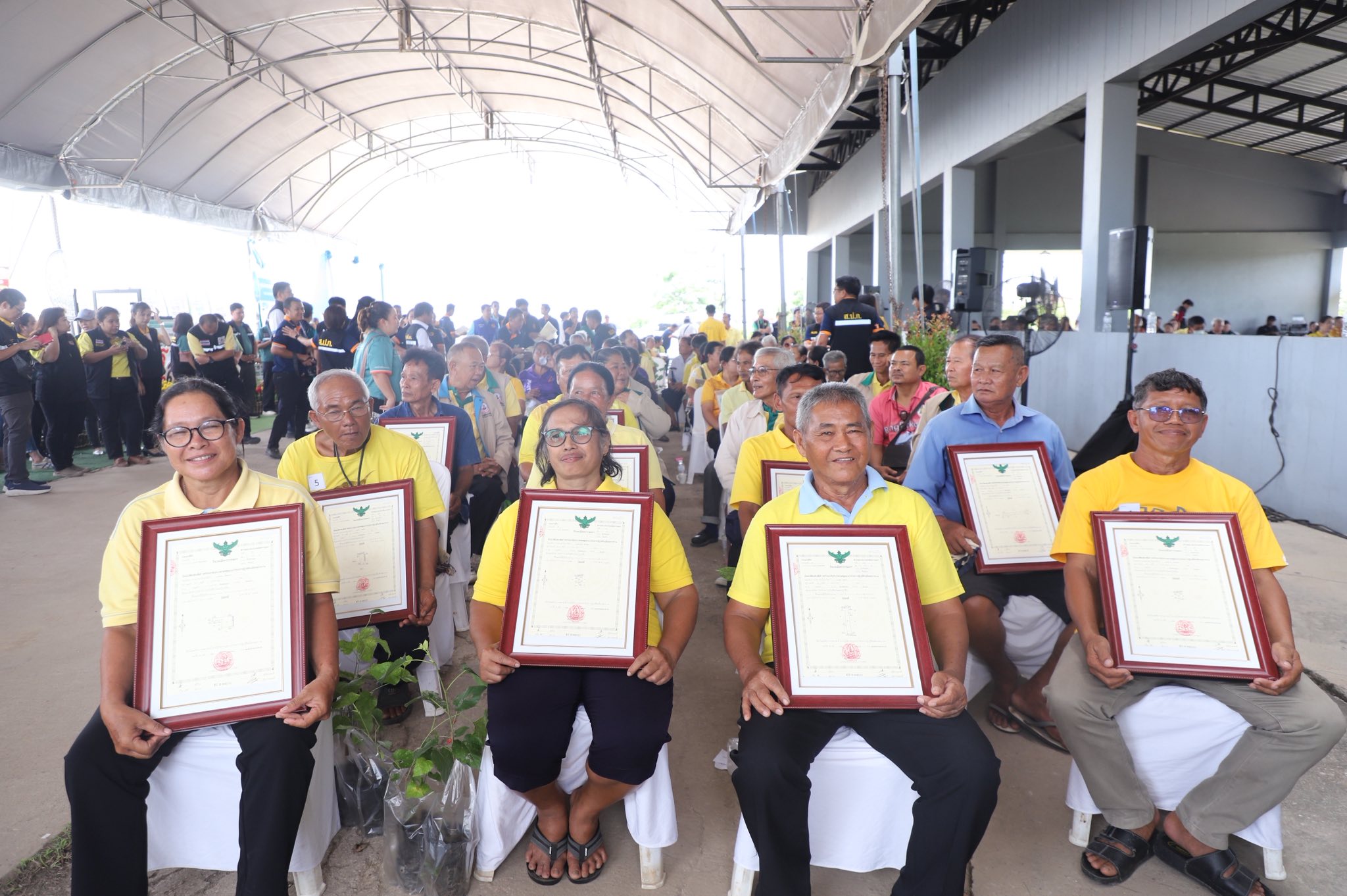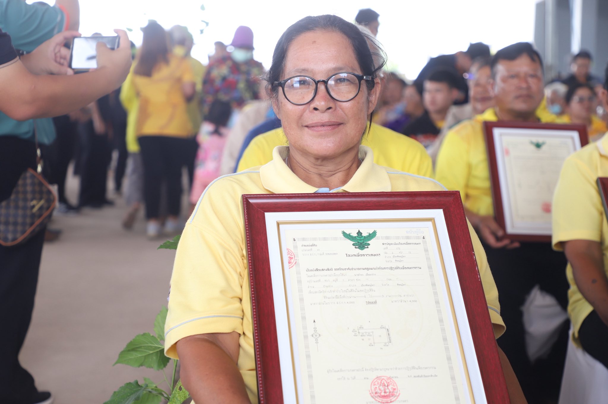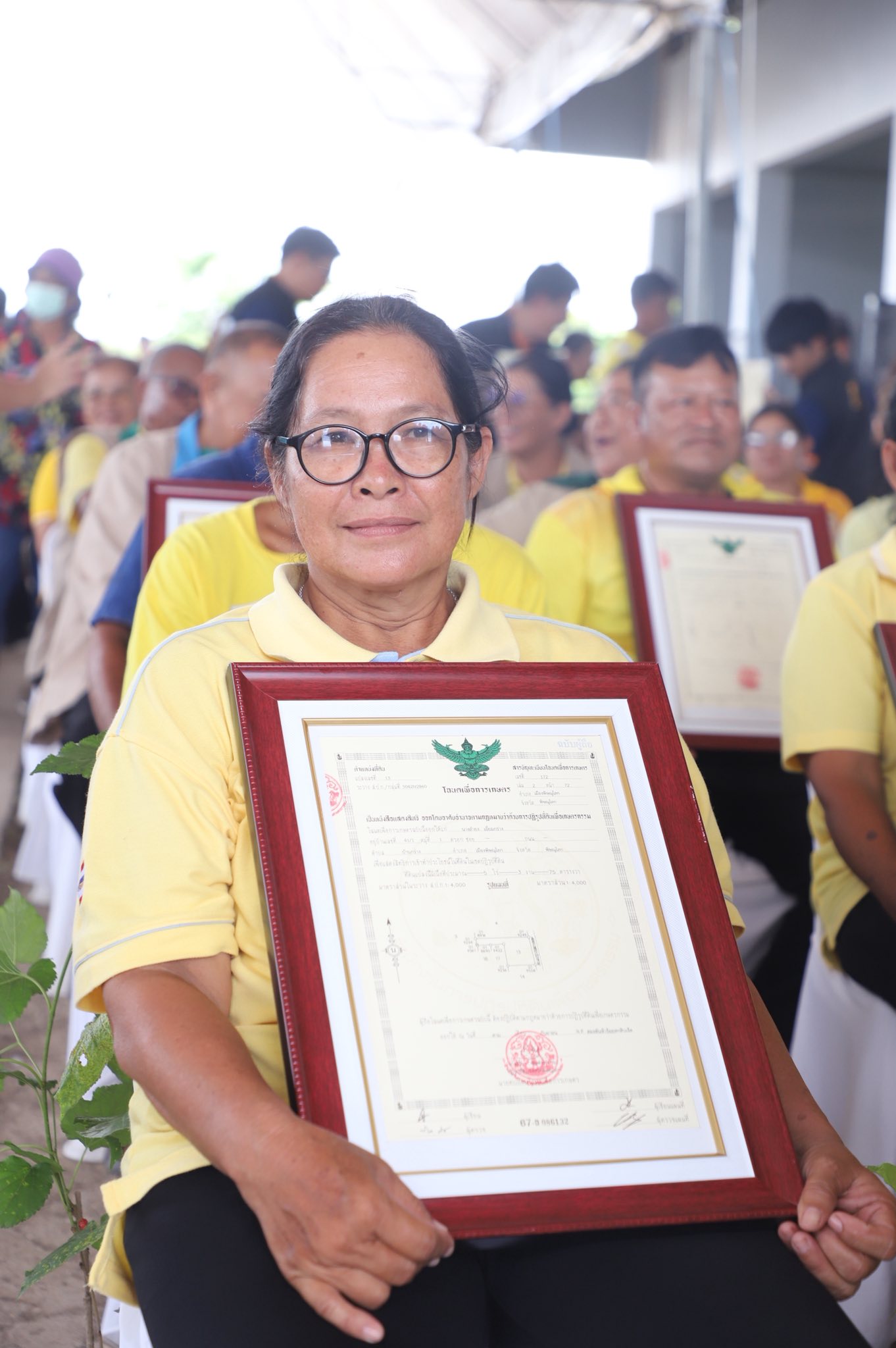 ในโอกาสนี้ รมว.กษ. เป็นประธานในพิธีมอบโฉนดเพื่อการเกษตร จำนวน 50 ราย 59 แปลง เนื้อที่ประมาณ 553-3-6 ไร่ ประกอบไปด้วยเกษตรกรในเขตปฏิรูปที่ดิน อำเภอเมืองพิษณุโลก อำเภอวังทอง สำหรับ ส.ป.ก.พิษณุโลก ได้ดำเนินการออกโฉนดเพื่อการเกษตรไปแล้ว จำนวน 5,626 ราย 7,353 แปลง เนื้อที่ประมาณ 81,598-3-63 ไร่