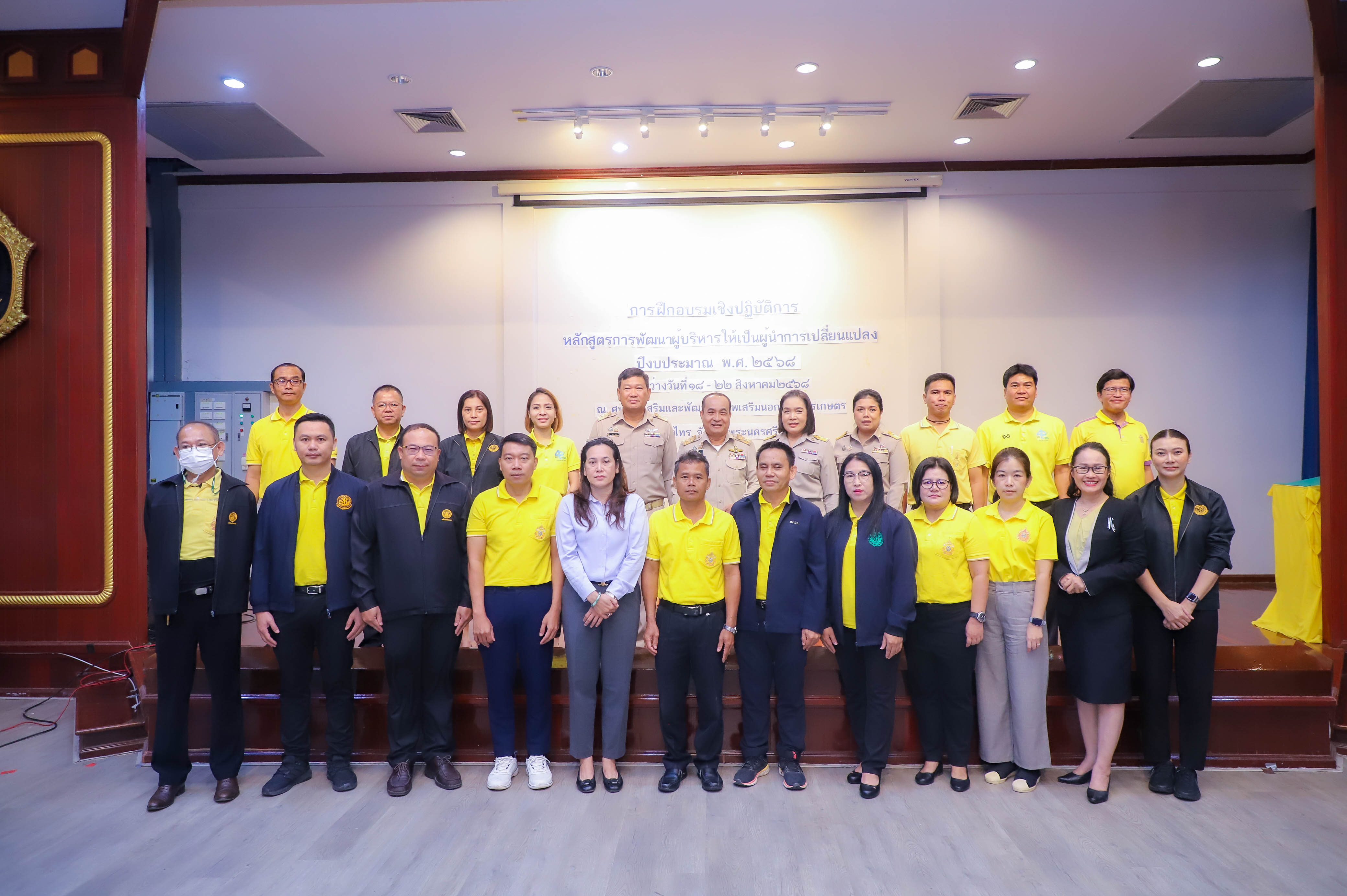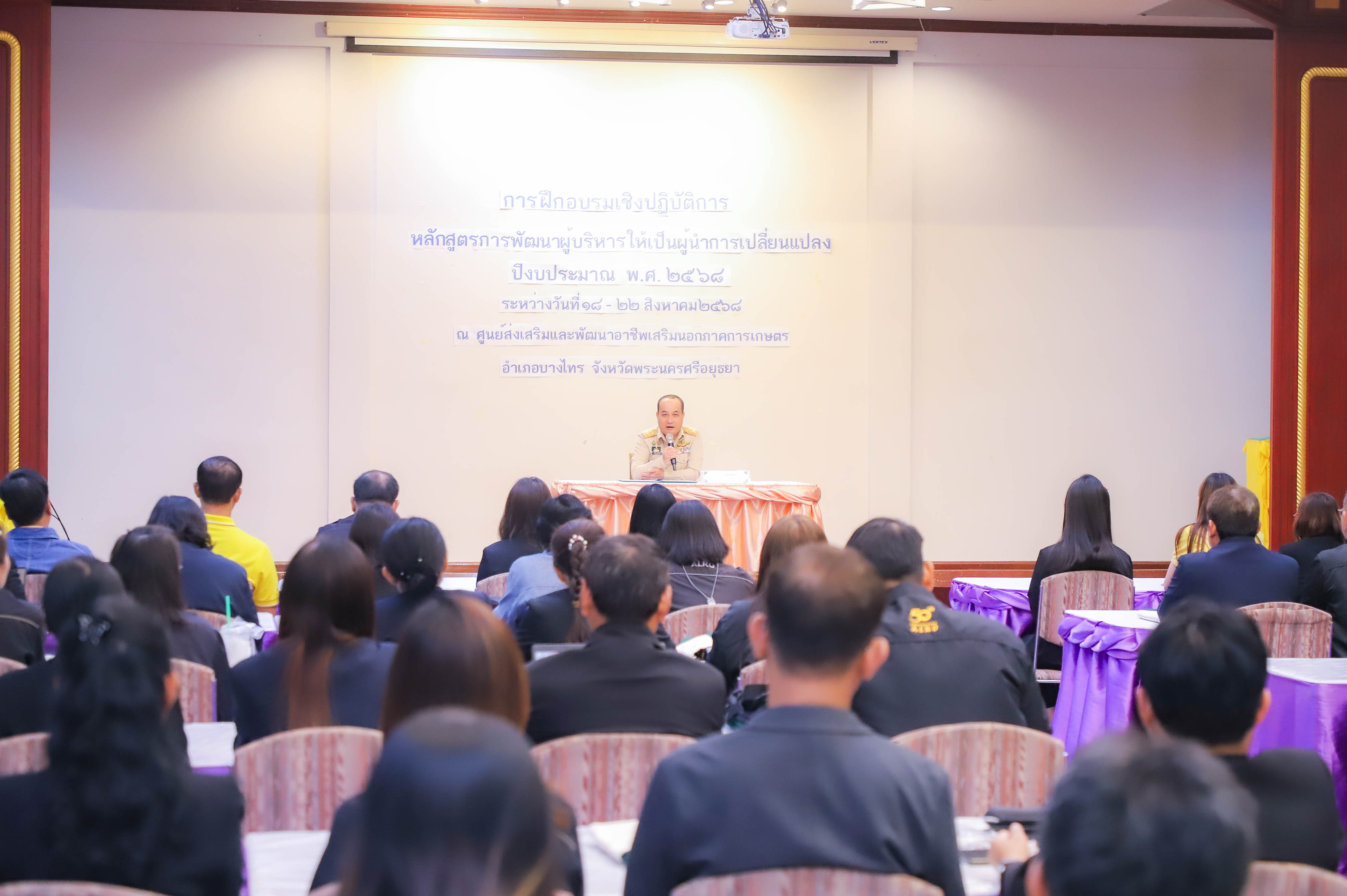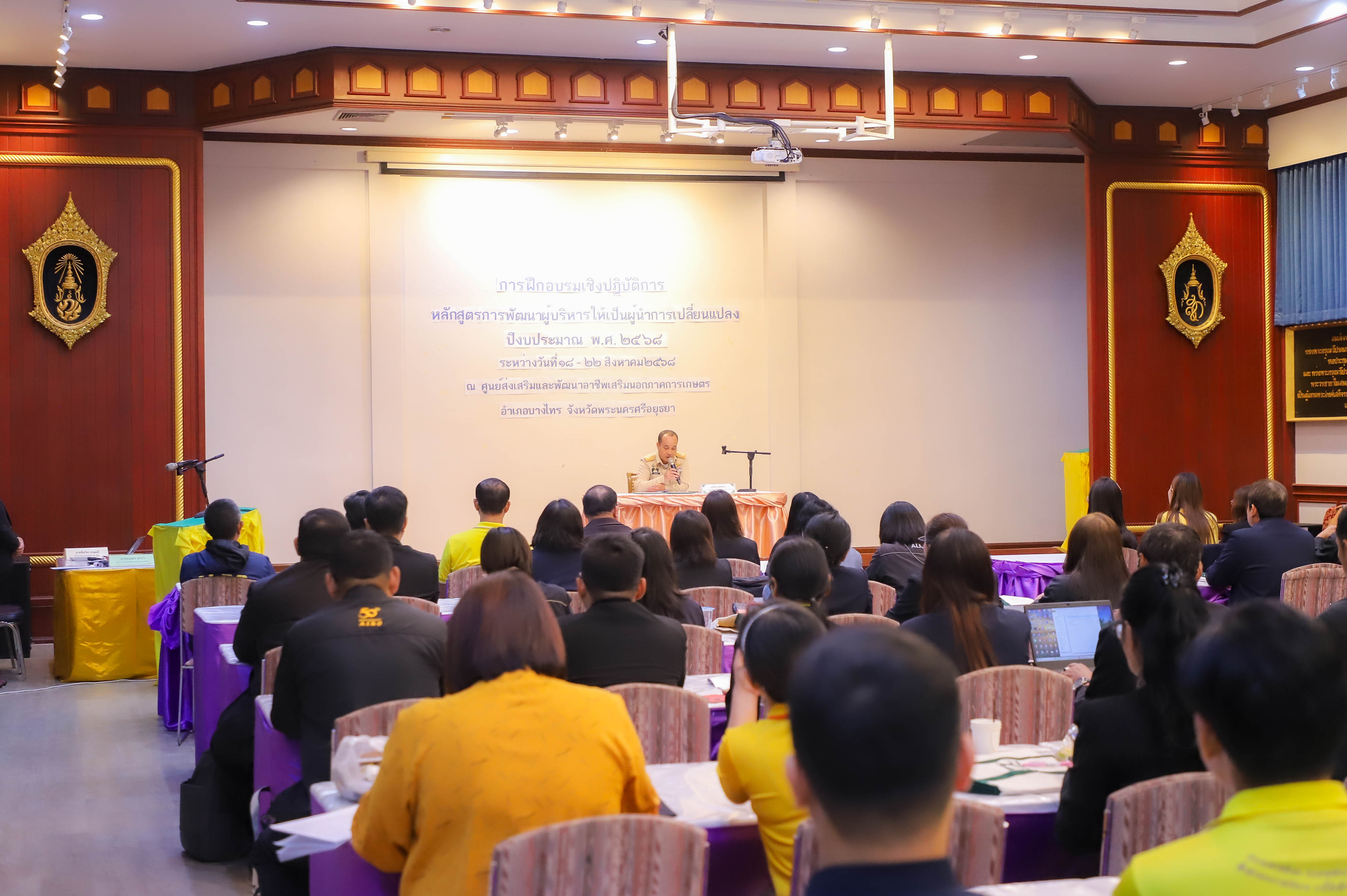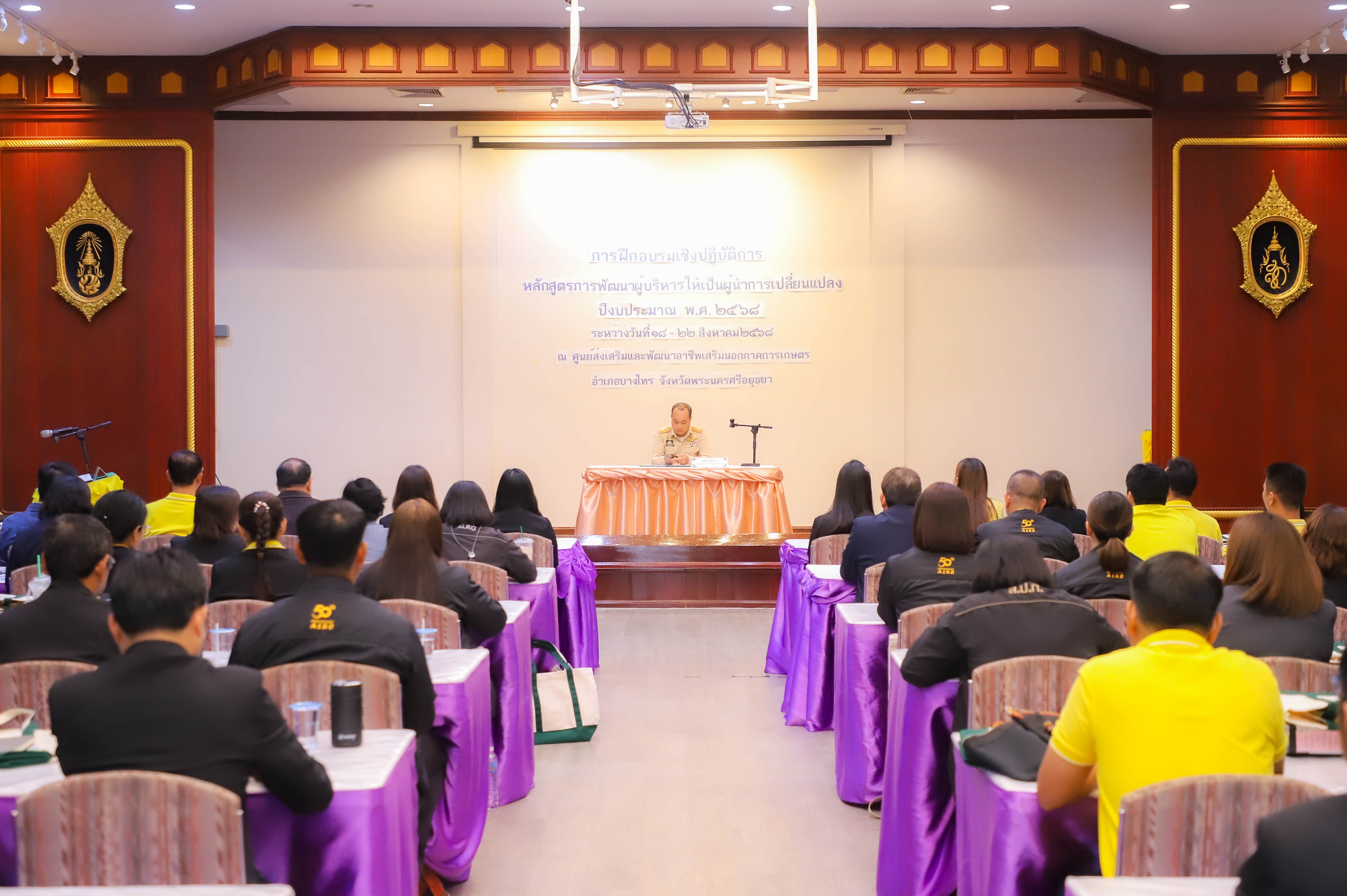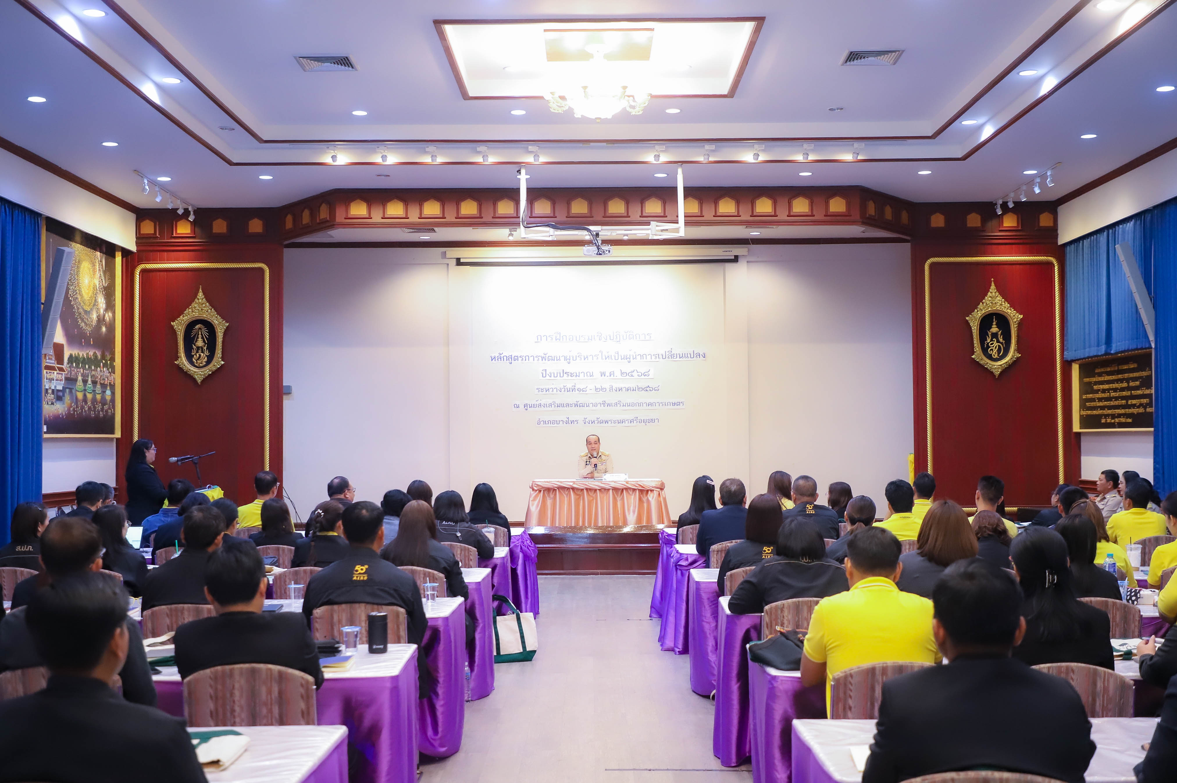 นายเศรษฐเกียรติ กระจ่างวงษ์ เลขาธิการสำนักงานการปฏิรูปที่ดินเพื่อเกษตรกรรม (ส.ป.ก.) มอบหมายให้ นายสุรชัย ยุทธชนะ รองเลขาธิการ ส.ป.ก. เป็นประธานในพิธีเปิดโครงการฝึกอบรมเชิงปฏิบัติการ หลักสูตร การพัฒนาผู้บริหารให้เป็นผู้นำการเปลี่ยนแปลง ปีงบประมาณ พ.ศ. 2568 พร้อมด้วย นางสาวพจนันท์ กองมาก ปฏิรูปที่ดินจังหวัดพระนครศรีอยุธยา นางสาวสิริมา แจ้งกระจ่าง ผู้อำนวยการศูนย์ส่งเสริมและพัฒนาอาชีพเสริมนอกภาคการเกษตร โดยมี นายธเนตร พารา ผู้อำนวยการสำนักพัฒนาและถ่ายทอดเทคโนโลยี กล่าวรายงานวัตถุประสงค์โครงการ เพื่อให้ผู้เข้ารับการฝึกอบรมเชิงปฏิบัติการ ได้เข้าใจบทบาทในการบริหารจัดการงานในฐานะผู้นำ ได้รับการพัฒนาความรู้และพัฒนาทักษะในการเป็นผู้นำการเปลี่ยนแปลงในการพัฒนาตนและพัฒนาคนแบบ Soft Skill ณ ศูนย์ส่งเสริมและพัฒนาอาชีพเสริมนอกภาคการเกษตร (ศพส.) อำเภอบางไทร จังหวัดพระนครศรีอยุธยา ในวันที่ 18 สิงหาคม 2568