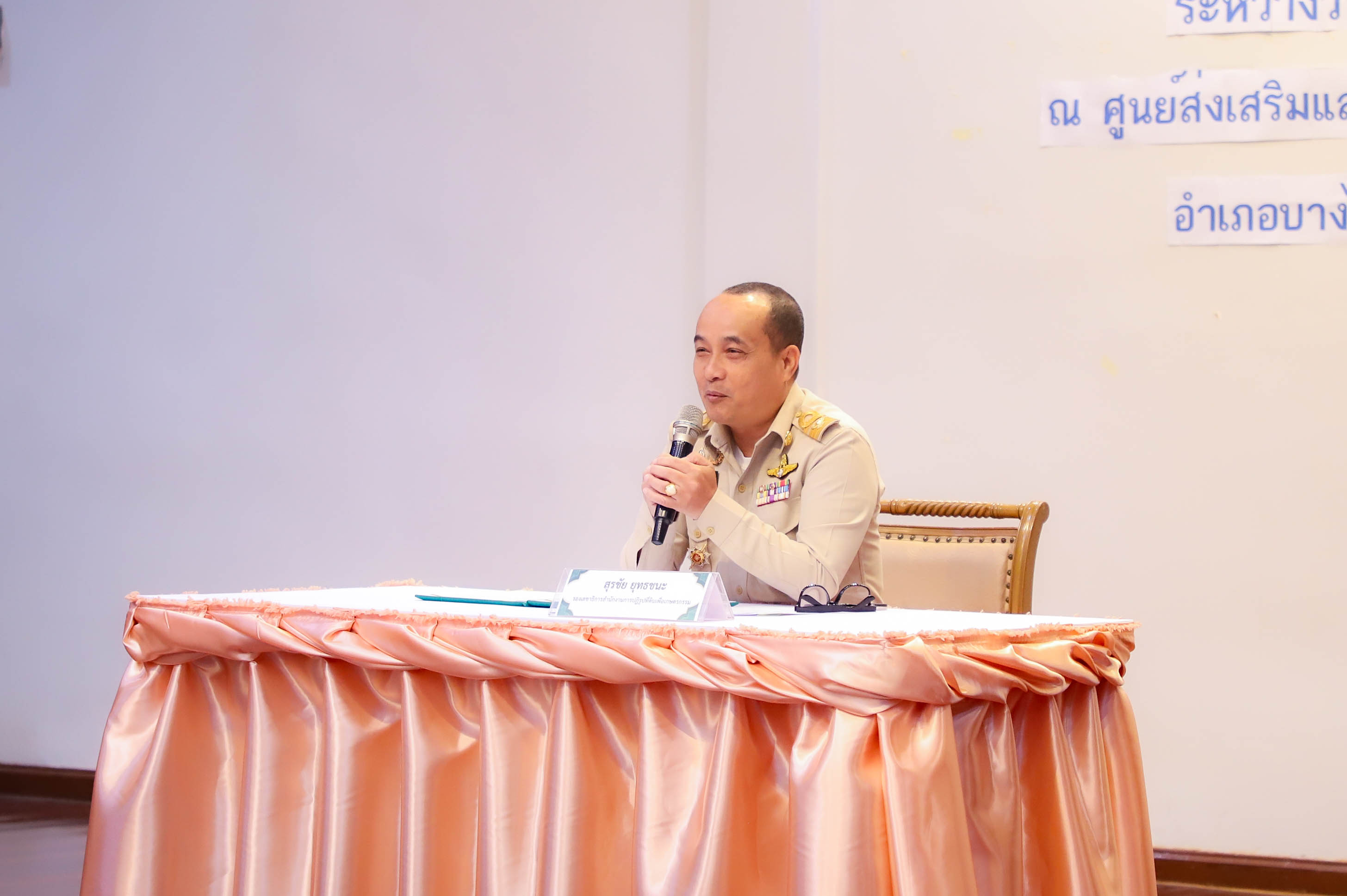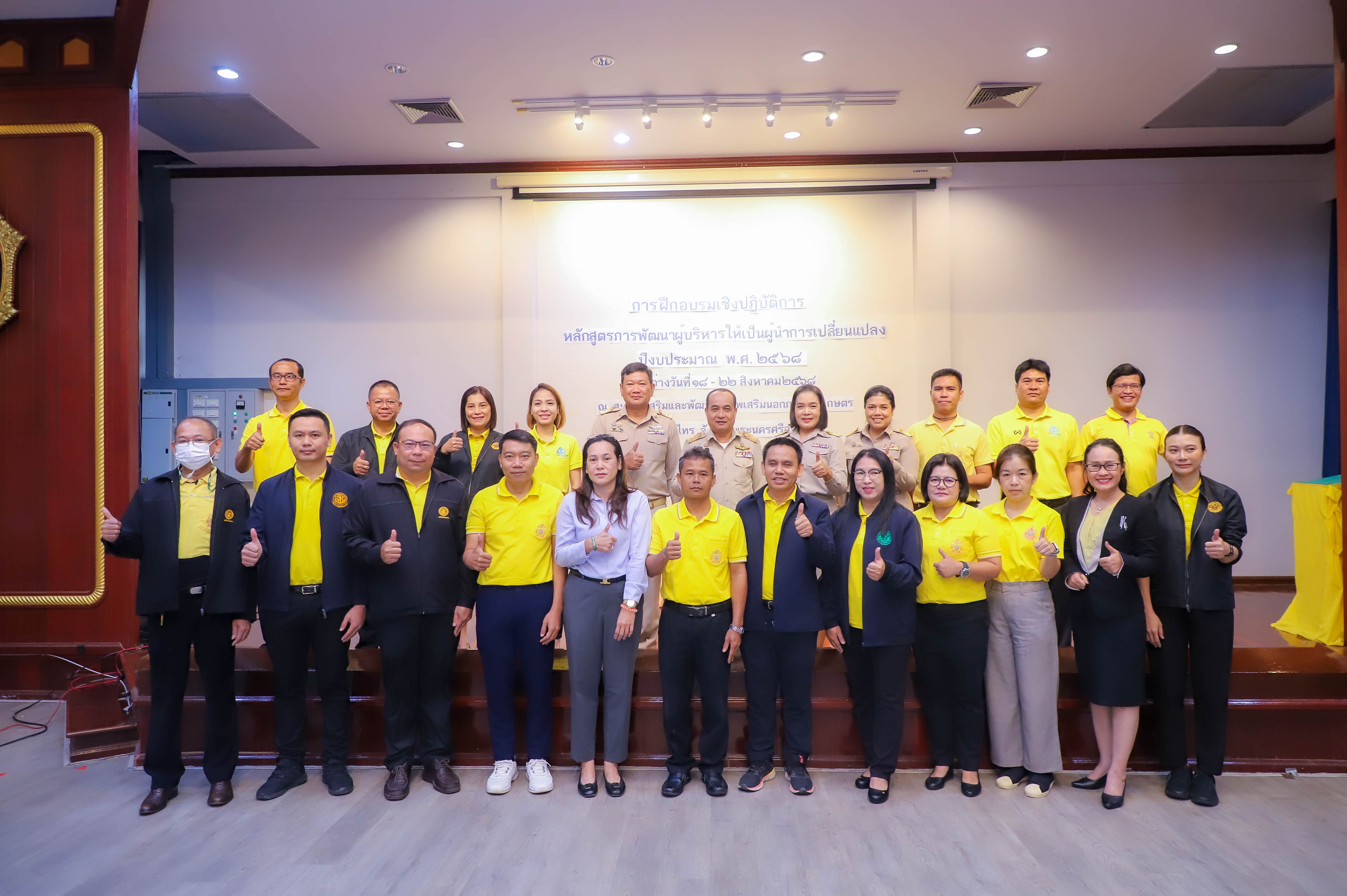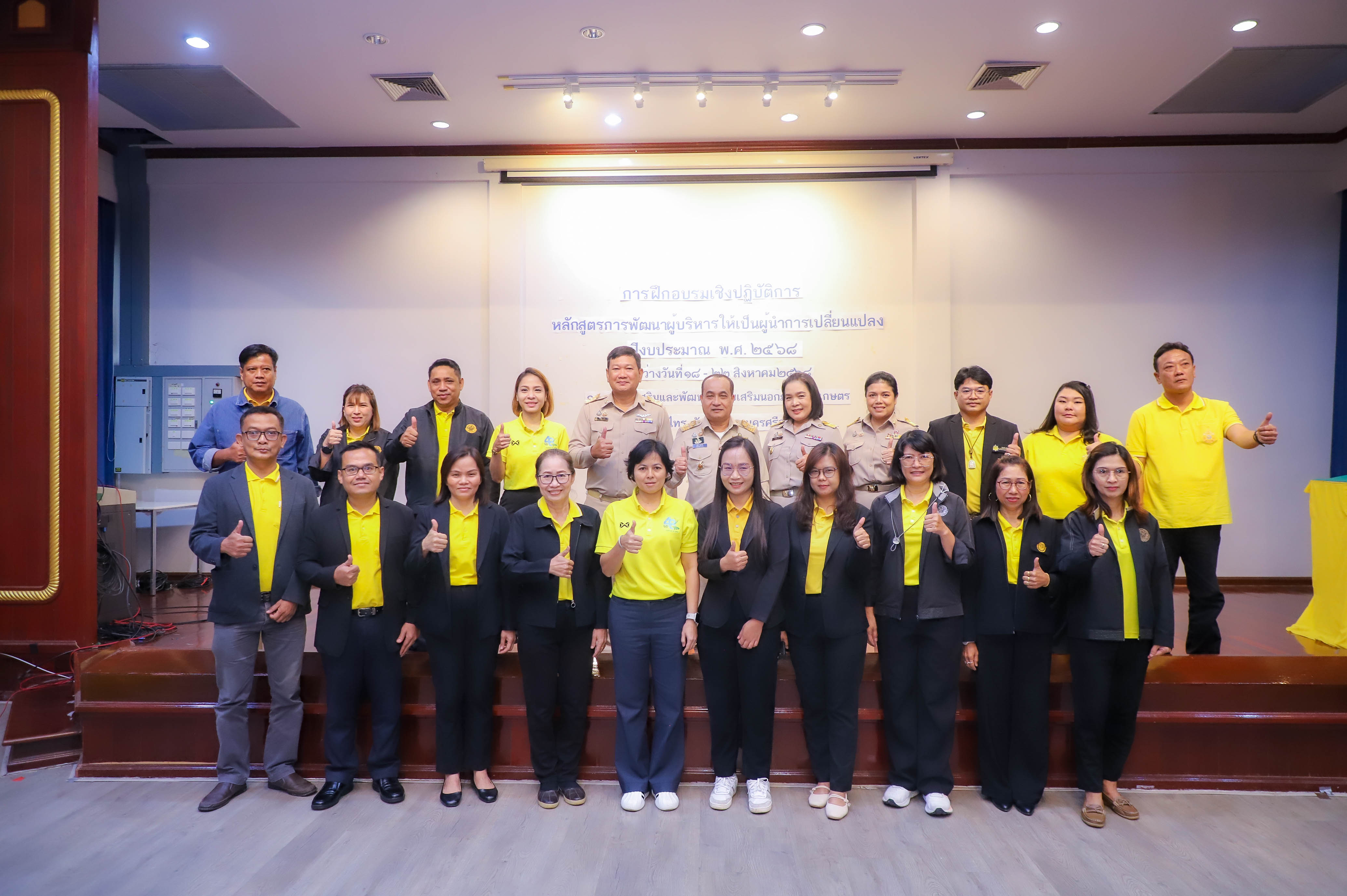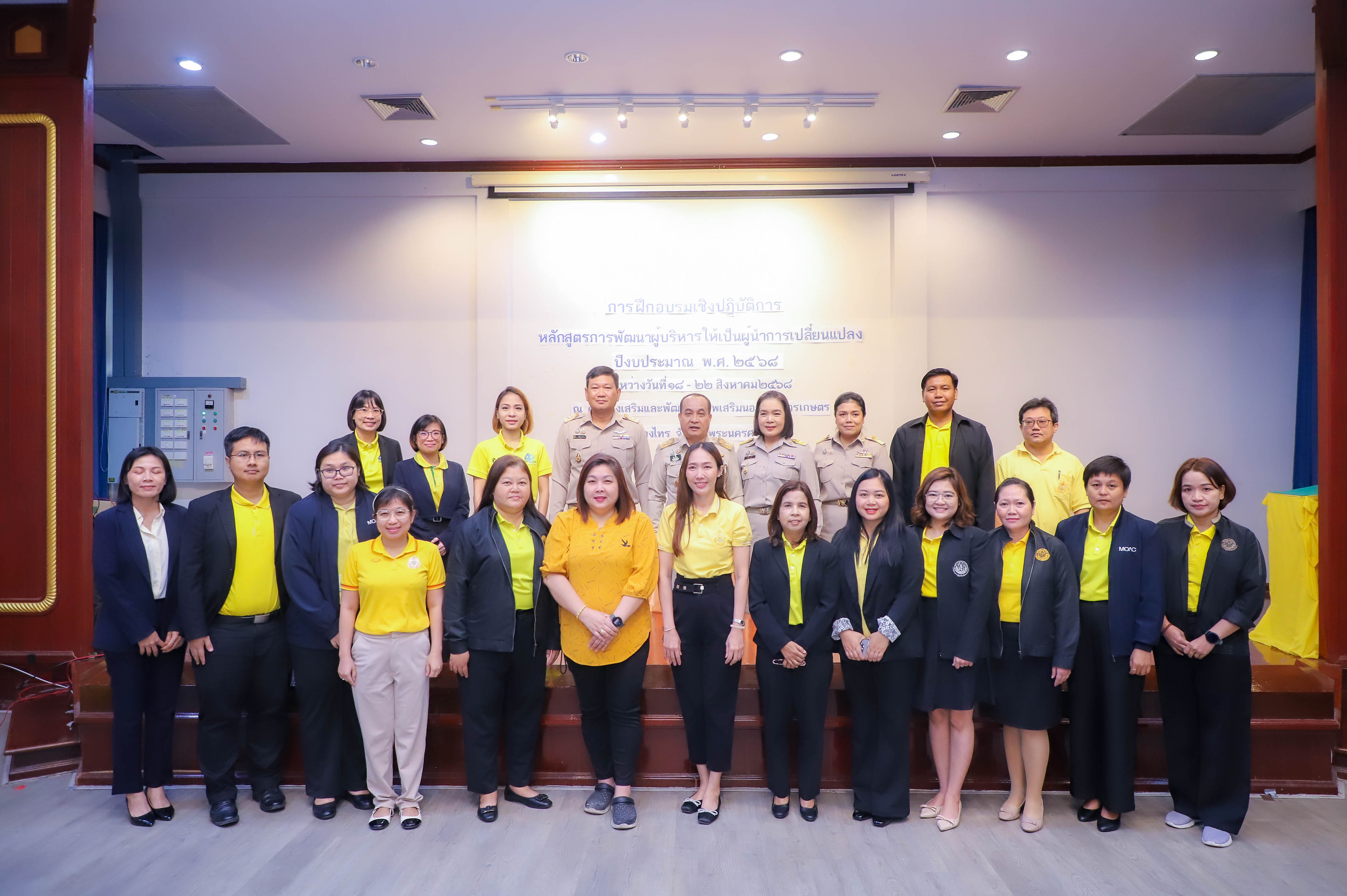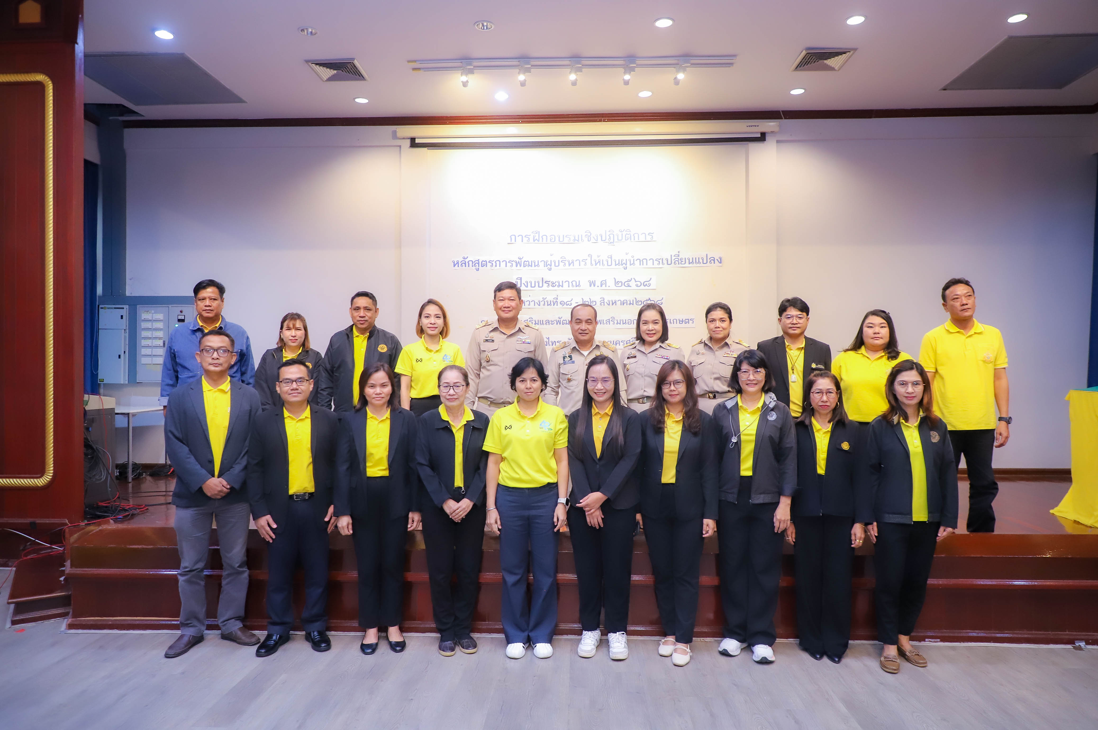 นายเศรษฐเกียรติ กระจ่างวงษ์ เลขาธิการสำนักงานการปฏิรูปที่ดินเพื่อเกษตรกรรม (ส.ป.ก.) มอบหมายให้ นายสุรชัย ยุทธชนะ รองเลขาธิการ ส.ป.ก. เป็นประธานในพิธีเปิดโครงการฝึกอบรมเชิงปฏิบัติการ หลักสูตร การพัฒนาผู้บริหารให้เป็นผู้นำการเปลี่ยนแปลง ปีงบประมาณ พ.ศ. 2568 พร้อมด้วย นางสาวพจนันท์ กองมาก ปฏิรูปที่ดินจังหวัดพระนครศรีอยุธยา นางสาวสิริมา แจ้งกระจ่าง ผู้อำนวยการศูนย์ส่งเสริมและพัฒนาอาชีพเสริมนอกภาคการเกษตร โดยมี นายธเนตร พารา ผู้อำนวยการสำนักพัฒนาและถ่ายทอดเทคโนโลยี กล่าวรายงานวัตถุประสงค์โครงการ เพื่อให้ผู้เข้ารับการฝึกอบรมเชิงปฏิบัติการ ได้เข้าใจบทบาทในการบริหารจัดการงานในฐานะผู้นำ ได้รับการพัฒนาความรู้และพัฒนาทักษะในการเป็นผู้นำการเปลี่ยนแปลงในการพัฒนาตนและพัฒนาคนแบบ Soft Skill ณ ศูนย์ส่งเสริมและพัฒนาอาชีพเสริมนอกภาคการเกษตร (ศพส.) อำเภอบางไทร จังหวัดพระนครศรีอยุธยา ในวันที่ 18 สิงหาคม 2568
