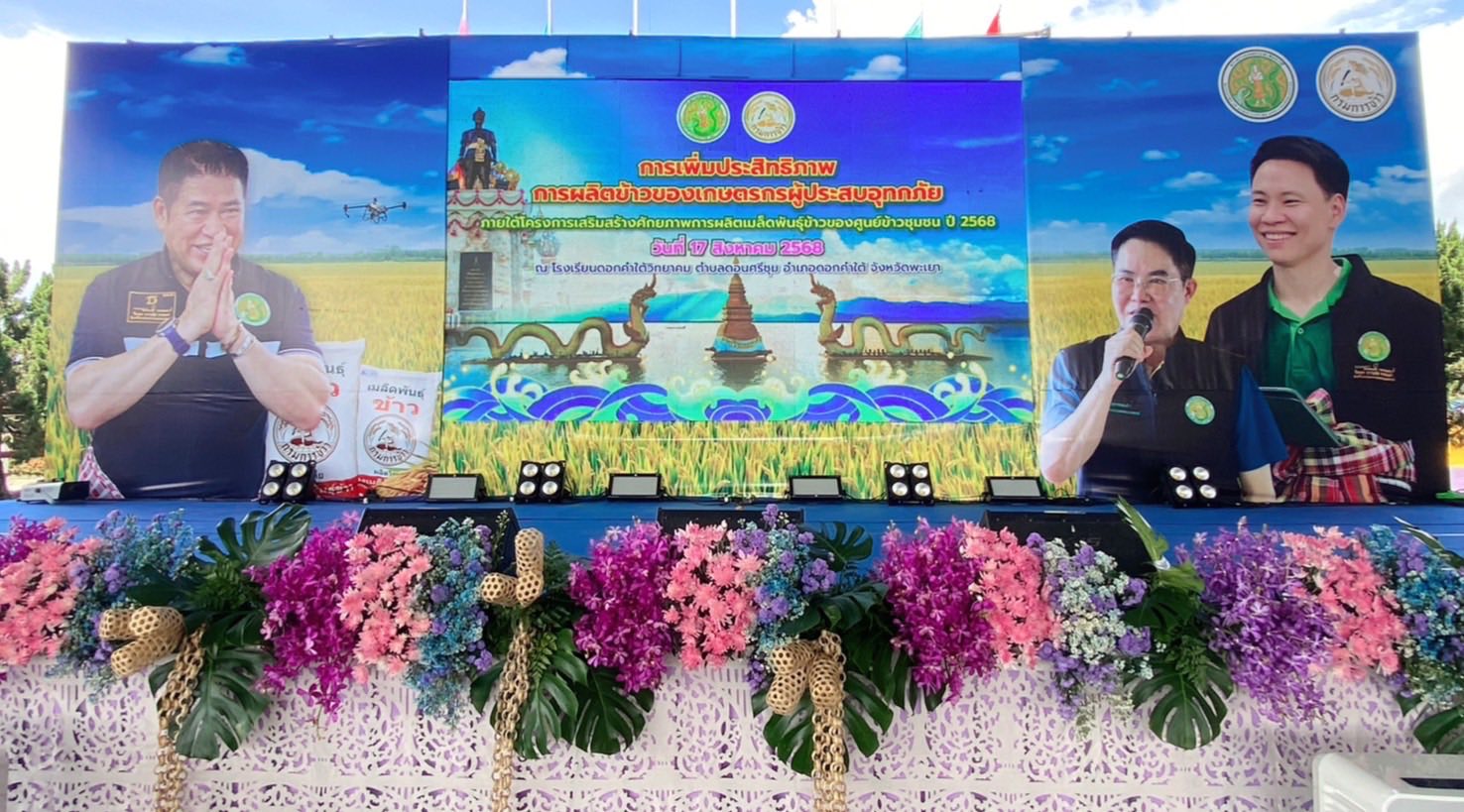 วันที่ 17 สิงหาคม 2568 นายเศรษฐเกียรติ กระจ่างวงษ์ เลขาธิการสำนักงานการปฏิรูปที่ดินเพื่อเกษตรกรรม (ส.ป.ก.) ได้มอบหมายให้นายวัฒนา มังธิสาร รองเลขาธิการ ส.ป.ก. และ นายกฤษณะ ดีปาละ ผู้ตรวจราชการ ส.ป.ก. (เขต 15,16 และ 17) นายธีรวุฒิ สมปัญญา ปฏิรูปที่ดินจังหวัดพะเยา และเจ้าหน้าที่ ส.ป.ก. จังหวัดพะเยาที่เกี่ยวข้อง เข้าร่วมงาน kick off ปล่อยคาราวานปัจจัยการช่วยเหลือ “ การ เพิ่มประสิทธิภาพ การผลิต ของเกษตรกรผู้ประสบอุทกภัย ภายใต้ โครงกา ส่งเสริมศักยภาพการผลิตเมล็ดพันธุ์ข้าวของศูนย์ ข้าวชุมชนปี 2568 โดยมี นายอัครา พรหมเผ่า รัฐมนตรีช่วยว่าการกระทรวงเกษตรและสหกรณ์ เป็นประธานในพิธีและกล่าวเปิดงาน พร้อมทั้งคณะผู้บริหาร ข้าราชการในสังกัดกระทรวงเกษตรและสหกรณ์ทั้งส่วนกลางและส่วนจังหวัดพะเยา ร่วมงานดังกล่าวด้วย ณ โรงเรียนดอกคำใต้วิทยาคม ตำบลดอนศรีชุม อำเภอดอกคำใต้ จังหวัดพะเยา
