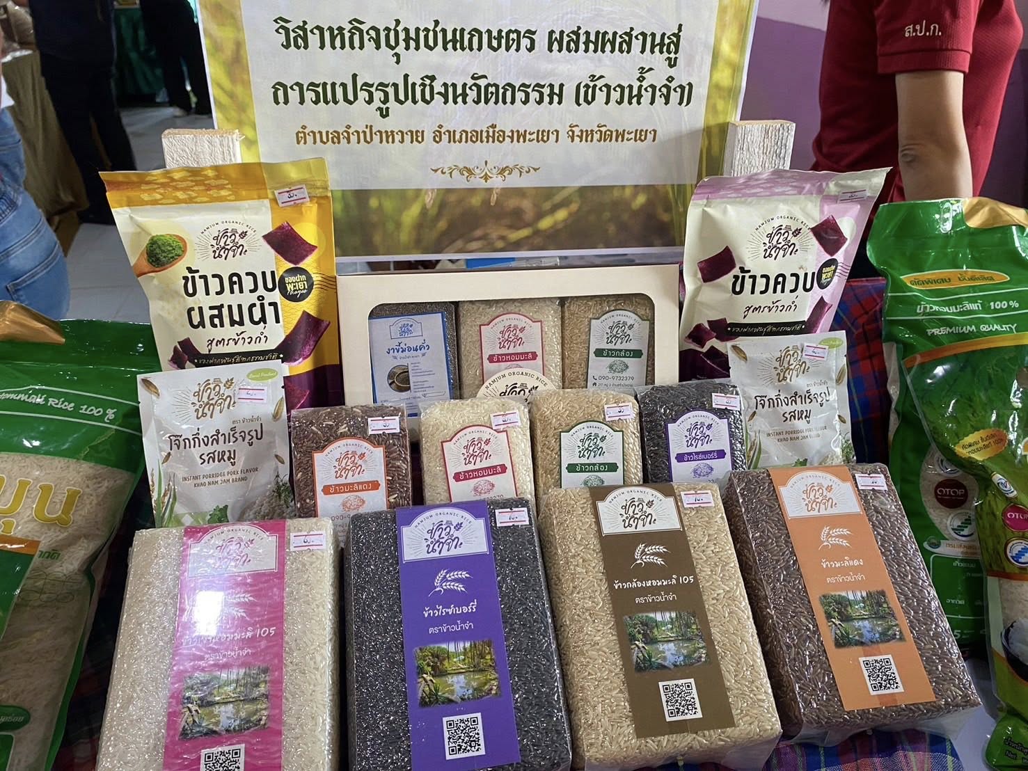 ภายในงานสำนักงานการปฏิรูปที่ดินจังหวัดพะเยาได้จัดนิทรรศการ เกี่ยวกับผลิตข้าวสารสายพันธุ์ต่างๆที่ปลูกในเขตปฏิรูปที่ดินจังหวัดพะเยา ของกลุ่มวิสาหกิจชุมชนศูนย์ข้าวชุมชน ข้าวอินทรีย์ห้วยแก้ว และวิสาหกิจชุมชน เกษตรผสมผสานสู่การแปรรูปเชิงนวัตกรรม โดยทางส.ป.ก.จังหวัดพะเยาได้เข้าไปส่งเสริมการปลูกข้าวสายพันธุ์ต่างๆ ที่เหมาะสมกับสภาพพื้นที่ โดยมีคุณสมบัติพิเศษ ทนต่อโรค แมลง และสภาพน้ำท่วมขังได้เป็นอย่างดี เป็นลดต้นทุนการผลิตข้าว และเป็นประโยชน์แก่ทางเกษตรกรประกอบอาชีพต่อไป