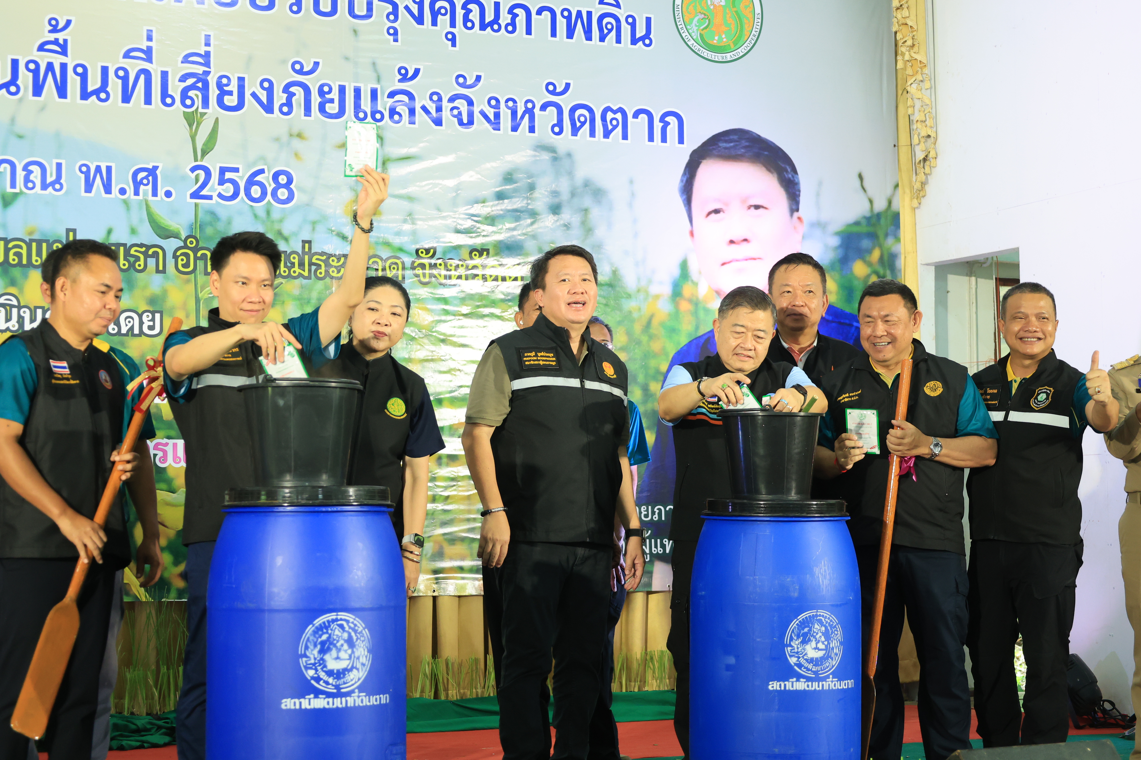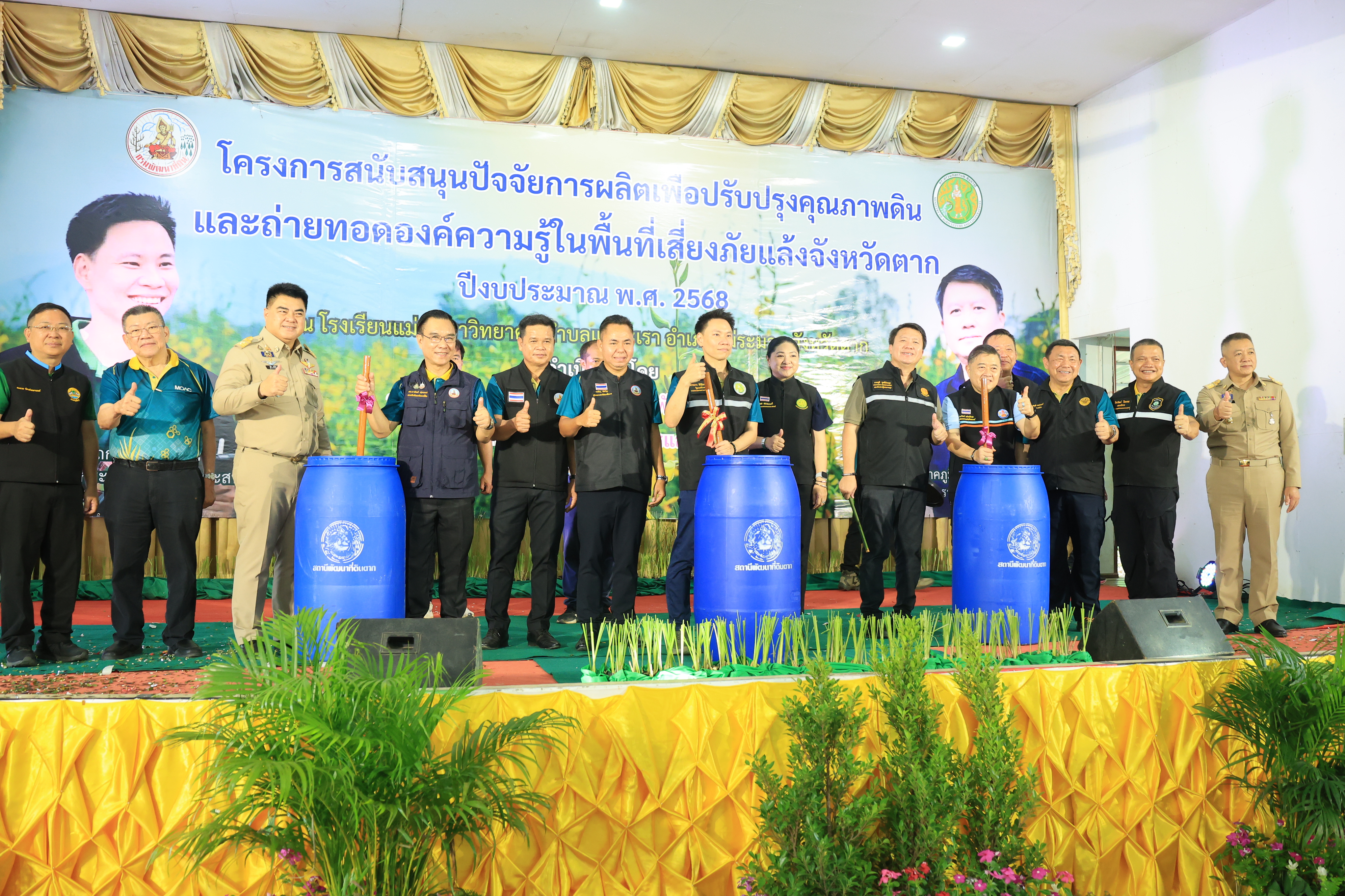 วันที่ 18 สิงหาคม 2568 นายเศรษฐเกียรติ กระจ่างวงษ์ เลขาธิการสำนักงานการปฏิรูปที่ดินเพื่อเกษตรกรรม(ส.ป.ก.) พร้อมด้วย นายปรีชา ลิ้มถวิล รองเลขาธิการ ส.ป.ก. ปฏิรูปที่ดินจังหวัดภาคเหนือตอนล่าง และเจ้าหน้าที่ที่เกี่ยวข้อง ติดตามคณะรัฐมนตรีว่าการกระทรวงเกษตรและสหกรณ์(นายอรรถกร ศิริลัทธยากร) ลงพื้นที่ตรวจราชการติดตามโครงการสนับสนุนปัจจัยการผลิตเพื่อปรับปรุงคุณภาพดินและถ่ายทอดองค์ความรู้ในพื้นที่เสี่ยงภัยแล้งจังหวัดตาก ณ โรงเรียนแม่จะเราวิทยาคม อำเภอแม่ระมาด จังหวัดตาก