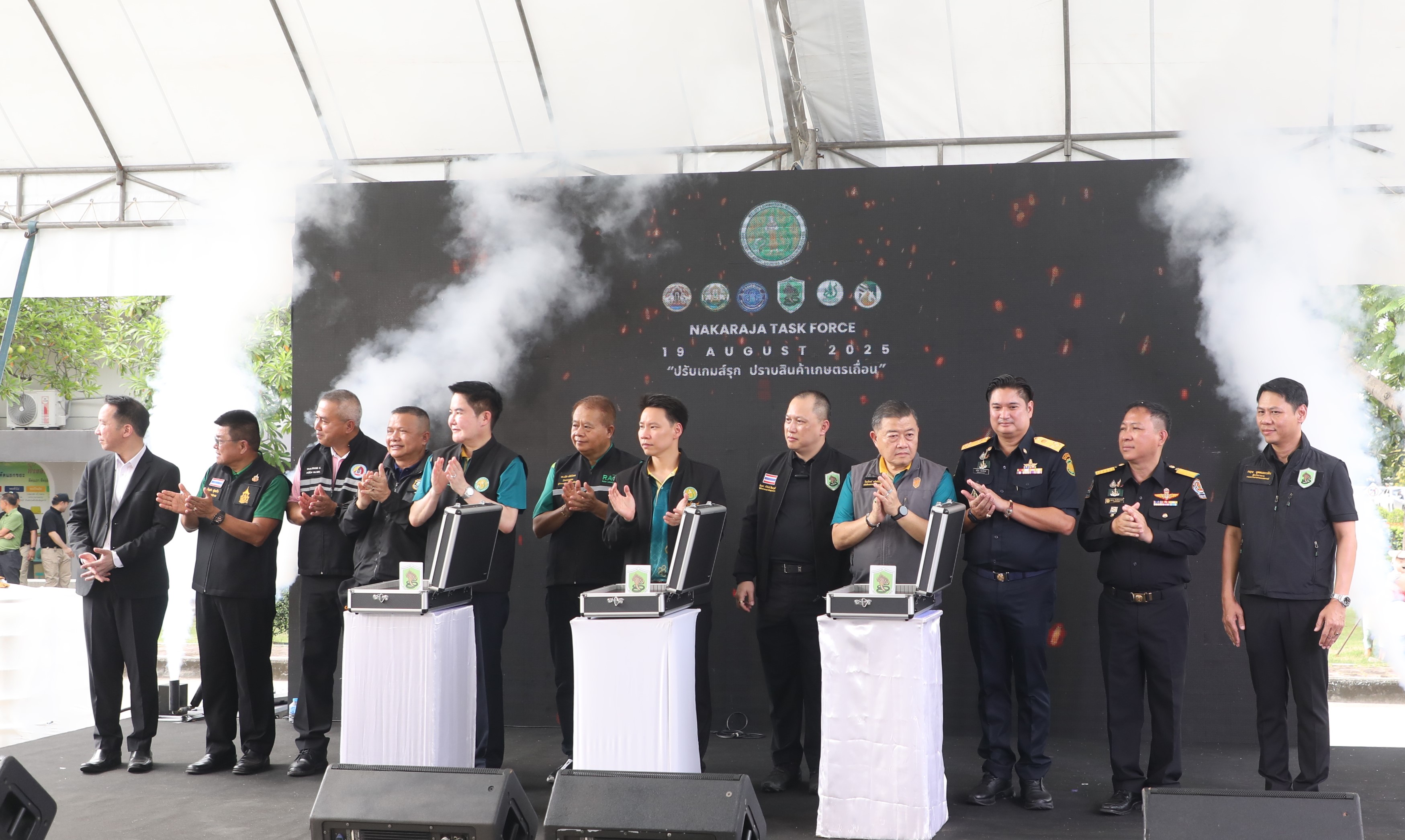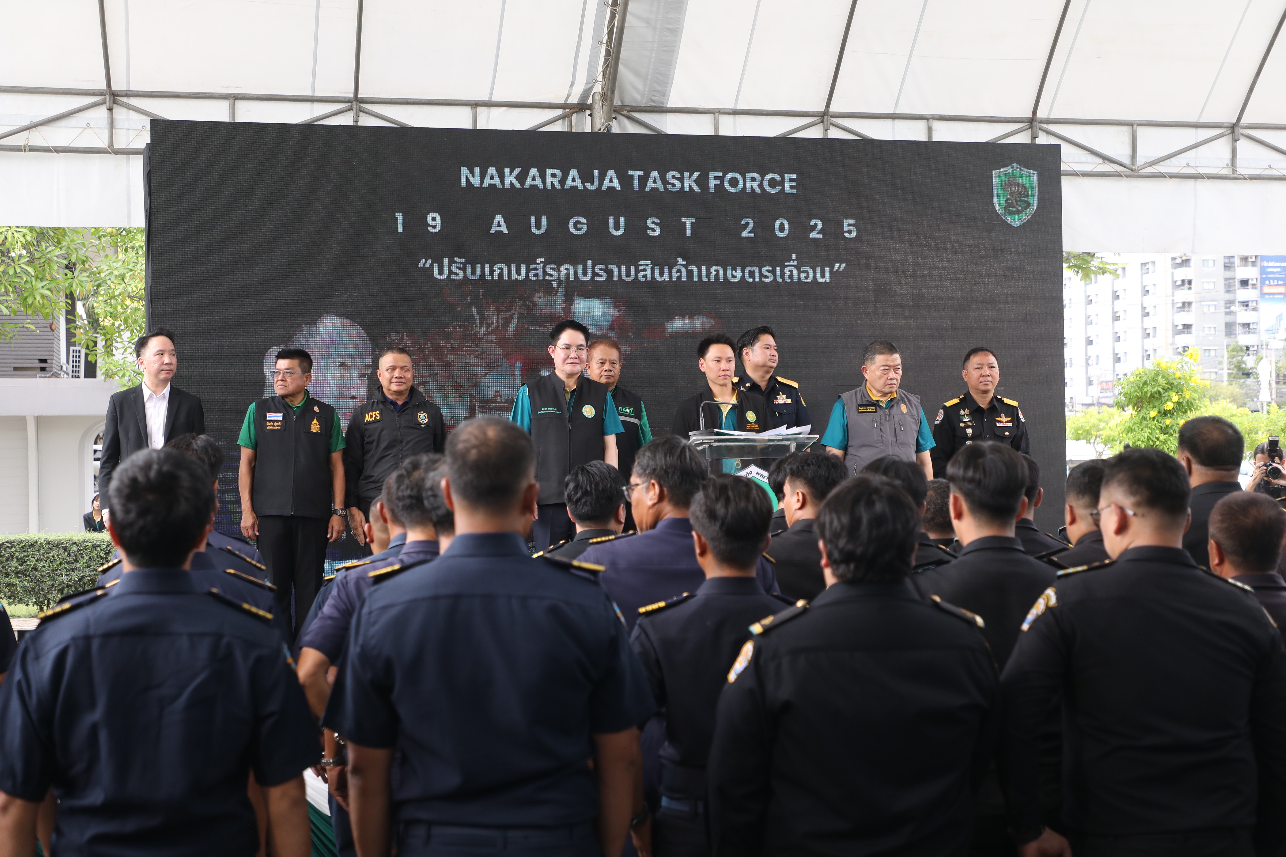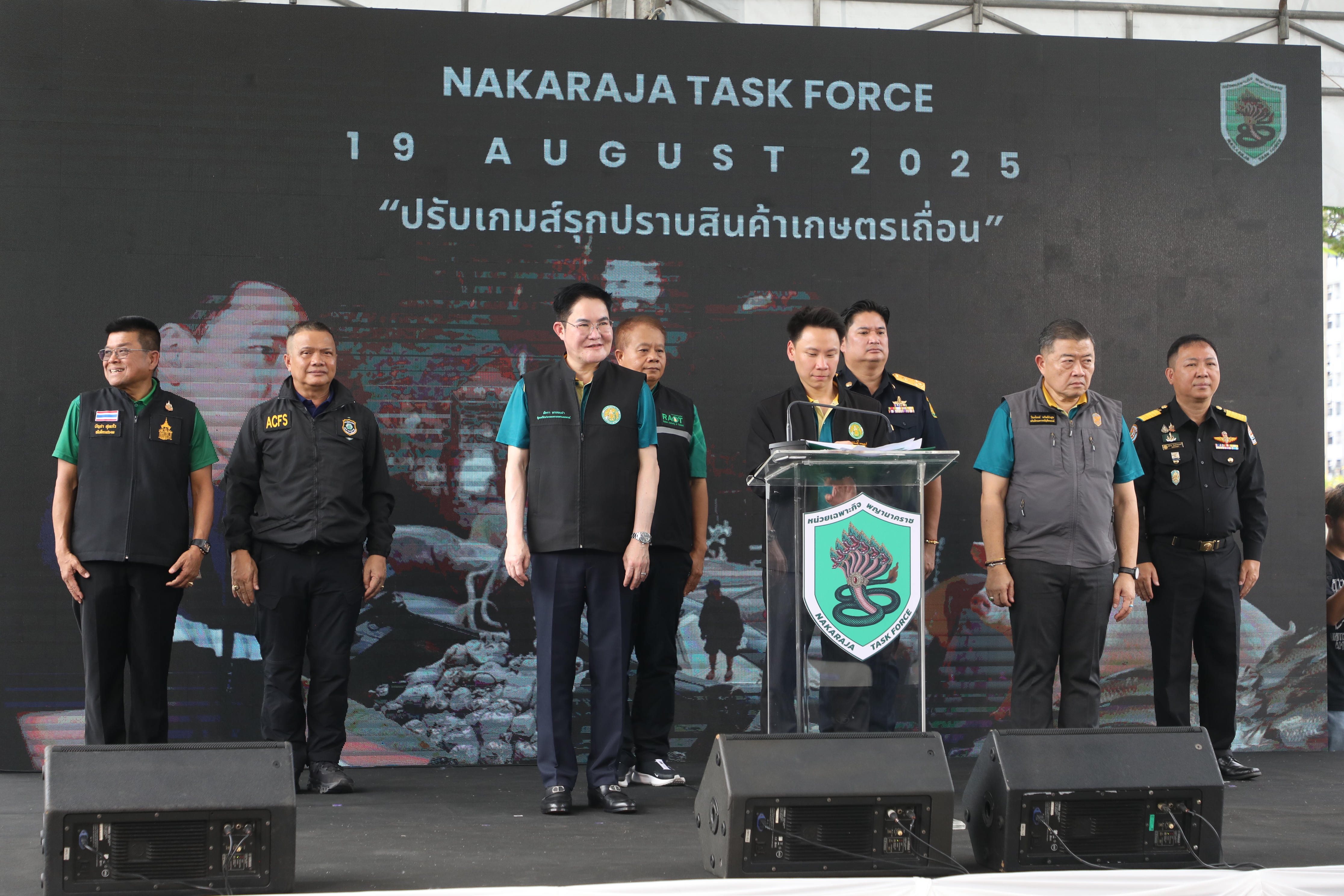 วันอังคาร ที่ 19 สิงหาคม 2568 เวลา 14:00 น. นายเศรษฐเกียรติ กระจ่างวงษ์ เลขาธิการสำนักงานการปฏิรูปที่ดินเพื่อเกษตรกรรม (ส.ป.ก.) มอบหมายให้ นายวัฒนา มังธิสาร รองเลขาธิการ ส.ป.ก. พร้อมด้วย นางสาวฐิติมา วัฒนจัง ปฏิรูปที่ดินจังหวัดปทุมธานี เข้าร่วมงานพิธีเปิด โครงการ "ปรับเกมส์รุก ปราบสินค้าเกษตรเถื่อน" โดยมี นายอรรถกร ศิริลัทธยากร รัฐมนตรีว่าการกระทรวงเกษตรและสหกรณ์ เป็นประธานในพิธีเปิด พร้อมด้วย นายอัครา พรหมเผ่า รัฐมนตรีช่วยว่าการกระทรวงเกษตรและสหกรณ์ กรม/สำนัก/กระทรวง ที่เกี่ยวข้อง เข้าร่วมพิธี โดยงานมีนิทรรศการจัดแสดงกระบวนการตรวจสินค้าเกษตรนำเข้า VTR ผลการปฏิบัติงานของหน่วยเฉพาะกิจพญานาคราช พร้อมถ่ายทอดสดผ่านช่องทาง Social Media 4 จังหวัดได้แก่ จังหวัดระนอง จังหวัดประจวบคีรีขันธ์ จังหวัดมุกดาหาร จังหวุดชุมพร และปิดท้ายโดยการปล่อยชุดปฏิบัติการพิเศษออกป้องกันและปราบปรามสินค้าเกษตรผิดกฏหมาย ณ ศูนย์ราชการกรมปศุสัตว์ปทุมธานี อำเภอเมืองปทุมธานี จังหวัดปทุมธานี